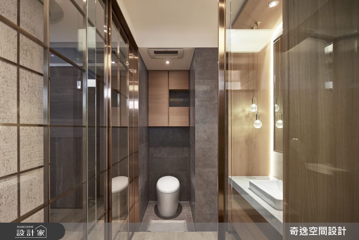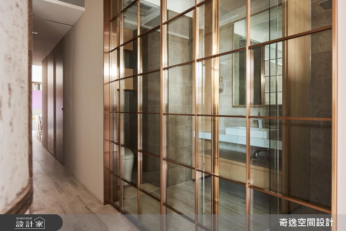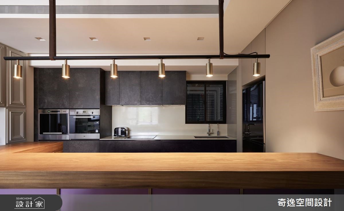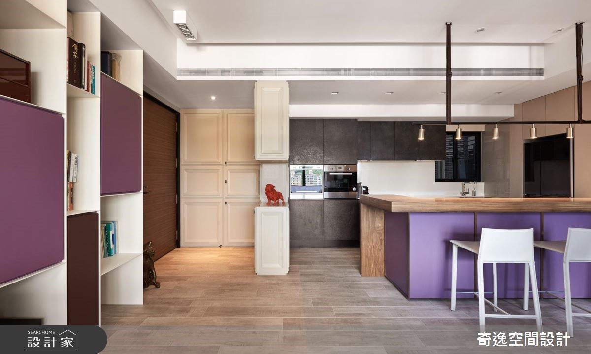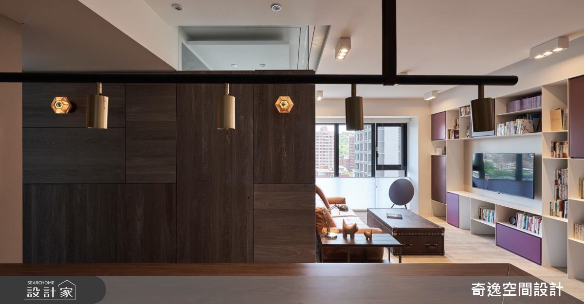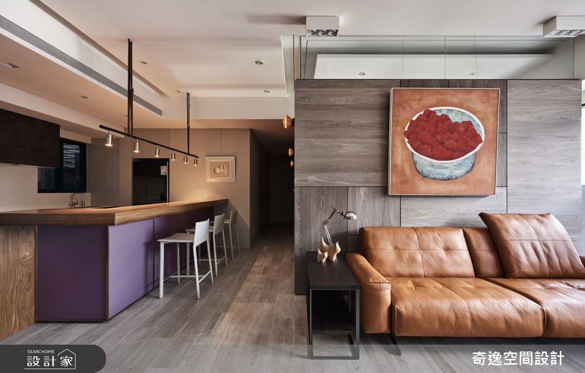 112平方米混搭宅,除了坐拥美好景观之外,设计师亦透过材质与色彩规划,经由墙面设计带出多变感受,造就每个空间的主题焦点,打造舒适且美观的住宅内涵。【善用材质与色彩,带出空间多变感受】步入居宅,可见玄关的柔和白色基底,带来入门后的放松氛围,并藉由线板点缀提升优雅气质、丰富视觉层次感。且运用柜体区划与餐厨之间位置,引用灵活色调与面材建构厨房领域,在块体、立面的交互穿插之下,凝聚活泼的空间画面。客厅则将电视、书柜、收纳等集结为一体,打造多元机能电视墙,结合错落的柜体分割,让立面样貌更形活泼,沙发墙以木质铺述背景,再巧妙于上方保留透空,瓦解墙体的厚重封闭感,搭衬着皮质沙发及同色系裱框画作,勾勒生动的墙面风貌。主卧以音响取代电视,打造低调华丽的墙面表情,加以回字动线串联睡眠区与卫浴,型塑流畅起居动线,并采用透明玻璃区隔主卫,创造通透扩大感,成就独特的空间视野。