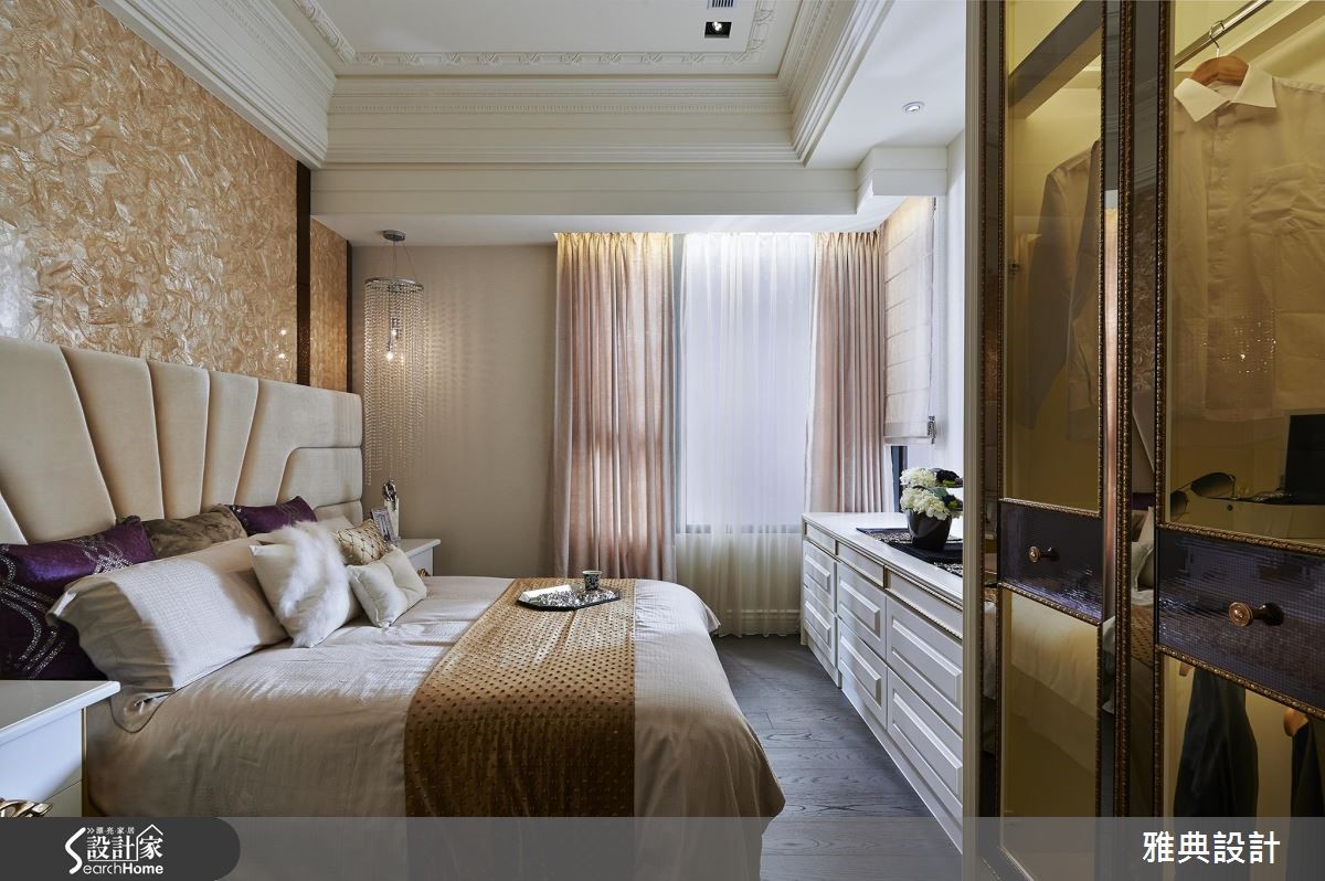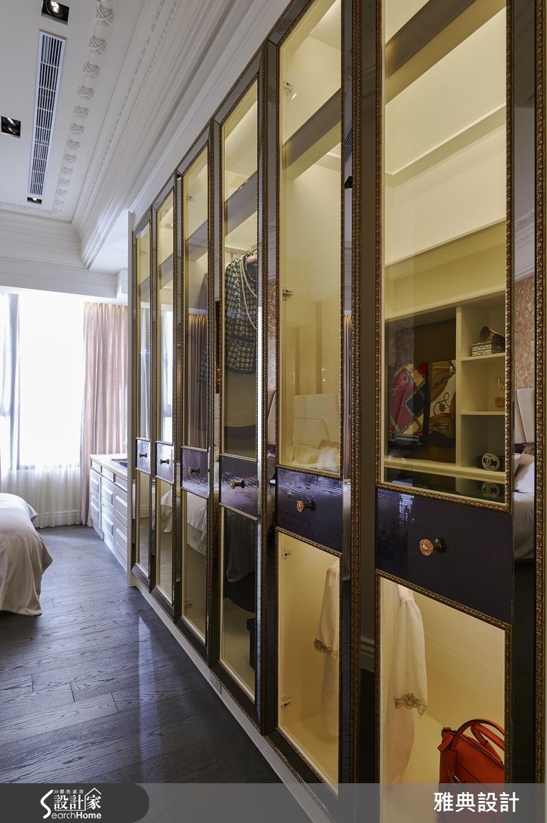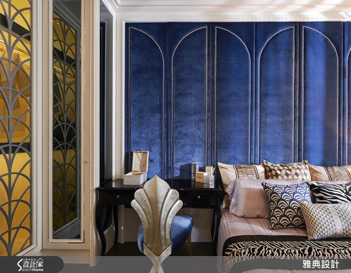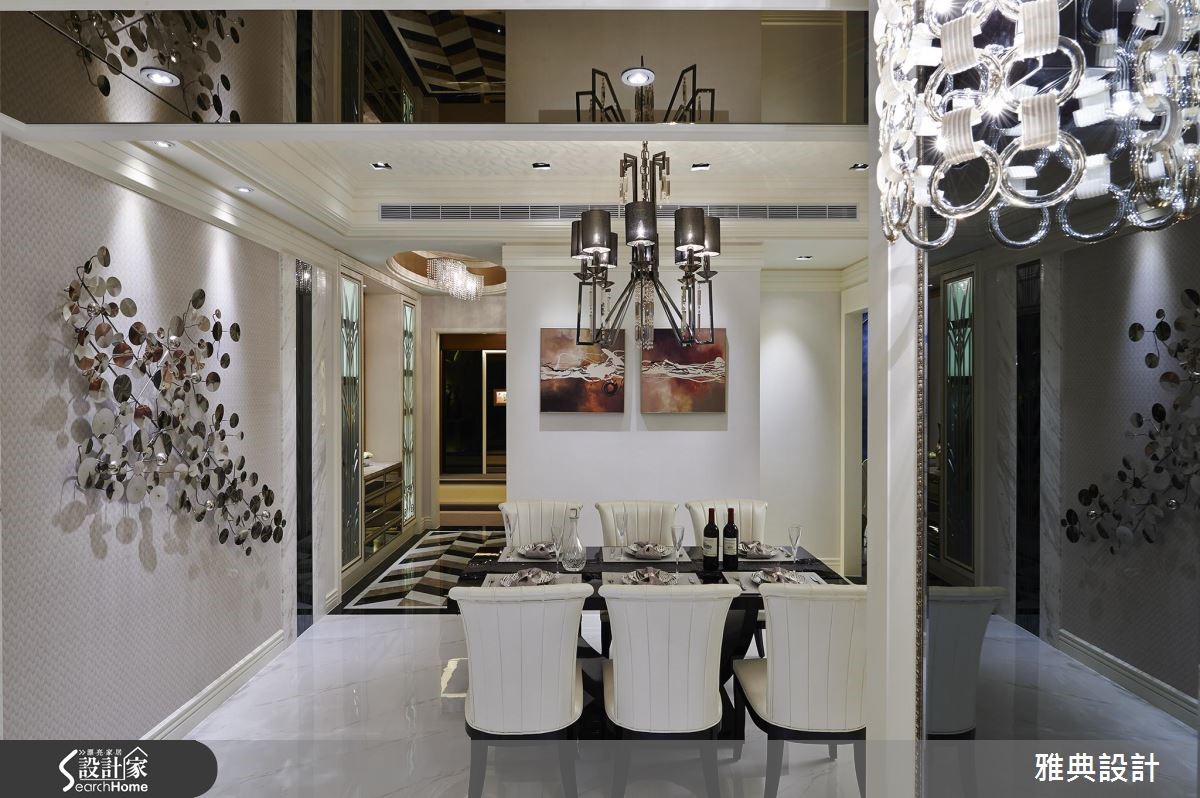 伴随空间里镜面、水晶等透亮材质的配搭,让光线恣意游走空间里,无论是停留在石材表面,彰显非凡气势,还是乘着镜面的折射效果,让炫目的明亮视觉持续蔓延,织就一片华美实境。 【石材的雅致拼贴,造大器质感】狭长的玄关领域,藉由三色石材拼接出几何地面,右侧以对称的镂空展示鞋柜作为安排,间接光源洒落在美鞋上,让人彷若来到时尚精品店。左侧墙面以精致的钻雕玻璃铺陈,展开华丽的风格序曲。L型窗景设置,让光毫无保留的流淌于室内,照亮精彩的美学细节。电视墙以层次边框的石材打造,两侧以对称灰镜、水晶壁灯配搭,加上绒布质感的茶几与时尚摆设,装饰艺术结合华丽的材质,激荡创作灵感。悬浮感的不锈钢艺术装饰延续壁面,诠释出餐厅主墙,天花板以立体视感的龙纹板为底,随着光源洒落,彷佛湖水岸波光粼粼,一旁的大梁则以茶镜铺贴,藉此消弭厚重感,让空间更显明亮宽敞。