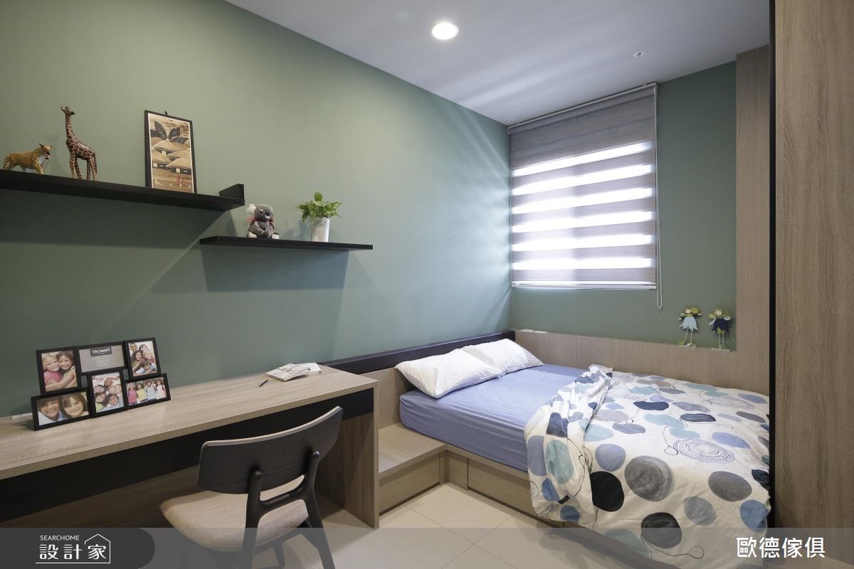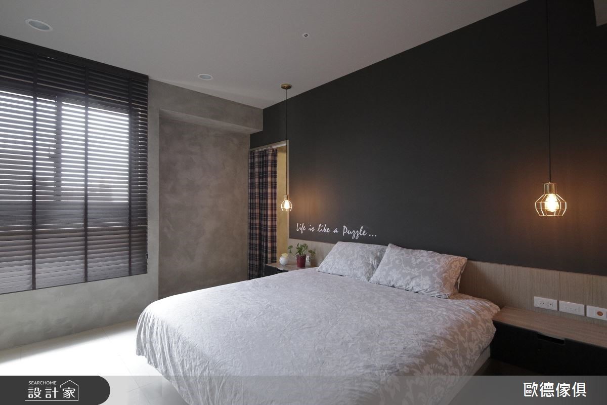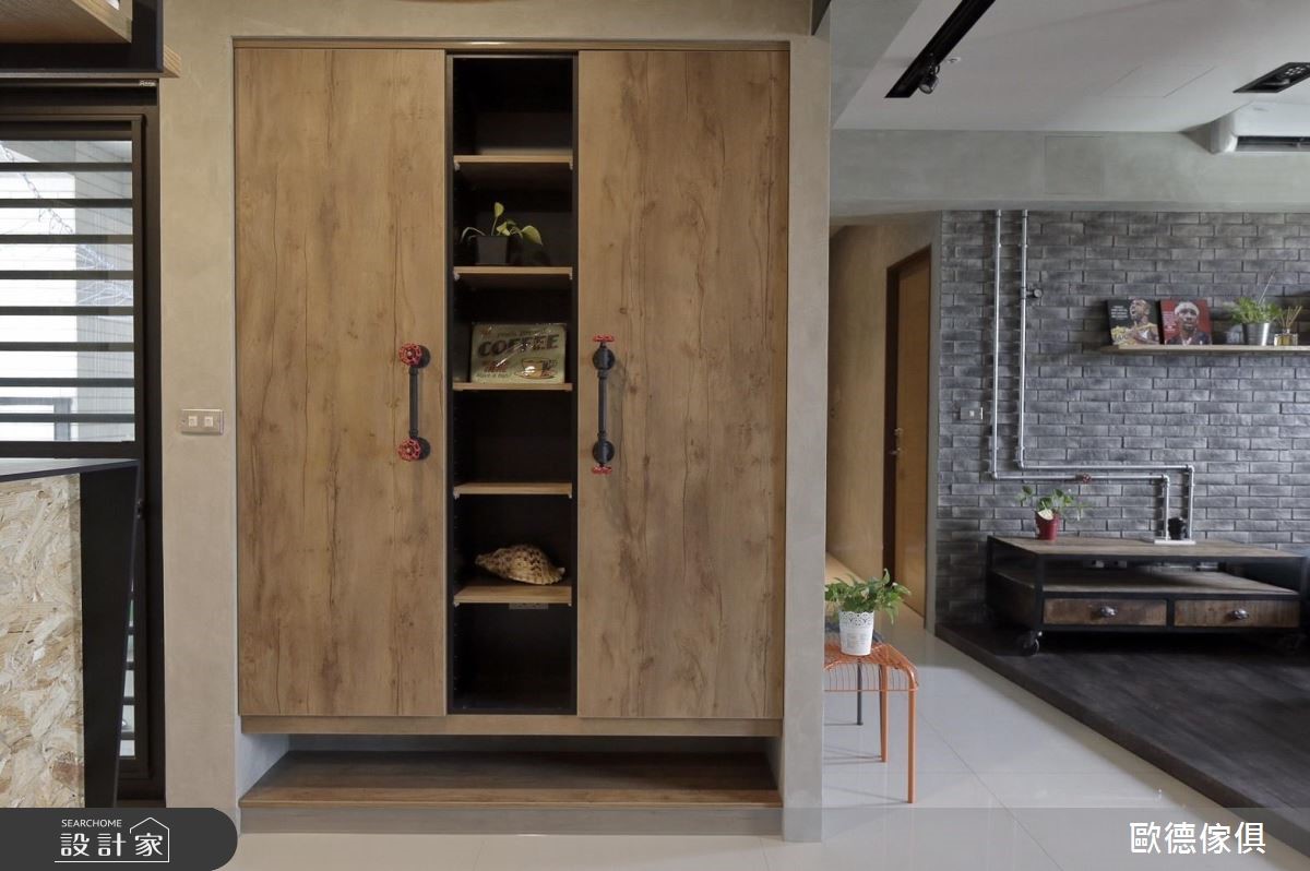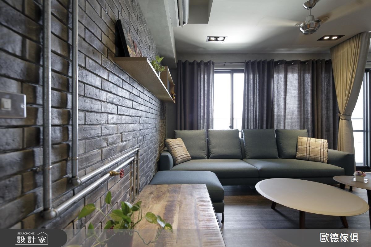 屋主独钟工业风的魅力,同时喜好咖啡厅的悠闲氛围,期望自己的新家也能结合二者魅力,于是设计师采以系统家具统整收纳,搭配铁件、文化石、乐土矿物涂料等素材,勾勒出年轻带有个人色彩的住宅表情。【木材质混搭,中和空间温度】客厅,选用灰色文化石与木地板奠定温润基调,搭衬裸露管线、水龙头把手等工业元素,瞬间提升整体风格,并采用带有北欧质感的书桌及沙发,替粗犷基底加入些许宜人的暖意。餐厨配置咖啡红豆杉板材打造的电器柜及客制化中岛吧台,成为屋主专属的料理场域,一旁则在墙面装置脚踏车悬挂架,塑造出美感、机能兼具的展示立面;主卧墙面采沉稳灰色为主调,加入不落地的床头柜设计,呈现利落的空间风貌!