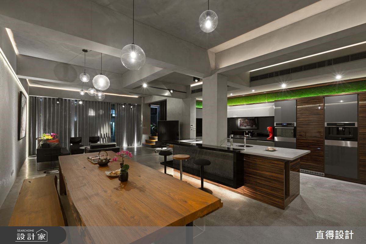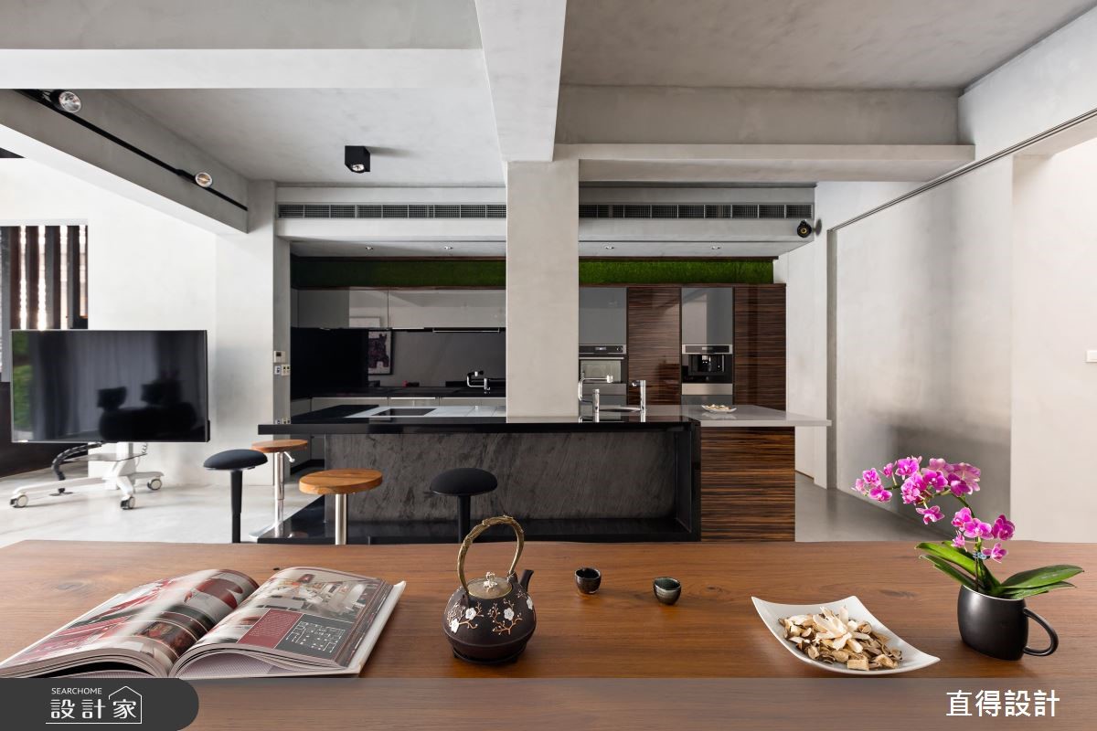 设计团队以30年的独栋楼为基地,打造团队的专属写字楼,从1到3楼分为展示、工作区与居宅3大空间机能,且看设计团队如何赋予建筑崭新的居住价值。【拆除隔断,打造舒适宽广空间】以1楼的展示空间为主,设计团队拆除原先让出入狭窄阴暗的庭院围墙,接着去除屋内过多隔断、楼梯、厨房与厕所,彻底改变原先格局与水电配置,让动线更加流畅,并以坚实结构强化30年的建筑本体,利用明管创造俐落风格,同时兼顾安全。设计团队搭配智能环控与全热交换机,并巧妙将线路隐于储藏间,给予访客与员工更好的空气质量;原先楼梯拆除后,以特殊铁件楼梯串连1到3楼空间,导入室外景观与日光,另外开发了隐于绿墙内的90度横向铁卷门,让视觉开放、同时兼具安全与美观性。