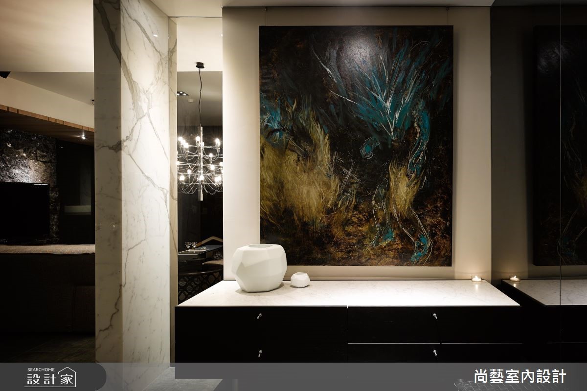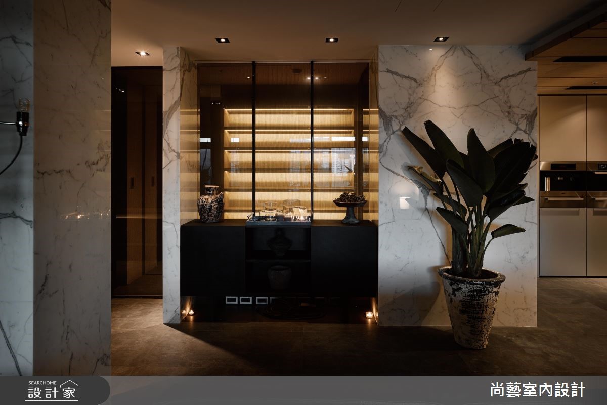 设计师以现代风为基底,并融入特殊石皮,建构出172平方米的居家新貌,搭佐阳光、绿意,以及灯光的设计,加上开放式的宽阔格局,为空间增添丰富的光影层次,打造出低奢典雅的住宅情境,快跟着小编一起来看看吧! 【灯光与材质交会,宛如天然壁画】入门处以雕刻白大理石作为背景,并规划走入式的大容量鞋柜,使收纳也成为一种美学。公领域天花以温润木质延伸铺述,搭配粗犷的石材立面,中和冷暖合宜的温度。电视墙采用特选的石皮堆砌而成,宛若天然壁画。在光源烘托下展现丰富层次,也减缓石材厚重感。 餐厅区以无隔断设计,利用中岛吧台、餐厅开放相连,让空间应用更多元,并配置深色镜面推拉门,既可大开视野,又可与其它空间的互动连结。寝卧则用淡紫色绷布对应同色系沙发,并形成跳色的四件套,带出私领域的专属风格。