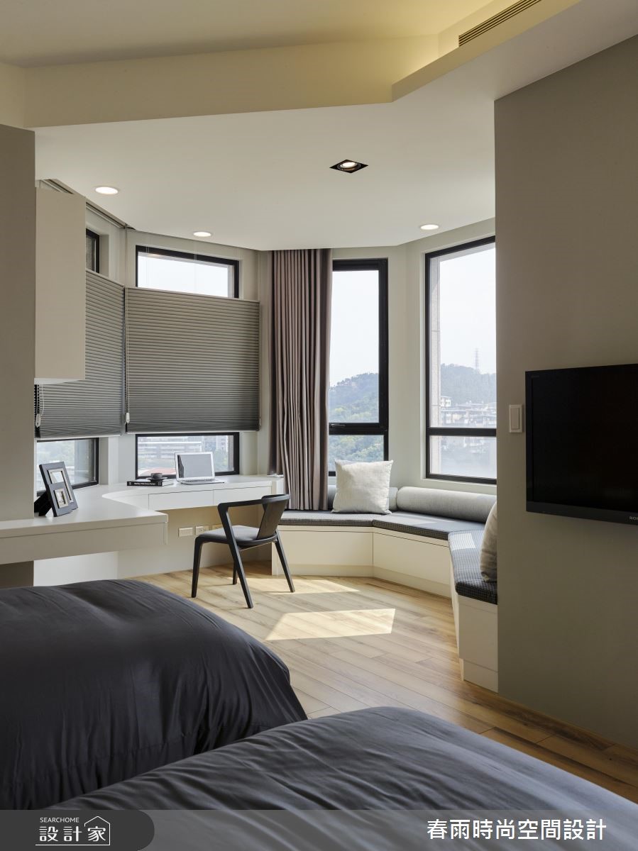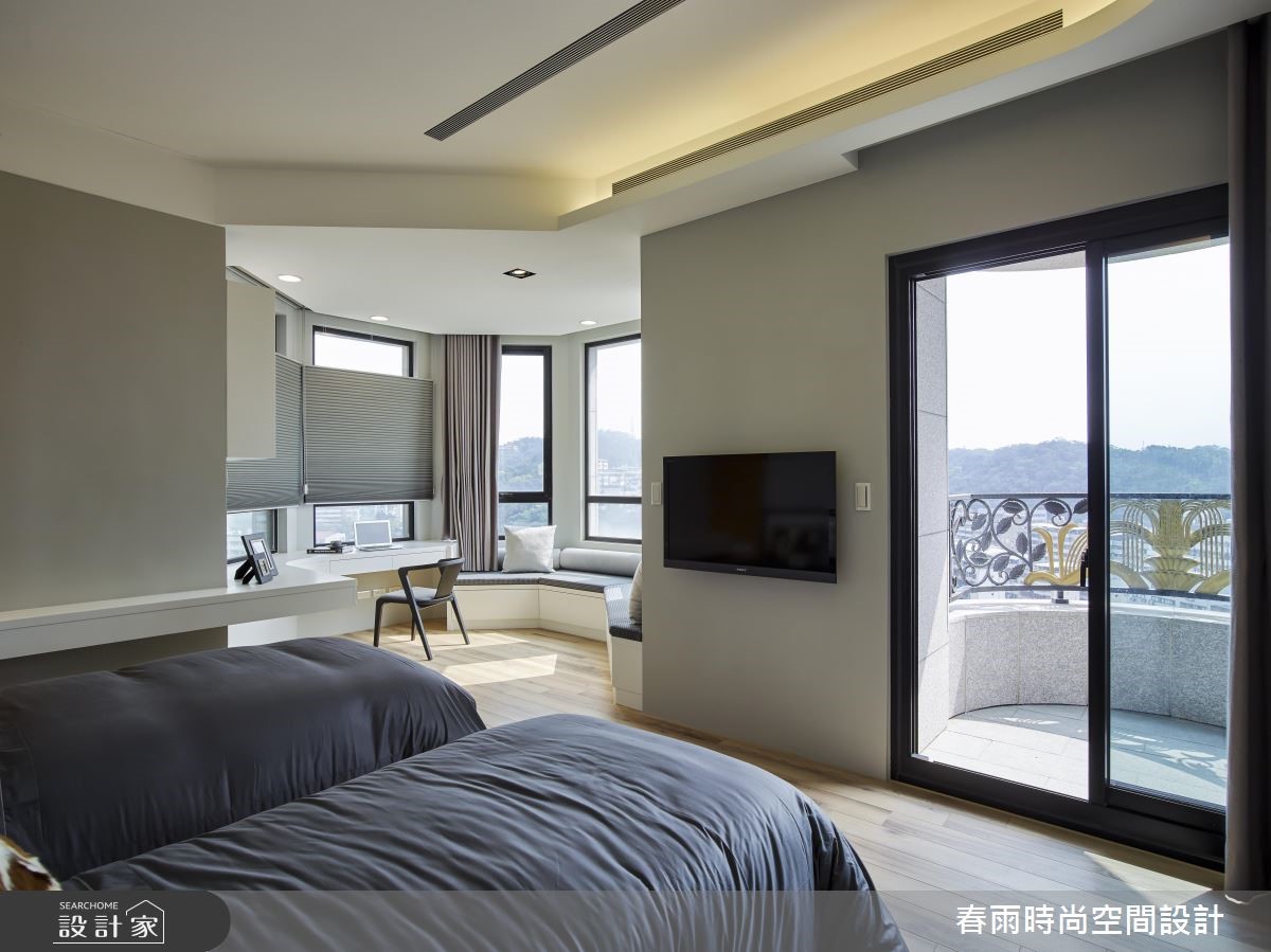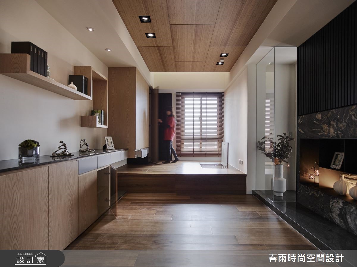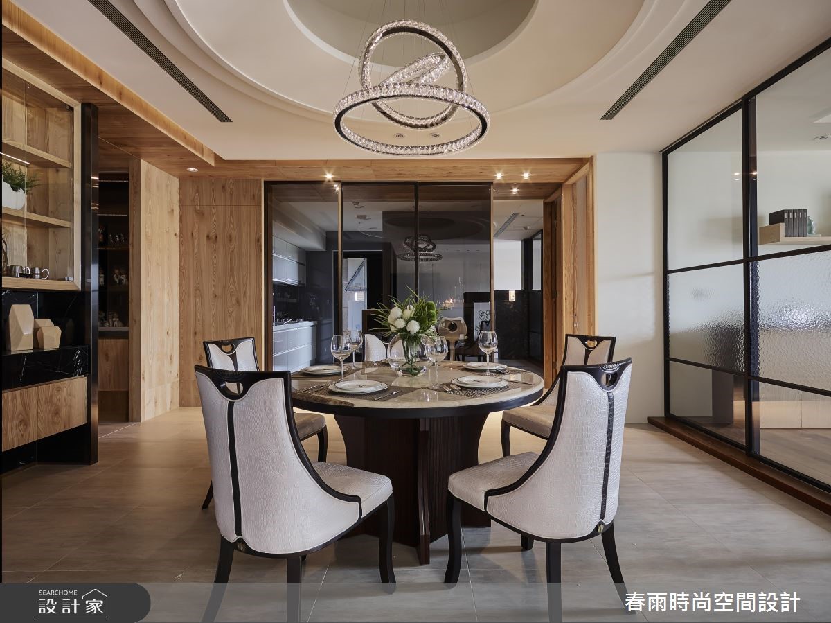 63 坪大宅,因家庭成员皆已成年,并且涵括两个世代,设计上相当注重居住者的隐私,以及一家人团聚的公共空间规划,设计师以时尚大器的现代风定义,搭配大理石材质、细部的灯光佐饰,以及充裕的收纳设计,完成机能与美感兼具的优质跨世代居所。步入这处住宅空间,半身高的铁灰色大理石墙相当吸睛,以浓郁的纹理挹注天然石质的艺术质性,向外稍微延伸,巧妙地拉阔了客厅的比例,并以虚实相间的镂空展示框格,与后方的用餐区、和室,保留开放敞亮的视感。玄关旁则将储藏室结合佛龛,既满足了收纳的机能需求,也让视线无法直接穿透屋内,达成隐私性的考量。餐厅为连繫家人情感的温馨场域,以圆融而优雅的天花设计与餐桌造型相互呼应,象徵一家人的幸福和圆满。多功能和室可兼做客房使用,利用,内部具有衣橱、矮柜等储物设计,另外,在架高木地板下方与电视墙后方也延伸大量的展示和收纳功能,打造实用和质感兼具的时尚大宅。小编的最爱宛如国外景观饭店的主卧室,可以望见辽阔的户外视野,来自阳台与五角形的窗檯处的明亮採光,为工作区和卧榻处提供了充裕的自然光线,形塑舒适放鬆的私领域氛围。