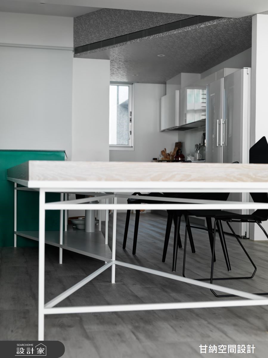 99平米住宅为2人1狗新居,设计师采以纯净色调作为基底,融入干净简约的线条语汇,并加入三角设计概念,运用斜角串联各个角落,造就行云流水、一气呵成的机能脉络,快跟着小编一起来看看吧! 【客餐厨互动关系为主轴】设计师透过开放的公领域思维,保有客厅、餐厅、厨房之间的互动关系,在天花板加入斜角结构,并以犹如折纸般的斜切元素装饰柜体,搭配光亮的灰色壁纸质地,网罗机能同时亦凝聚整体的创意美感。【缤纷色系混搭出层次美】餐厅区则特别采用祖母绿的中岛平台,与客厅的芥末色沙发形成微妙呼应,搭配墙面黄色层板的妆点,衬出轻盈亮眼的色彩层次,而利落有型、有如雕塑品的量体外观,不仅充满艺术感,更与餐桌串联成更宽广的使用平台,拓大使用范围。