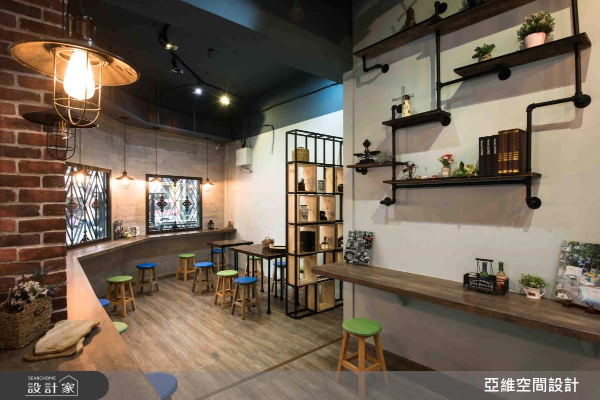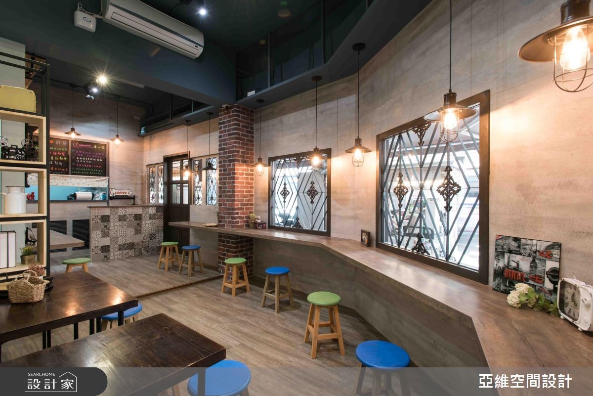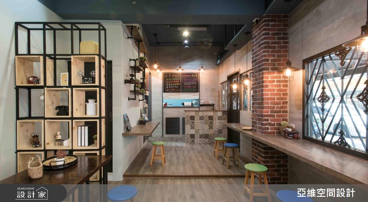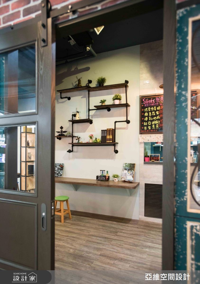 43平方米的二手屋商业空间,为"O'somewish"三明治轻食店,设计师加入乡村风格,透过拆卸下来的铁木旧船板,融合混搭而复古的色彩,搭配着老件窗花、古董门片与光影穿透,使空间有如童话绘本般缤纷梦幻!【怀旧木栈板,打造童话小屋质感】店面外观采用回收木栈板错色处理,营造手感况味十足的门面印象,同时以怀旧感复古红砖叠砌墙面,搭配斑驳且醒目的绿色门板,在反差色调之下,形构有如童话小屋般的特色场景。【铁件古典雕花,连结景观与光线】此外,也特别挑选国外运回的镂空铁窗,以欧式古典的雕花线条,运用清玻与镂空设计,连结室内与户外的景观,促进视线和光线流转;室内则规划面窗的吧台区与普通座位区,呈现不同用餐情境,不规则的层架设计,更增添变化与趣味!