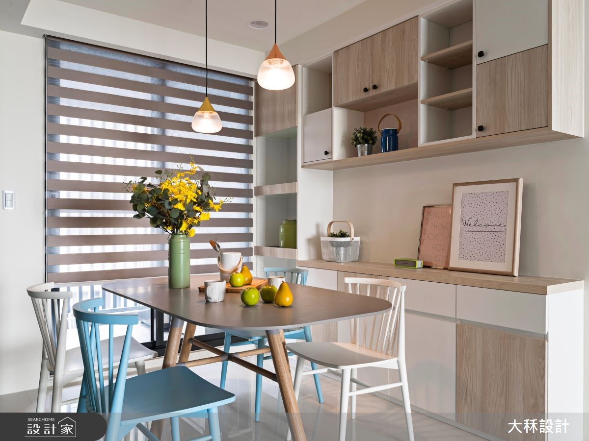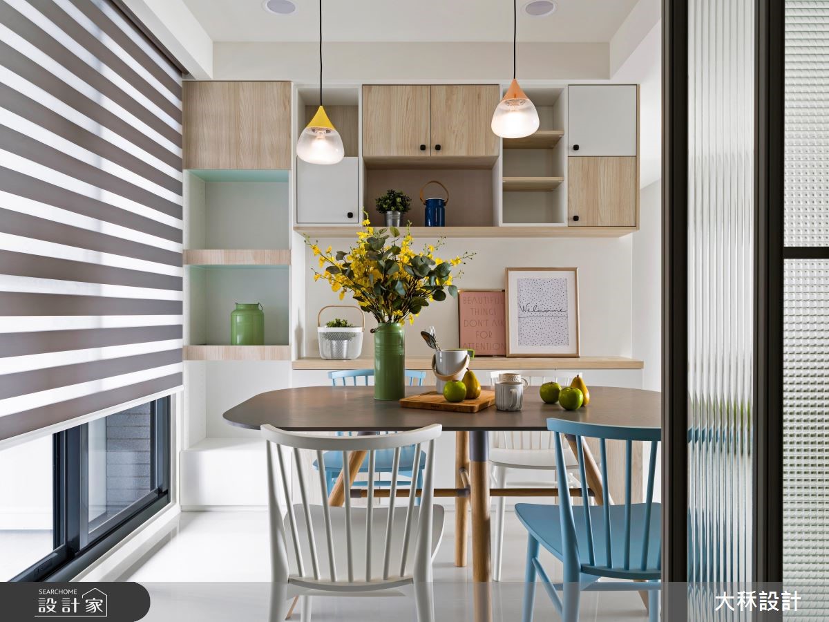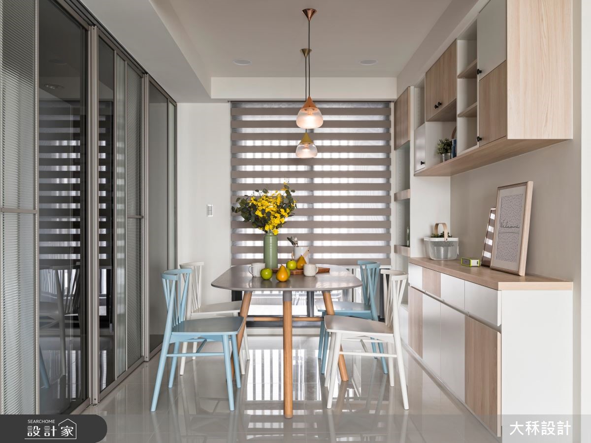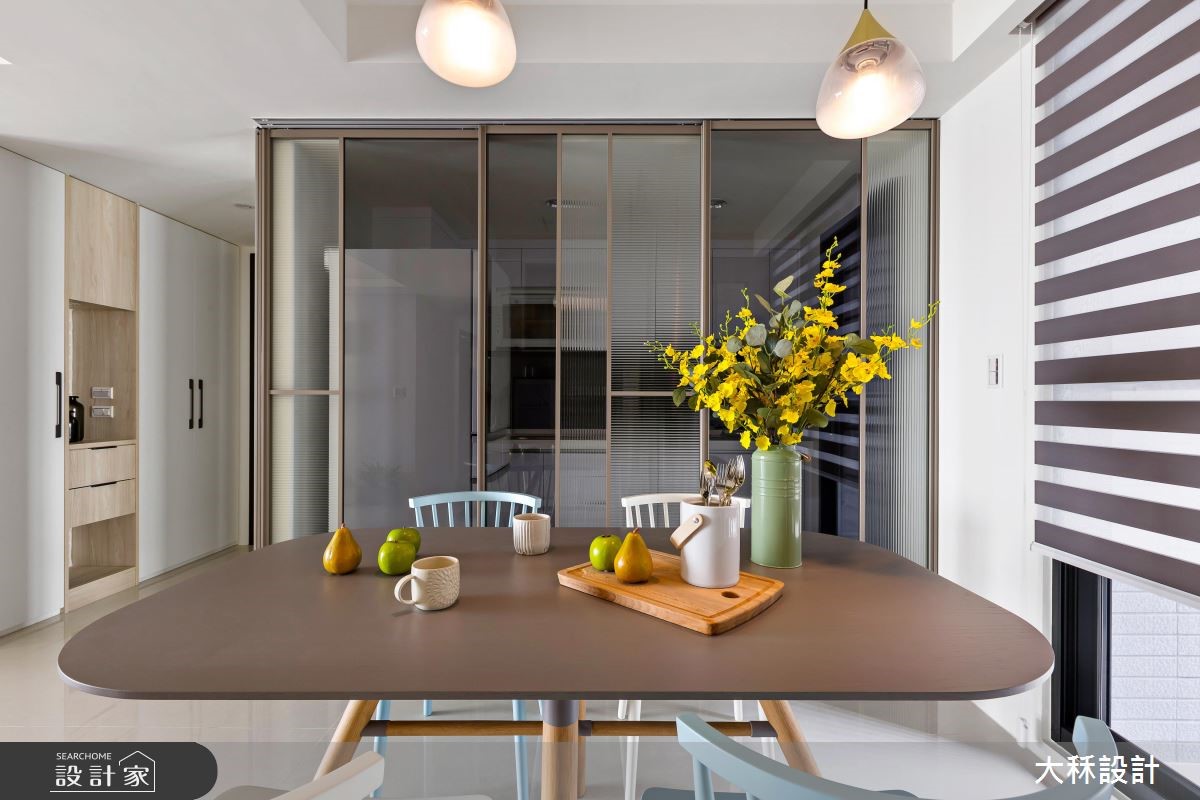 散发着清新、明亮气息的106平方米北欧宅,以文化石和木质的温润色彩,带来休闲轻松的氛围感受,让居住者回到家便能放松心情,舒适的休息和享受生活。【玻璃拉门,阻隔油烟又美观】设计师以开放式的格局配置,营造更宽敞的视觉感和流畅动线,并因应屋主需求,在厨房与餐厅之间加入大面积的玻璃拉门,让厨房像是一个清透的玻璃盒子,既免除了油烟飘散的困扰,也能成为空间中的风景,兼具实用机能与美感的设计。书房处以男主人喜欢的蓝色作为色调主轴,搭配浅色的木质展示柜和书桌,流露出温雅自然的空间气质。而为了提升收纳的机能性,在主卧增设一间更衣间,并以沉静的大地色系,为空间增添饭店式的舒适人文质感。