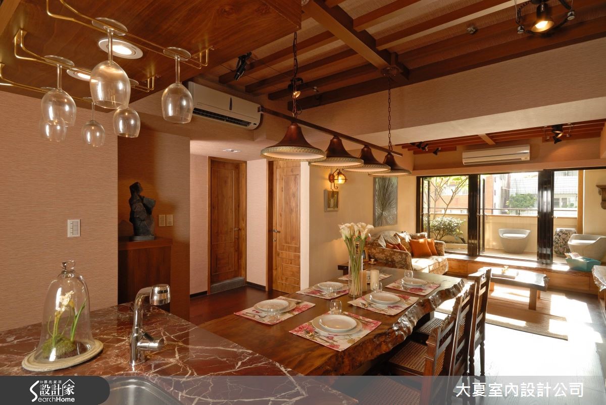 炎炎夏日,热情的阳光照亮普照大地。这间139平的居家,则以惬意的巴厘岛情境打造,透过有著原始纹理的石材,引入户外的绿植和窗景,远离都会的尘嚣,在家就能享有度假般的天堂。【木质与大量光影,带入写意度假风】架高的阳台结合落地窗的通透,户光自然光随之流畅入室,映照出屋内温暖的空间细节。户外藉由南方松铺陈地坪,种植绿意植栽,搭配抿石子鸡蛋造型的单椅,形塑南洋度假般的意象。客厅窗边则以原木平台架高空间,创造飘窗机能,而与阳台地坪等高的手法,将室内外相融为一,也将户外的自然风光引入室内。藉由实木梁天花板串连起公共空间,粗犷味道的文化石打造电视主墙,结合原木质感的电器矮柜,搭配简约线条植物画作,营造一幅原野风光般的写实意象。餐厅里利用原木餐桌椅抓出空间的核心主轴,且衔接起流露自然纹理的石材吧台,将烹调与用餐的动线自然成形,而摆放厨具的墙面与地坪以磁砖点缀,深浅色系的拼贴、活用,交织轻快的日常节奏。