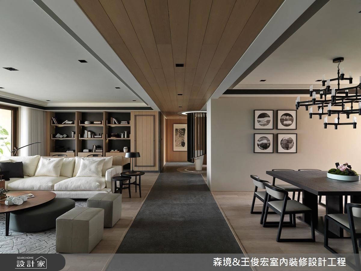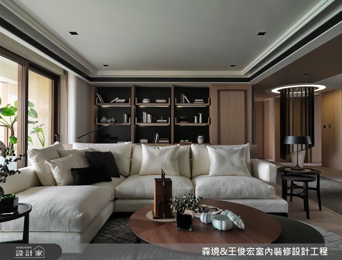 一旦格局安排到位,机能也需一并俱全。在纵深足够的客厅后方,划出开放式的书房空间,满足在家工作的需求。而典雅高贵的书柜设计,搭配浅淡沉稳的实木,成为客厅的迷人背景,彰显高尚大方的个人品味。