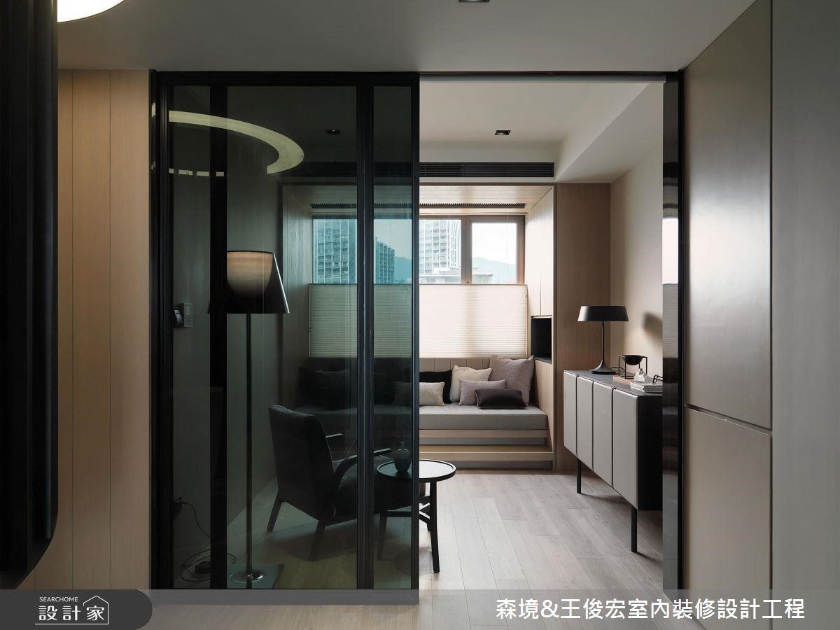 除了开放书房,也另外设置一个起居空间。为了维持原有广阔视觉,采用灰玻拉门的设计,可随时开阖通透,也让光线得以深入。而同时设计飘窗,让人能在悠闲午后随意躺卧阅读,创造舒适惬意的休憩时光。