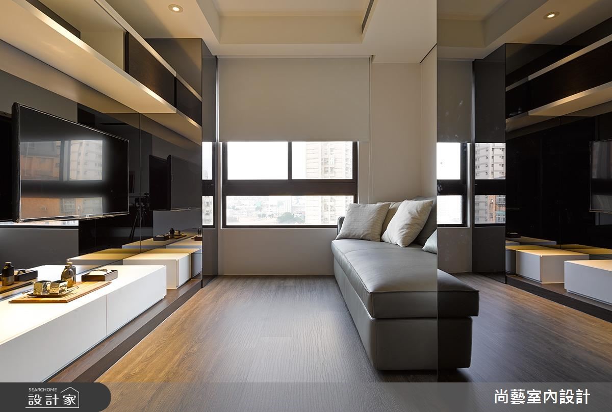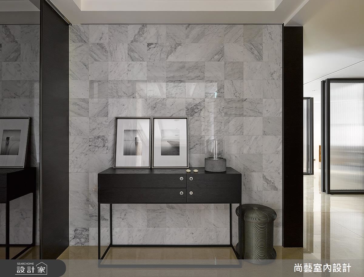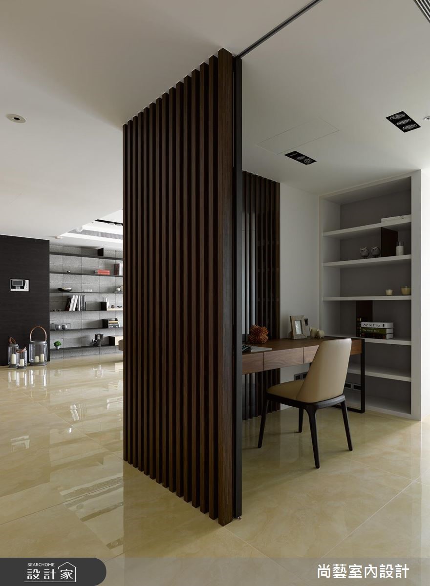 如何为三代同堂建构紧密的感情链接,却同时拥有宽敞流畅的生活动线?设计师将重点放在公领域规划,内玄关并以方格拼贴的银狐石壁面与灰镜作为迎宾主墙,让235平方米宅邸拥有温馨氛围却不失大器质感。 【善用格栅与玻璃,空间更扩容】公领域以串连居住成员的情感为主轴,不仅将开放琴房安排在玄关入口处,让悠扬乐音得以伴随一家人的每个欢聚时刻。也刻意摆脱电视设备的框架,利用铁件与木元素打造宛如五线谱与音符的意象,让空心砖主墙更有视觉律动。客厅背墙则以双色木格栅与后方的半开放书房衔接,既保有隐私,也不妨碍采光的流动。一如开放餐厨空间也利用半透明的玻璃折门,维持光线通透感,又可防止油烟逸散。吧台采用不锈钢台面,彰显前卫且易清洁的材质特色。