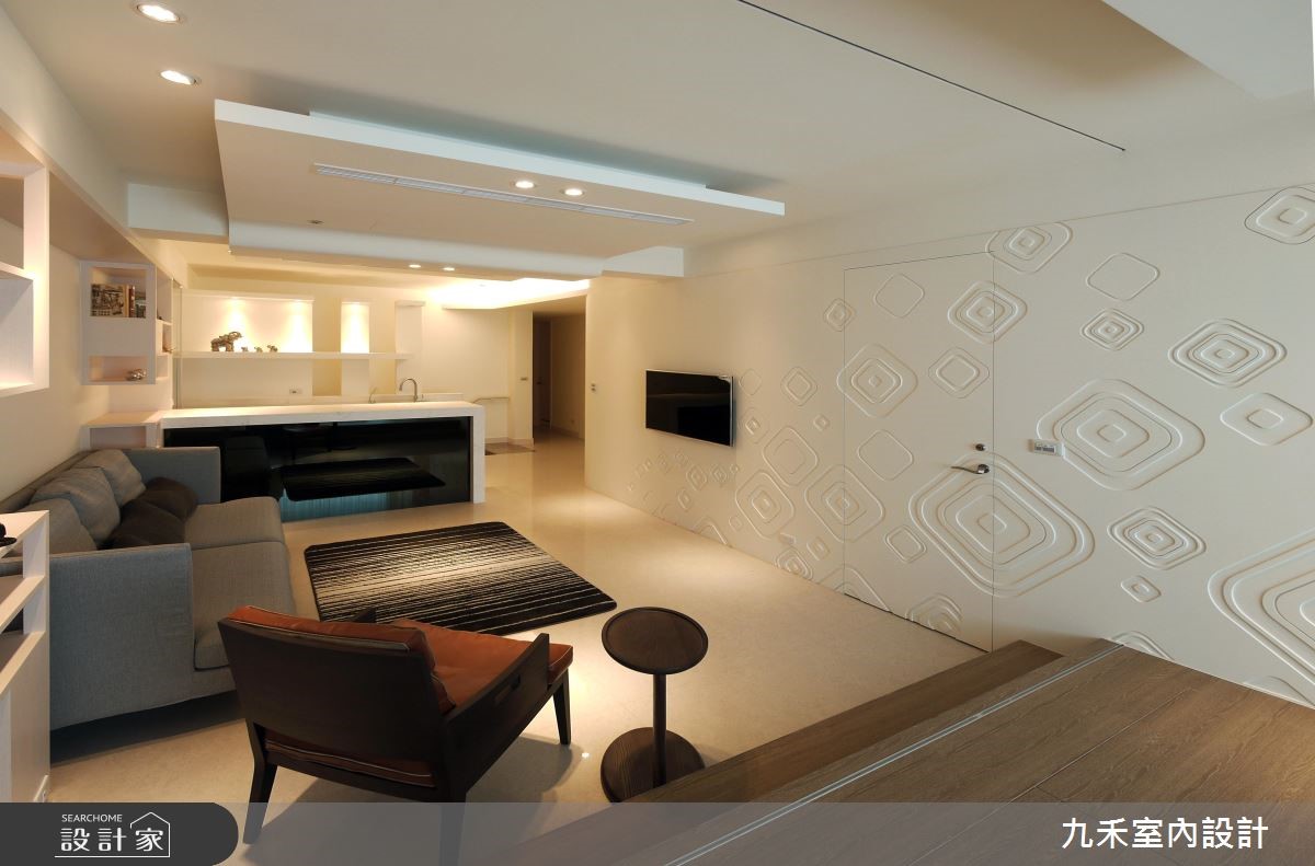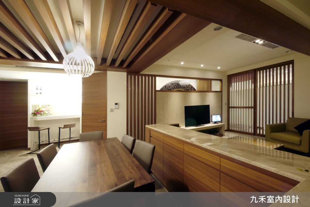 264平方米的独栋楼前身为老屋,设计师除了针对屋况进行翻修,亦同步导入两种现代风格,让起居客厅、迎宾大厅坐拥不同氛围,替生活型塑更多元的居住体验,快跟着小编一起来看看吧。 【木格栅修饰梁柱,注入温暖气息】一楼客厅以白色与木质交织搭配,演绎带有日式风情的况味。并为了化解大梁压迫,采以木作格栅修饰,运用横向或垂直的线性延伸,凝聚规律的层次之美,同时透过木皮肌理注入温润视感,赋予家的温度。餐厅、客厅间采以矮墙做界定,一旁额外规划小巧吧台,赋予开放式格局的灵活弹性。起居客厅则线条简单,呈现利落干净的基调,而电视墙的立体纹路,充满着趣味的律动感,增添了立面的视觉张力。顺应窗边架高地板,并纳入升降桌,既可成为家人聚会的场所,也可作为客房使用,用途多元。