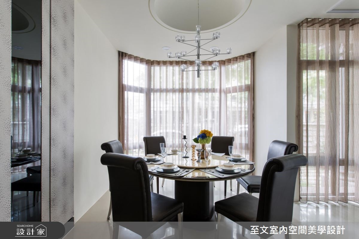 事业有成的屋主与已成年的儿女即将迈入人生下个阶段,需要将老旧的独栋楼重新规划为适合三代同堂的居所。设计团队巧妙利用色调搭配营造沉稳、清新兼具的现代风情,不失大宅范也不显老气,相当适合三代同堂间的世代平衡。【深色家具和木色,空间更显沉稳】喜爱现代简约风格的屋主相当尊重设计师专业,仅希望能将三楼空间留给儿子一家人,并依照需求量身打造。设计师善用独栋基地优势创造通风采光,搭配天然建材,给予一家人安心无毒的居所。 一楼客餐厅以深色木皮与黑色家具创造沉稳的门面,餐厅更以圆顶设计营造气派风华。二楼以家人专属的起居室及卧房为主,创造私密的欢聚场所,设计师更贴心为屋主与女儿房保留大量光线,在窗边设置简易休憩区,可与大自然连结。