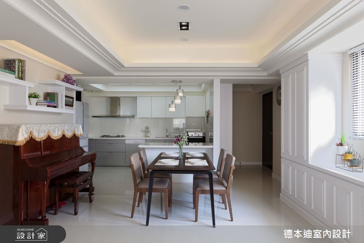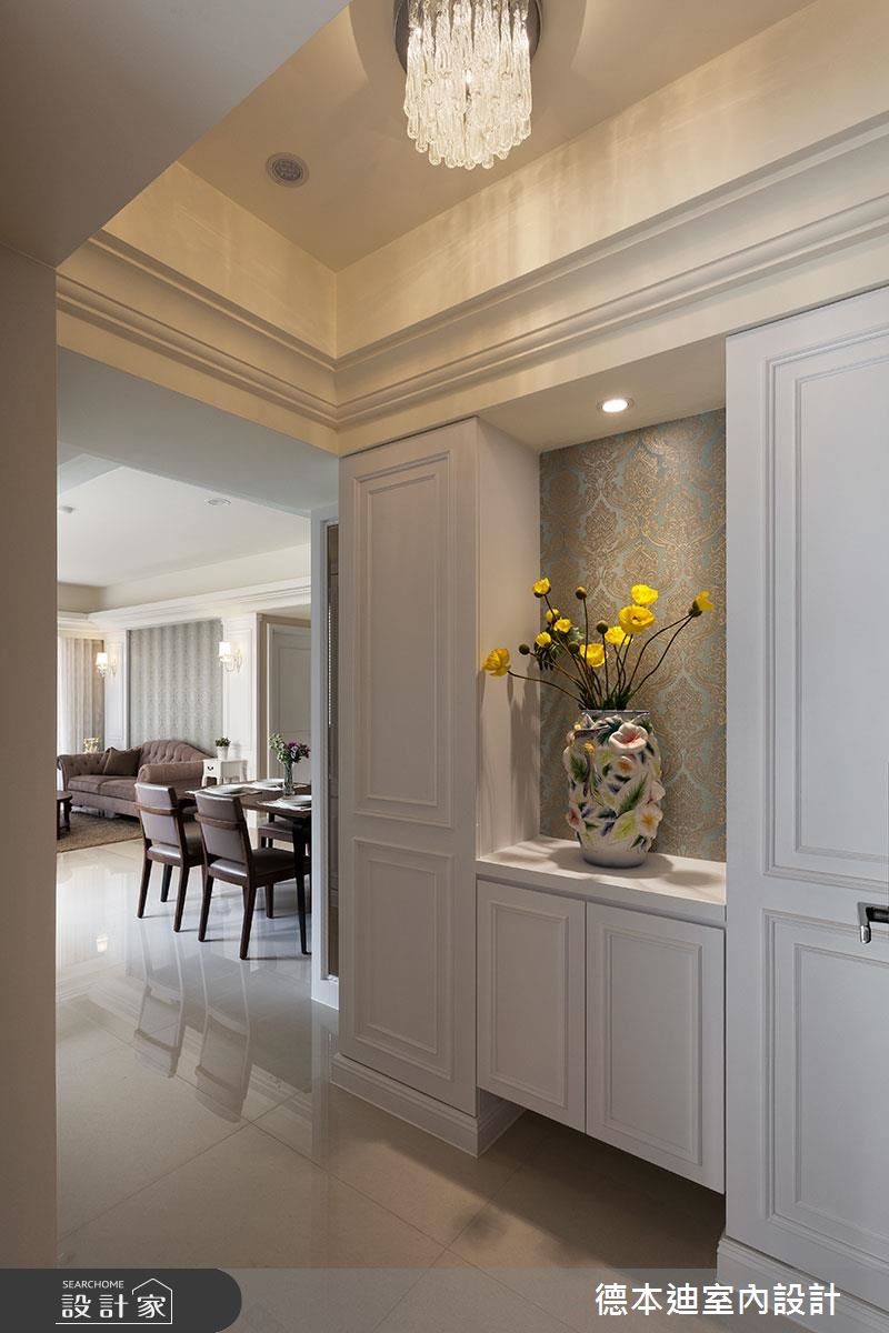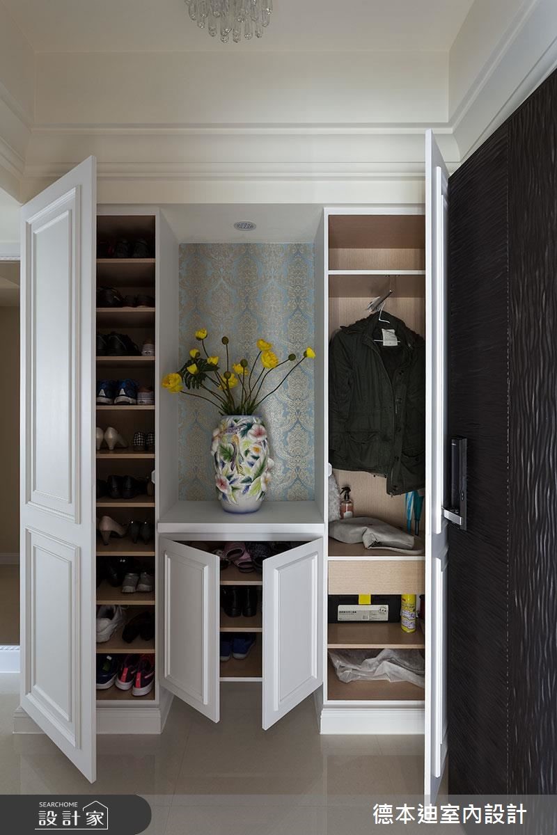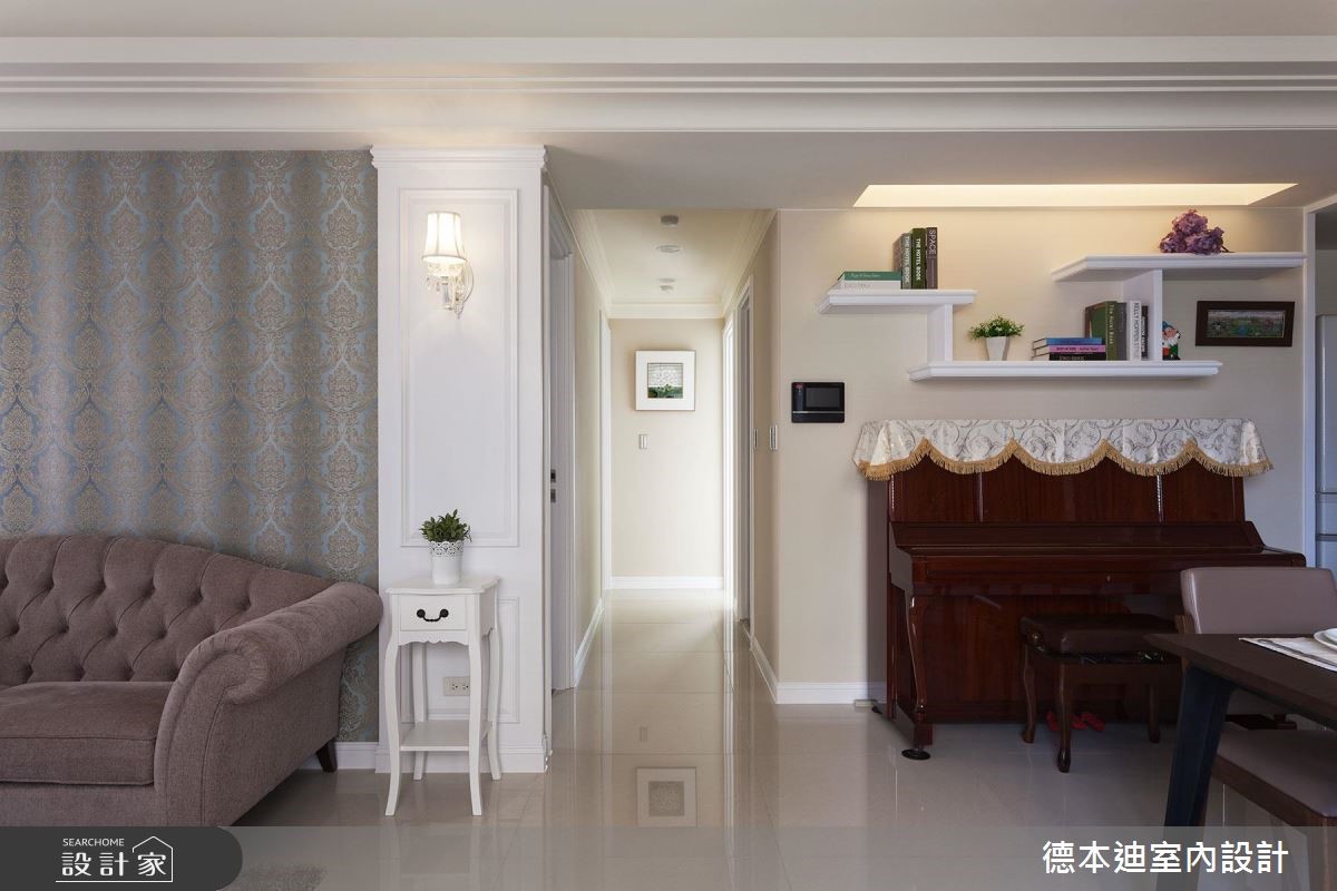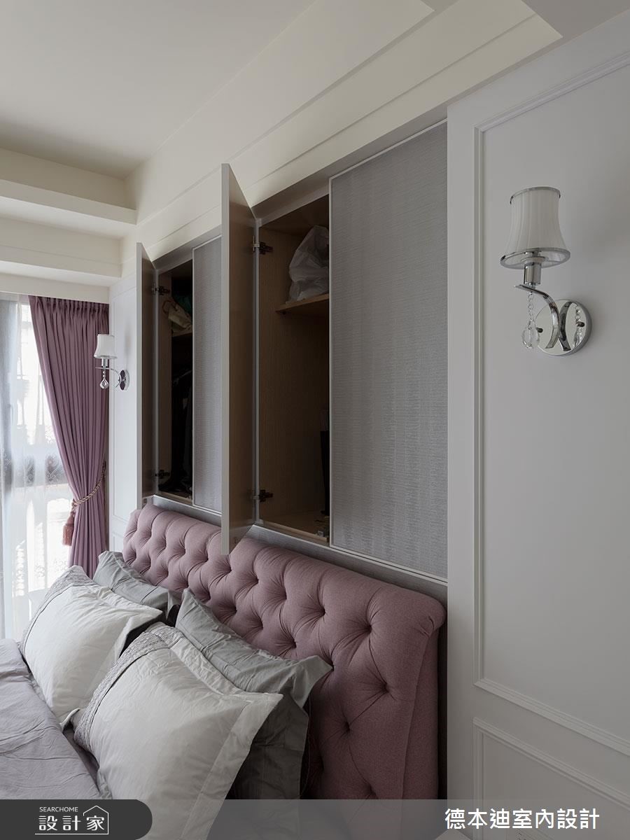 想要有清爽、明亮的住家生活,除了风格上的规划,收纳也十分重要,99平方米的美式风居家,设计师保留原有的3室2厅格局,并化解大梁的压迫感,从玄关、客厅、餐厨及卧室,皆赋予充沛的收纳设计,打造实用又美观的美式生活。 【线板点缀,增添居家质感与层次】玄关透过木作线板的高低层次,减轻大梁所带来的压迫感,并设置兼具收纳与展示的衣帽柜,成为入门后优雅而细致的景观。客厅电视墙以屋主喜爱的壁炉样式为设计,细节处加入细腻的线板装饰,搭配华丽大方的壁纸和灯光,营造出屋主期待的美式风格居家。主卧和女孩房床头处都有一道大梁,设计师在不更动水电的前提下,运用壁纸和定制家具,为主卧室精准规划了超大的收纳空间,女儿房则以圆滑弧线削弱锐利的梁体棱角,修饰原有格局的缺陷,同时满足实用和美观的装潢需求。