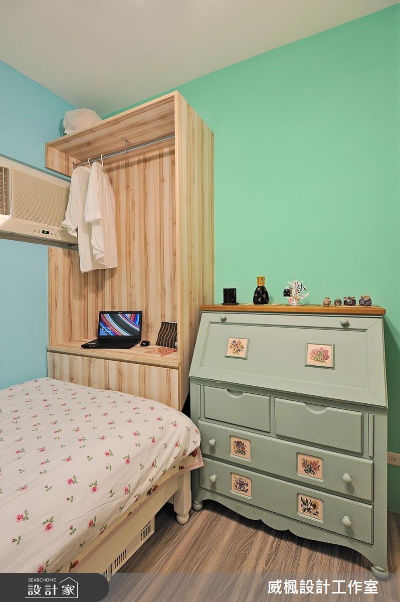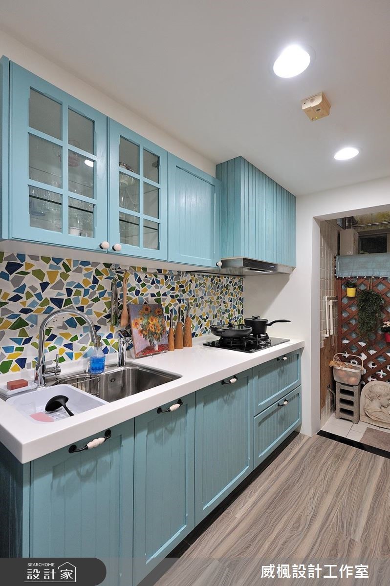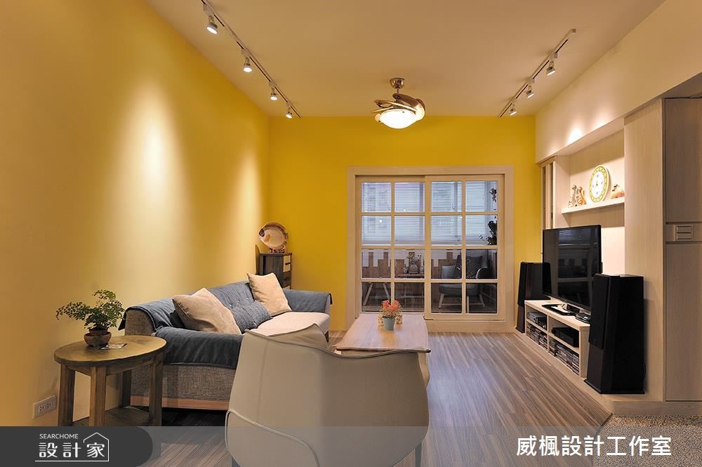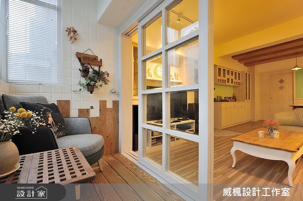 老屋蜕变重生!以缤纷、温润的乡村风为基调,且利用蓝色、黄色、粉绿等色系轻洒全室,丰盈室内气息且创造出不同的领域感受,让屋主夫妻俩沉浸在缤纷活力中。【缤纷墙面妆点,定调空间韵味】天花板装设轨道灯,洒落在黄色壁面上,映照出温暖的公共领域氛围,加上温润木纹的铺陈,调和出温馨的生活态度;客厅旁的户外阳台以玻璃与木作格纹交织出拉门造型,并在木地板、单椅、矮柜与植栽的点缀下,创造舒心疗愈的角落,伴随屋主度过悠闲的午茶时光。餐厅区的天花板以木作格栅为设计,搭配原木餐桌椅,酝酿简单、舒服的自然空间,主题墙上以浅蓝色铺陈,利用层板与风格餐盘的搭配,注入人文艺术之美。而厨房与卧室空间,也以不同的缤纷色系定调,且加强收纳机能,创造美感与实用满点的暖心设计。