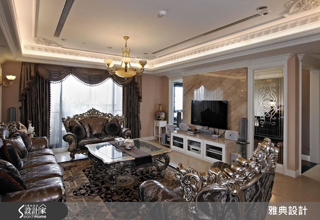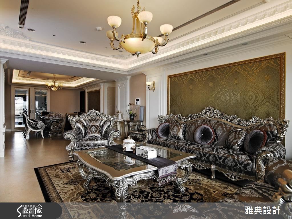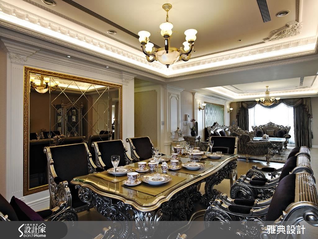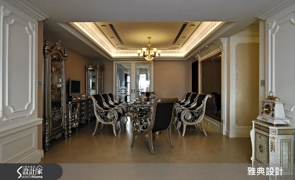330平方米大的豪宅,设计师以古典风作为主要风格,透过家具、大理石、墙纸、窗帘等建材,援引雕花线板穿针引线,勾勒出经典而奢华的宫廷豪宅气势,快跟着小编一起来看看吧! 【纯正古典家具,尽显大宅气势】走进居宅内,仰望客厅天花,即可见层层堆叠的华美线板,搭配深具优雅造型的家私珍品,凝聚大器古典的空间视野。并采用大理石构筑电视墙,定义整体的柔美色调基底,唯沙发墙以绿色墙布铺述,跳出不一样的视觉亮点。餐厅选用与客厅相呼应的同系列餐桌椅,藉由家具那精雕细琢的银色立体雕花,呈现皇家风范,一旁墙面则透过镜面结合金属框架,照映出迷人意境。寝卧内以优雅的床头板,型塑法式高级品味。窗边陈设一张贵妃椅,搭配着温暖光氛的烘托,诠释慵懒生活。
