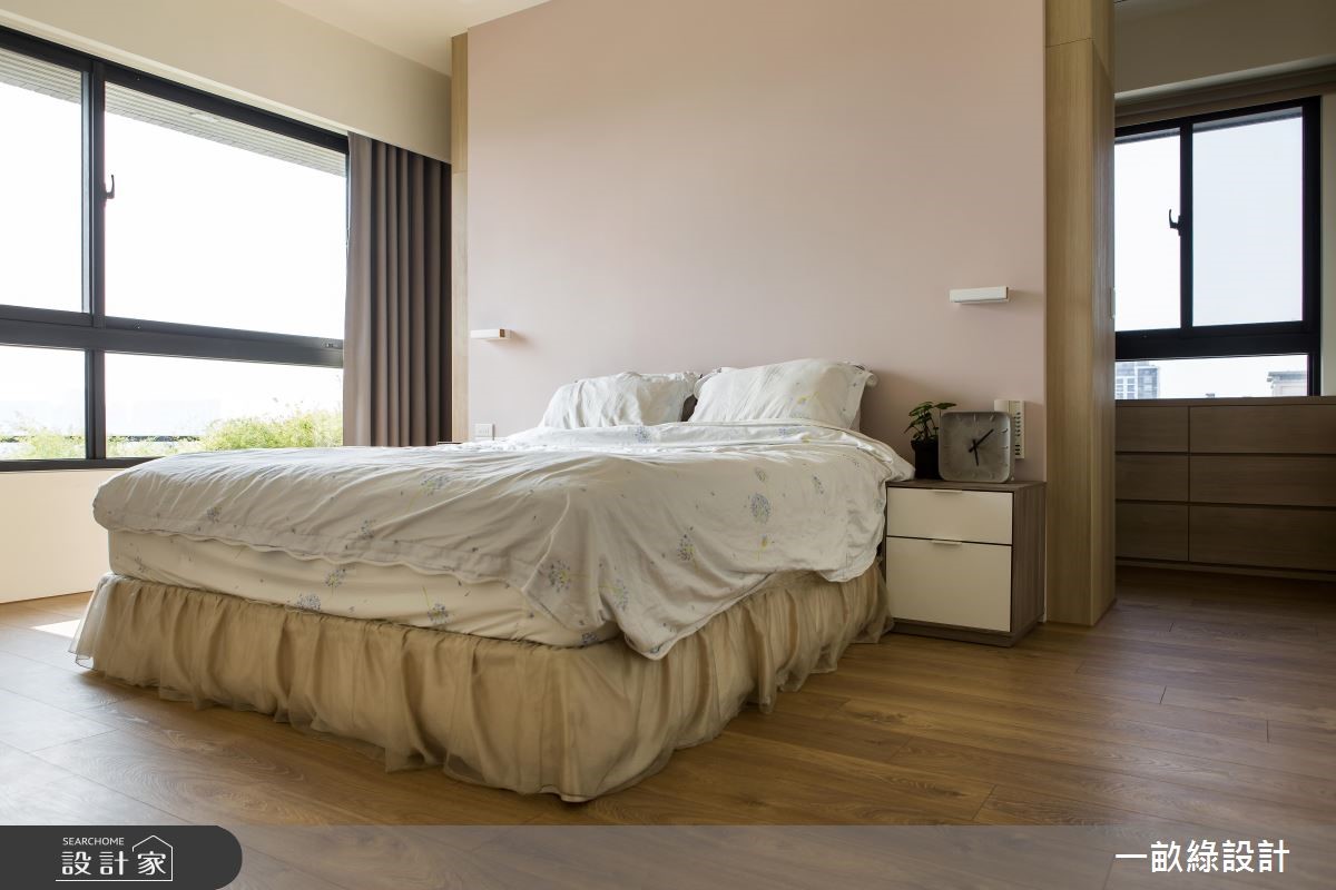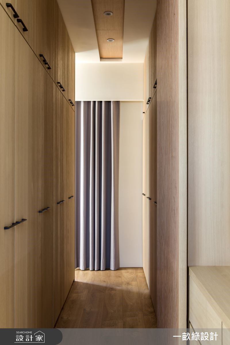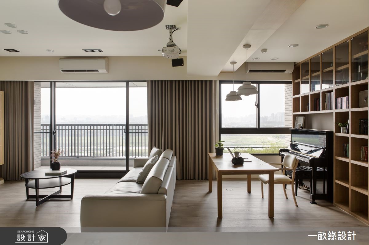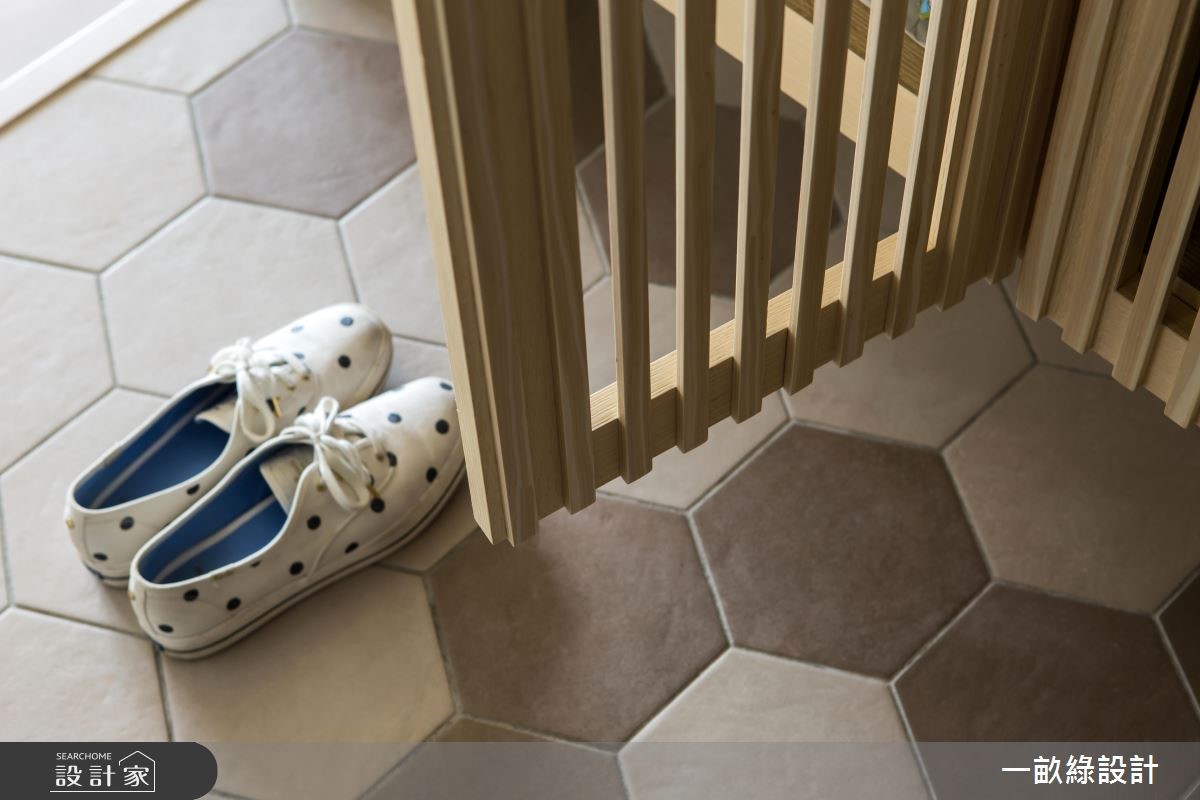 想拥有一个舒适的居家,疗愈的木质向来是不可或缺的。干净的天花板及墙面,伴随木纹肌理铺叙地面、家具与收纳柜体,酝酿简约、自然的生活况味,藉由原木质感纪录人情温度,平凡中更显非凡的居家设计。【转角书墙,成为空间展示焦点】大地色调的六角瓷砖铺陈玄关领域,具穿透力的格栅设计转化为鞋柜造型,增添一抹淡雅和风味。走进公领域,户外暖阳从落地窗映照入室,视线同时可望向窗外的动人景致,流动的自然气息充盈室内,展现宽敞舒心的居家生活。廊道左侧为客厅、书房,原木桌椅自在摆设出阅读区,后方打造一整面开放木作书柜,中央嵌入一处可摆设屋主珍藏的钢琴。灵活多变的柜体造型,持续沿着转角延伸到后方墙面,随心情更替风格藏品展示,诠释美学及机能兼备的多功能设计。鞋柜后方则有一小道粉绿色墙面,围塑出可使用电脑的书房领域。一旁为厨房空间,厨具及中岛的摆放方式,拉出L型走道,将空间机能尽情发挥,创造日常生活的小确幸。