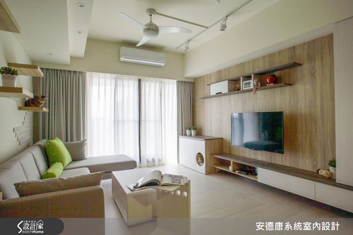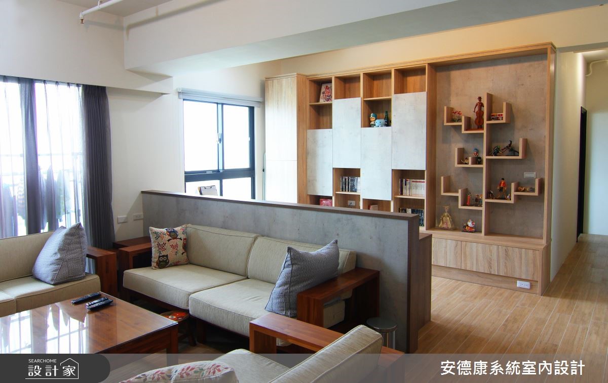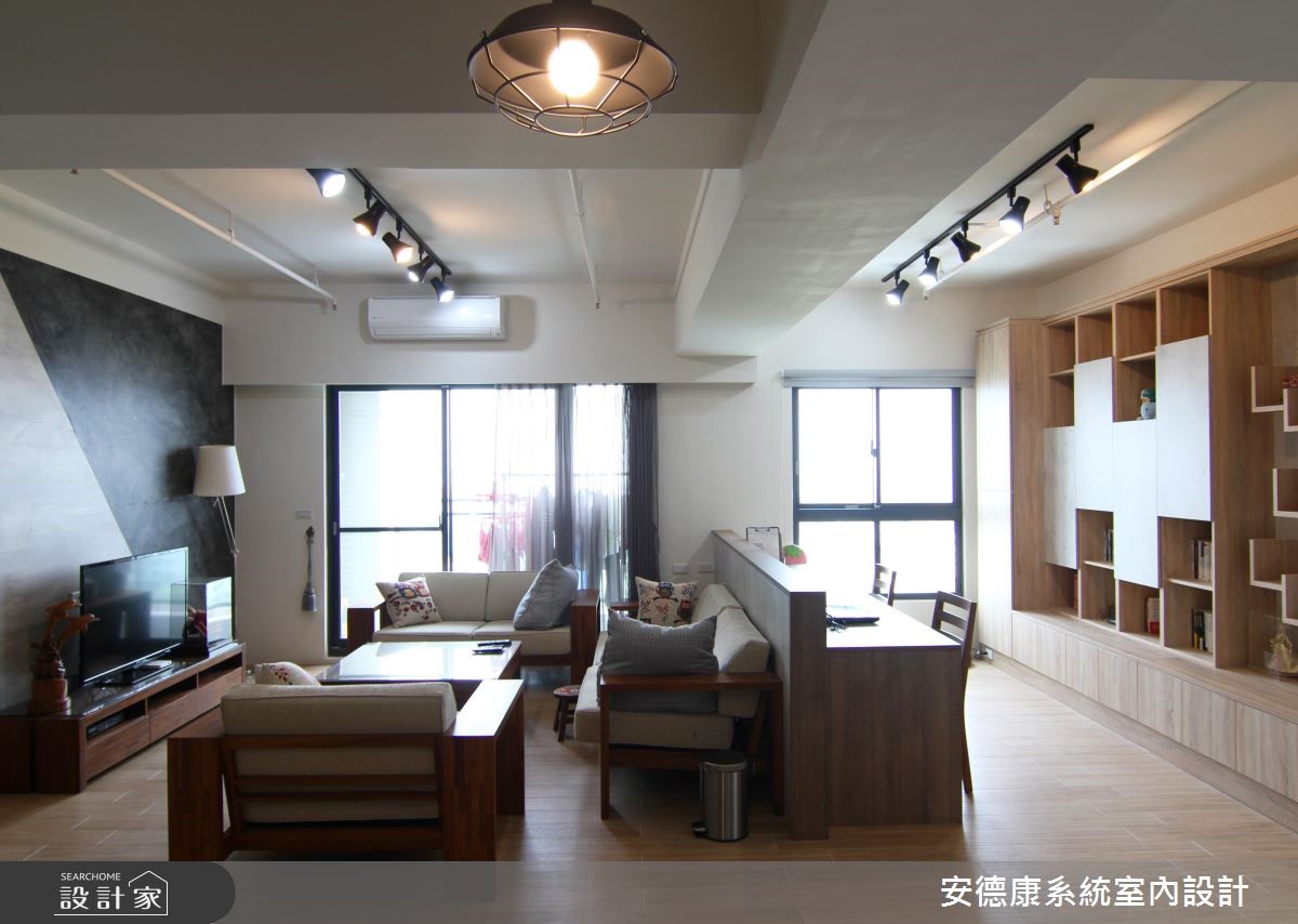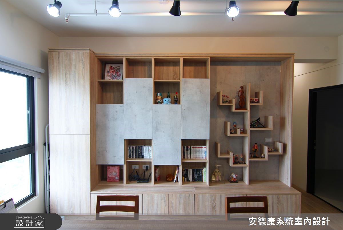 92平方米居宅,设计师在少量的预算条件下,运用系统柜的色调及造型变化,网罗收纳机能、空间感、风格美学。丝毫不见繁复设计,有的只是简约的温馨美好,快跟着小编一起来看看吧! 【多维收纳概念,利落又不失趣味】居宅保留天花板与管线,透过朴实、不加修饰的设计手法,呈现纯粹而原始的空间姿态,并加入轨道灯拉出线条,营造视觉延伸感,保有整体的开阔度及挑高视野。沙发后方则刻意留出一块空地,规划为书房阅读区,采用仿清水模搭配橡木素材,搭构成一整面美型书墙,一旁选用隔板做出树状展示平台,替立面添注生动的趣意。餐厅延续简约的场景,藉由变化丰富的柜体表情,替场域加入机能与美感,并在丰富的展示品与收藏挂画之中,揭示与居者相关的美好记忆,带出生活中的舒适温度。