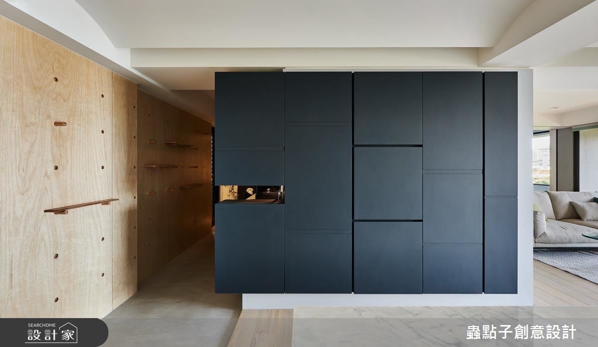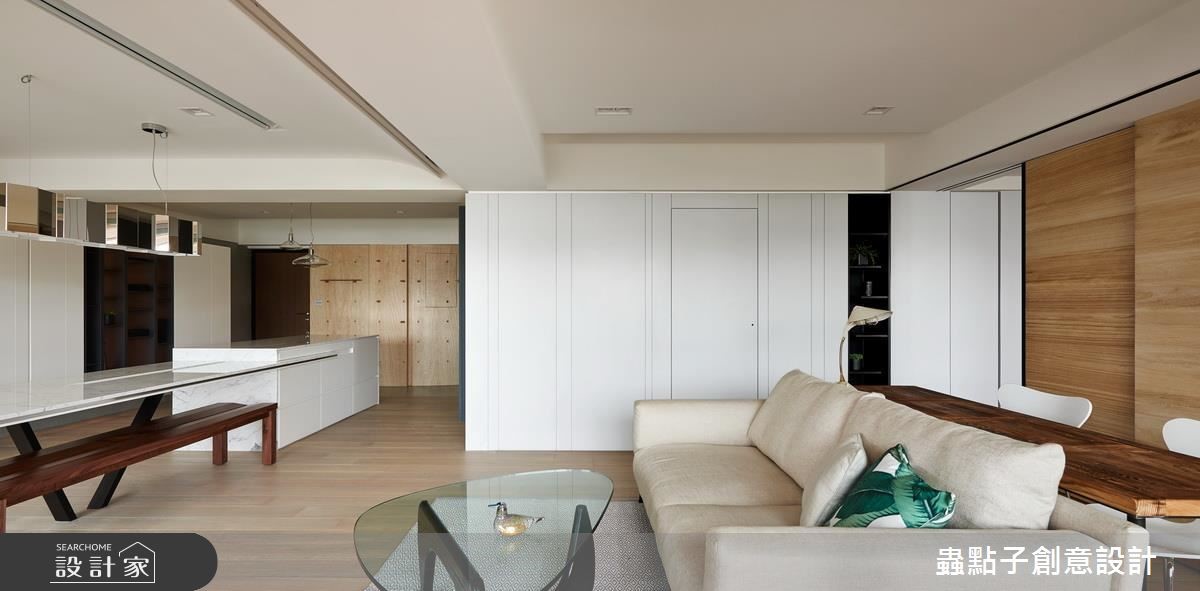 二手房改造的单身宅,虽仅有116平方米,设计师却巧妙运用阳台规划来引景入室,透过让光线及景观的进驻,并以中岛吧台作为家的核心,开启北欧风住宅的敞亮视野。【无隔断布局,让采光与景观通透】设计师以房屋正中央的大中岛作为居宅核心,让好客屋主可在此与亲友欢聚;同时藉由内退手法,加大阳台空间,再刻意压低女儿墙,于靠窗处架出较高的木地板廊道,以此框出整片城市天际线,替室内延揽一幅随季节变幻的美丽框景。而卧房、更衣室、主浴则配置于后方,利用推拉门作为界定,轻巧划分公私领域,并透过巧妙的墙体开口,构成循环动线,淡化公与私的分野;主卧床头那如画般的大理石墙,即在门片开启之时,形成引人注目的唯美景致。