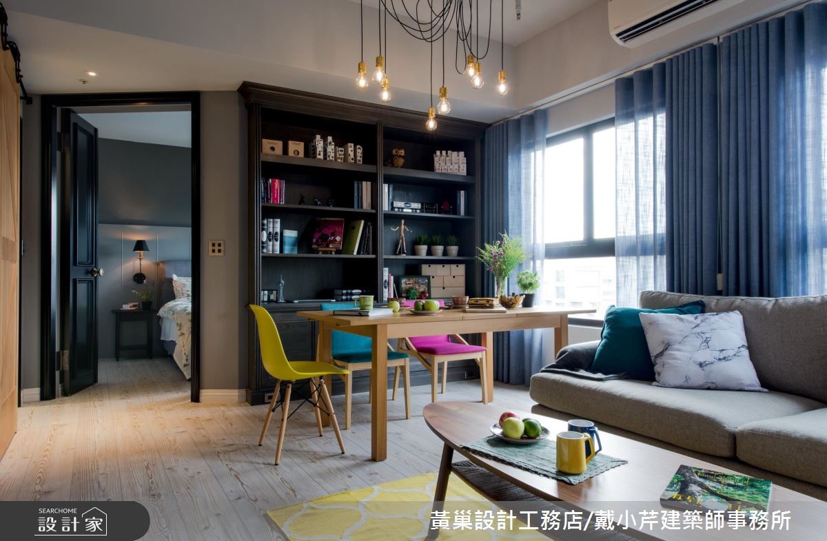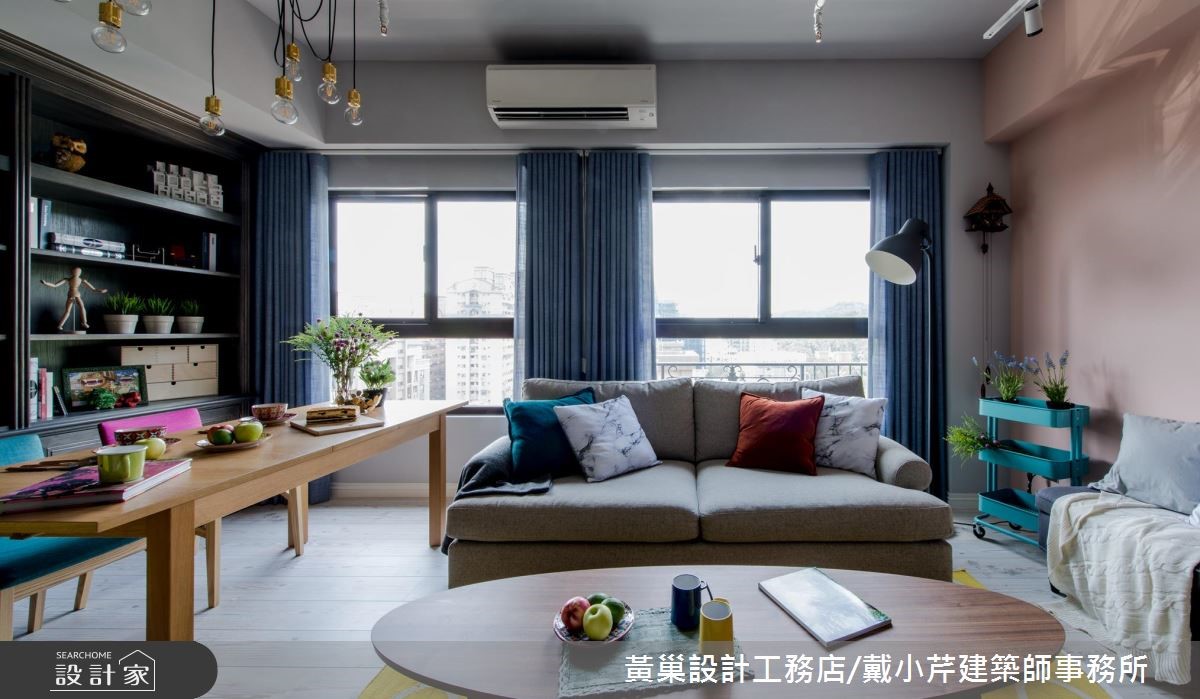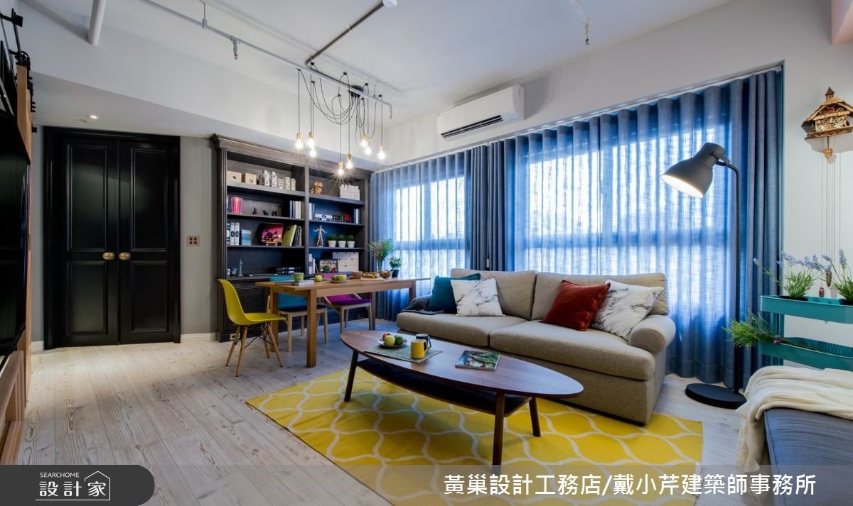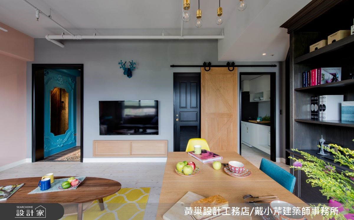 只有53平方米小户型是建筑师与妻子的新家,希望借助黄巢设计的专业规划,让夫妻俩拥有宽敞的玄关与储藏间、开阔公领域、独立厨房,以及附有更衣间的主卧房。究竟设计团队如何创造风格兼具实用机能?快跟小编一起看下去! 【玄关动线重整,就多了储藏间】重整玄关的格局,创造廊道加入储藏间机能,并与卫浴、厨房设置为同一侧,不因廊道设计导致空间浪费。在玄关地坪铺设花砖,创造内外分野,左侧为储藏间和穿鞋区,右侧则利用欧式雕花造型板,框设出一面复古穿衣镜,塑造经典美式风格。 公领域以美式风格为主、工业风格为辅,灰色与粉橘色主墙搭配裸露管线、工业吊灯与谷仓门,创造冲突与细腻兼具的美感。大量移动家具保持使用弹性,复古木纹地板与线板造型大书柜,配上鲜黄色地毡与缤纷餐椅,巧妙融合活泼与经典元素。