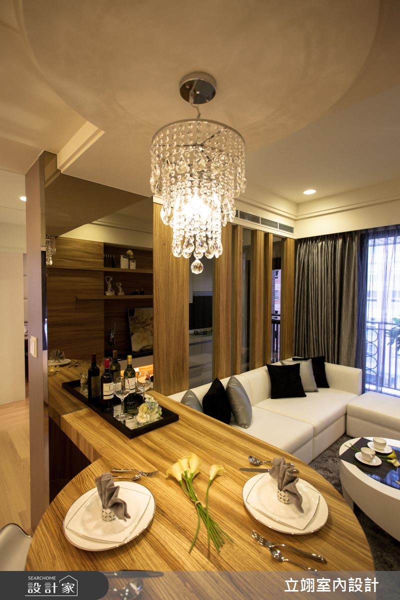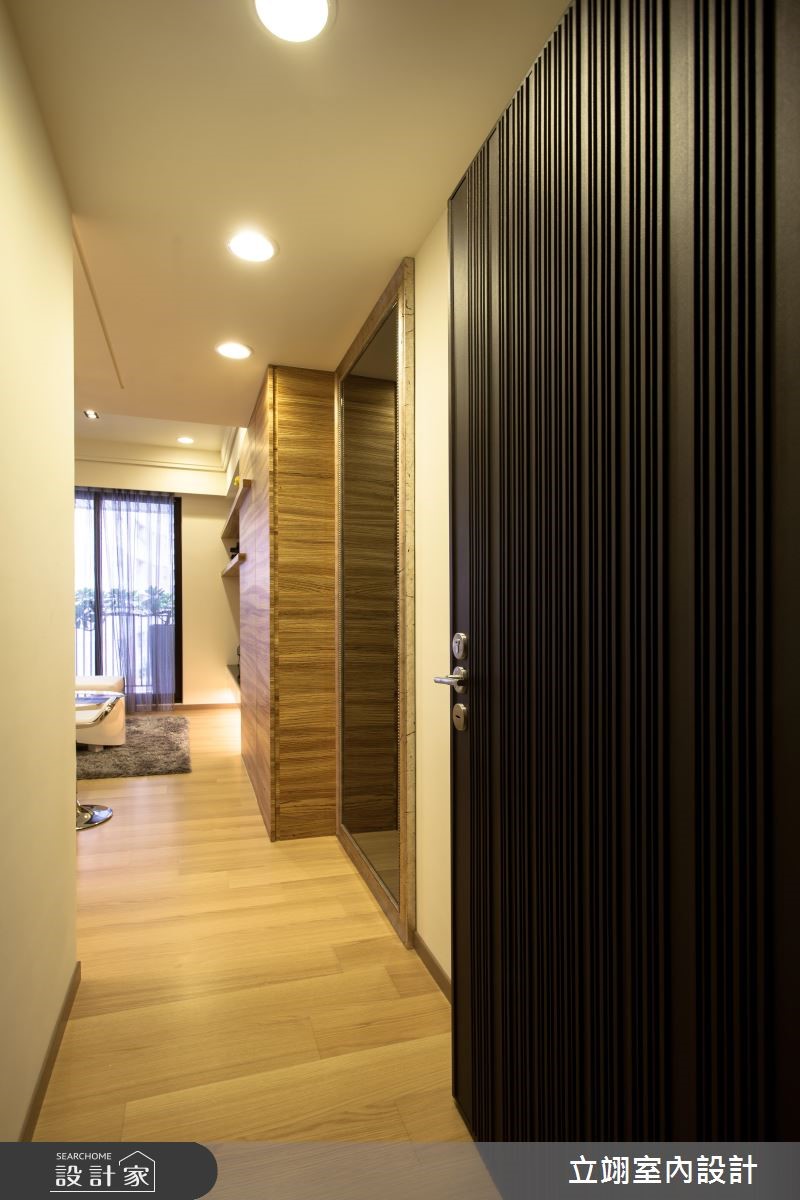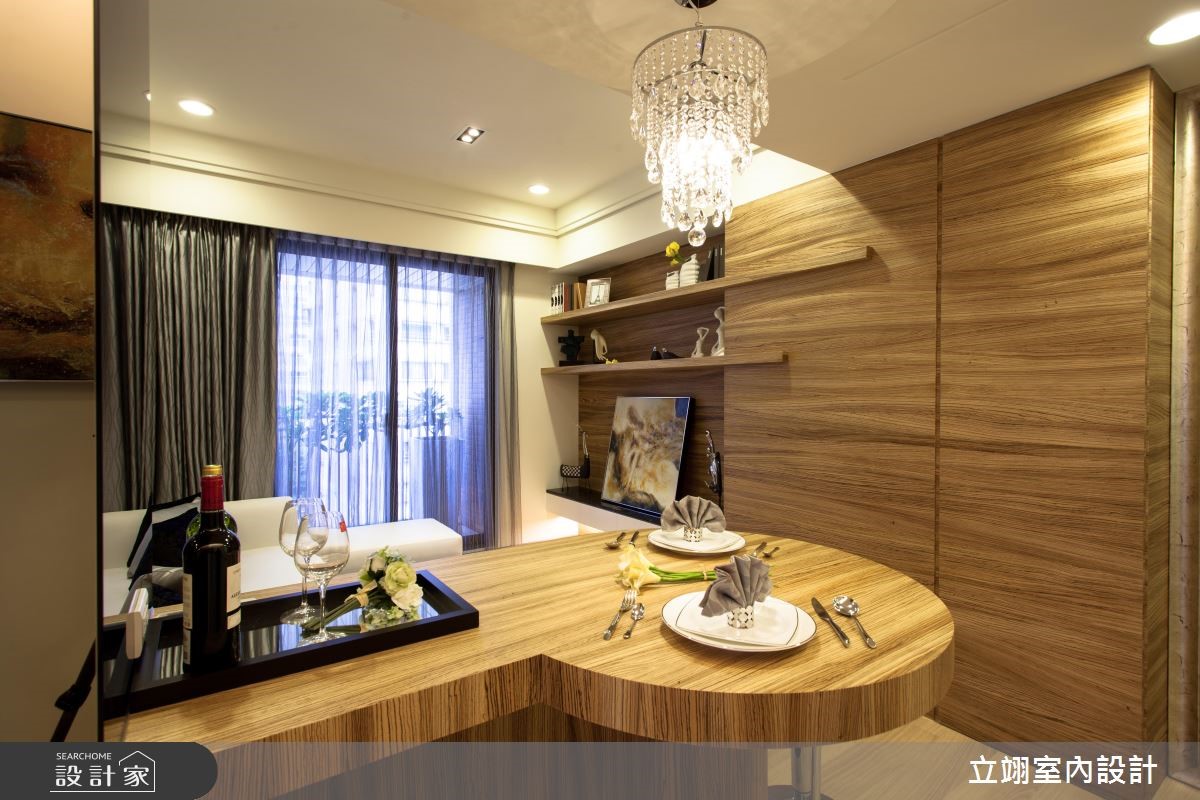 99平方米的住宅空间,设计师以简约线条与温润的木皮,将自然气息纳入室内,并延揽收纳机能与量身定制的小吧台,打造出让人倍感纾压的居宅环境。【善用玻璃材质,打造通透视感】整体透过木皮作为延伸基底,创造场域之间的连结,使空间感获得充分放大,搭配灯光提点,烘托满室温馨氛围;沙发墙则穿插镶嵌镜面,在纯净基调中带出丰盈层次,装饰性地营造个性之美。客厅旁规划一座简易吧台,同步网罗轻食与餐厅机能,并采圆弧造型,形成既协调又优美的韵律感,且让吧台衔接墙面的镜面材质,形成放大的延伸效果;主卧则呈现白净明亮的基调,选用深色玻璃区隔更衣机能,既达成屏蔽目的,也维持穿透感,让场域视觉更形通透。