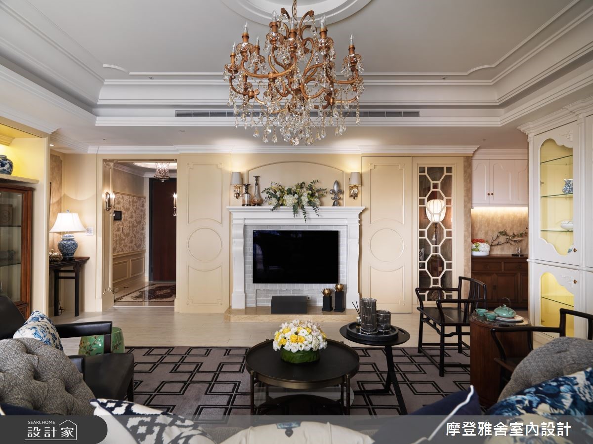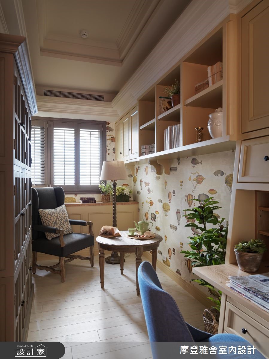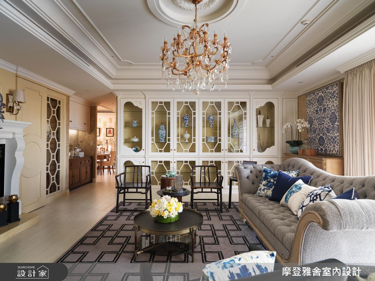 不同的年代,迥异的审美标准总是不断相互碰撞,在这个案例中,一家五口、三代同堂,各有需求的老中青三代,既想兼顾东方的内敛古韵,又想坐拥乡村风的温暖质地;于是,汪忠锭、王思文设计师将再次出马,带来风格、机能、全方位破解!【结合东西文化,营造大器姿态】设计师拆解公领域一道墙,达到扩容效果,再运用方型天花结合圆型语汇,阐述天圆地方的概念。客厅则选用淡黄色粉刷墙面,搭配微量的金色妆点,带出古朴风情,搭配西式线板与中式圆型洞门语汇,创造中西合璧的视觉之美。考虑屋主拥有许多古董,特别事先丈量并编号,量身定制展示空间,同时发挥精湛的美学功力,将古董与空间风格完美结合,共筑独特的新殖民地风范!特殊的双主墙设计,以"鸟语花香"手绘柜门对应精品展示柜,显示屋主的品味。将屋主收藏的古董窗花客制成厨房门片,不仅美化立面,更再造古件新价值,且在立面做出利落的美型收纳,落实清爽的格局视野。私领域也给予客制化设计,满足同堂三代的不同需求,比如长亲房融入罗马柱与金钱纹窗花;书房以墙纸布艺成就整体风格,令人耳目一新!