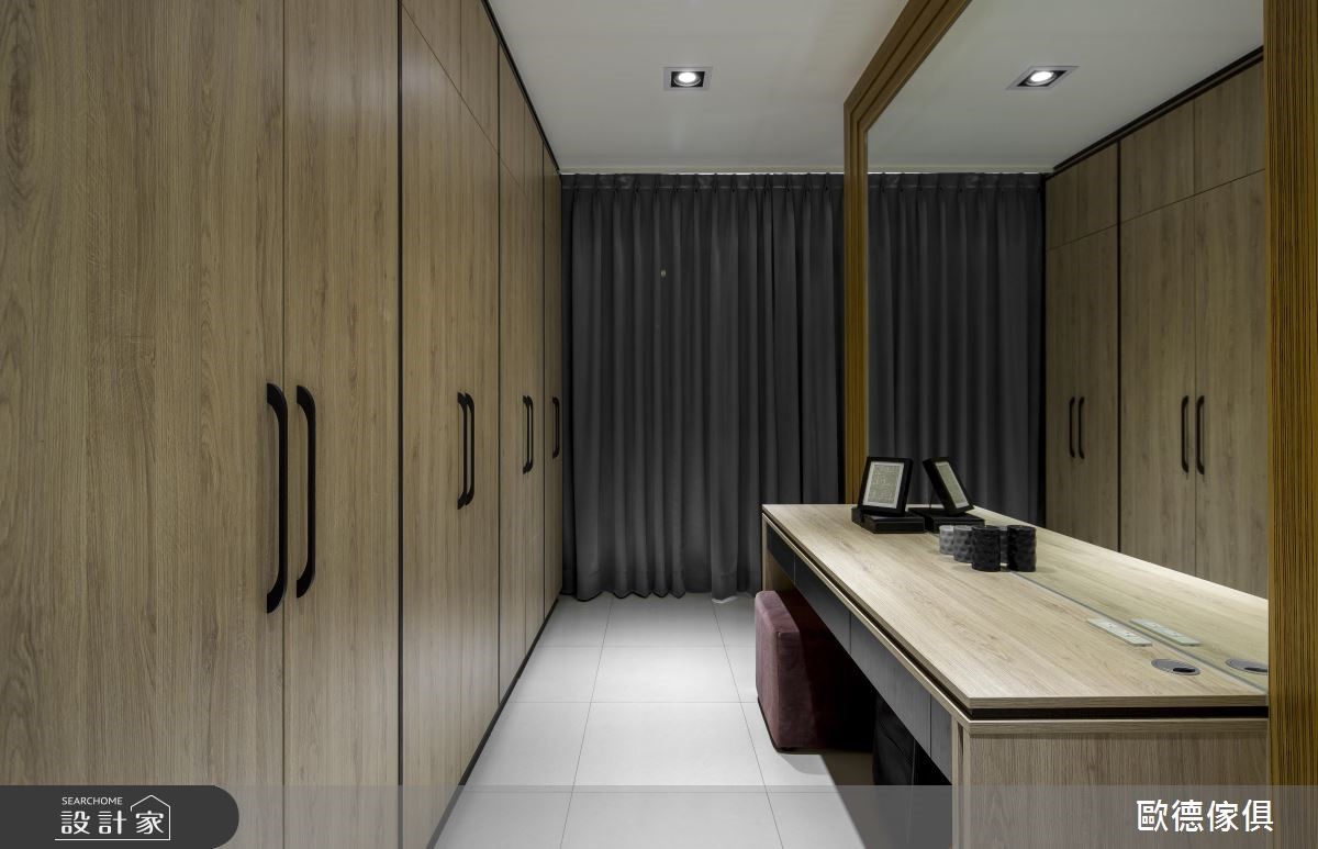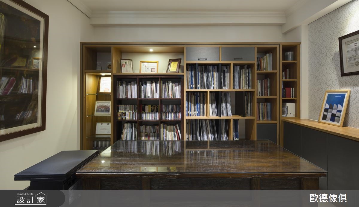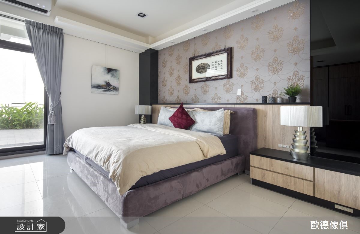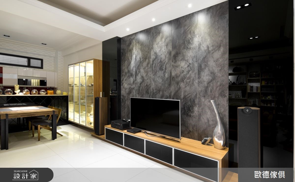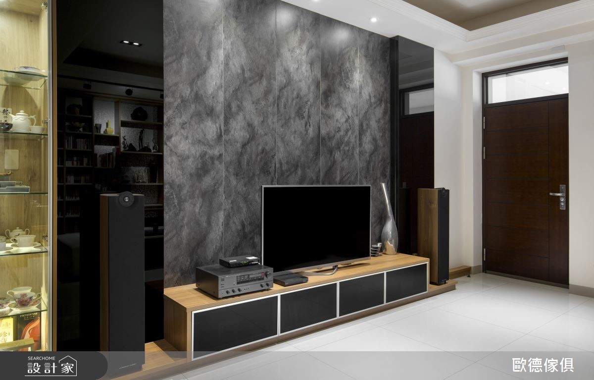 208平方米的独栋楼,由于屋主为国乐系教授,著重于乐器与乐理书籍的收纳问题,另外也因惜物性格,想要沿用旧家具,因此设计团队将旧家具与系统板材结合,转变为另一种新生命,打造出简约俐落的现代风格。【材质混搭,系统家具也能很多变】公共领域以开放设计串连客厅及餐厨空间,利用大理石质感壁面搭配黑镜,让电视主墙呈现大器氛围,背墙则因应屋主书籍收纳需求,搭配壁纸打造开放收纳层架,更善用大面积开窗,设置窗边飘窗与低台度家具。餐厨空间以活泼的鲜红烤漆玻璃搭配菱格纹吧台,营造时髦感受,搭配上屋主的珍藏柜,宛如一座小型艺廊。主卧则回归轻松淡雅,以色调轻浅的系统家具与壁纸,搭配充沛日光就很迷人。