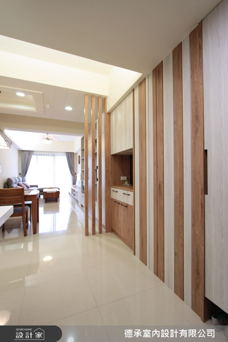86平的北欧宅中,设计师以有限装修预算,重新改造空间。运用美型简约的系统柜挹注收纳机能,且改善走道空间局促的问题。在3 房 2 厅的实用格局下,完成屋主心目中的梦想住宅,快跟着小编一起来看看吧! 【简约柜体添机能,平整空间视觉】步入居家中,可见开放而独立的玄关范围,透过一小道格栅配置,隐约遮蔽进门见窗的视线,同步划出厨房的所属地带,另一侧则规划机能柜体,期间穿插木纹与线条,一路从入口衔接至客厅电视墙,形成温润简约的立面表情。客餐厅采用开放式布局,让空间相互串联,浸润于美好采光中,谱出互动感的生活情境。主卧则将既有隔断作出变动,以换取更宽阔的使用空间。除了大容量的衣柜配置外,更让床头、书桌呈一体成型设计,使学习与睡眠同等舒适。
