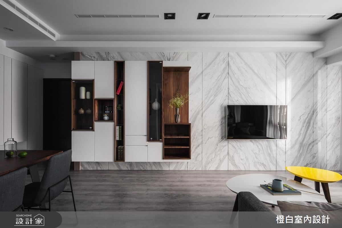 93平方米住两个人,设计师注入利落清爽的北欧风,并打通空间拘束感,创造明亮的采光优势。搭配活泼高彩度的家具与软装,打造出充满都会感,却不失活泼生动的住宅视野,快跟着小编一起来看看吧! 【大理石高雅纹理,展现轻奢质感】设计师以纯净白色作为基底,选用木纹肌理铺叙地坪与局部墙面,传递温暖的人文气息,并采用玻璃隔断,型塑客厅与书房之间的清透视野。银狐大理石电视墙则加入悬吊展示格柜,满足基础功能兼具美型意义,并运用缤纷的抱枕柔化棱角线条,带出活泼意趣。餐厅、书房内各自于柜体内妆点隐藏式光源,让北欧风褪去冰冷印象,凸显出温煦的生活暖度。卧室的床头墙做出独特设计,以延伸到顶的灰色立面带出个性,两侧则连结深色镜面,营造视觉延伸的趣味感受,让整道墙面显得放大。