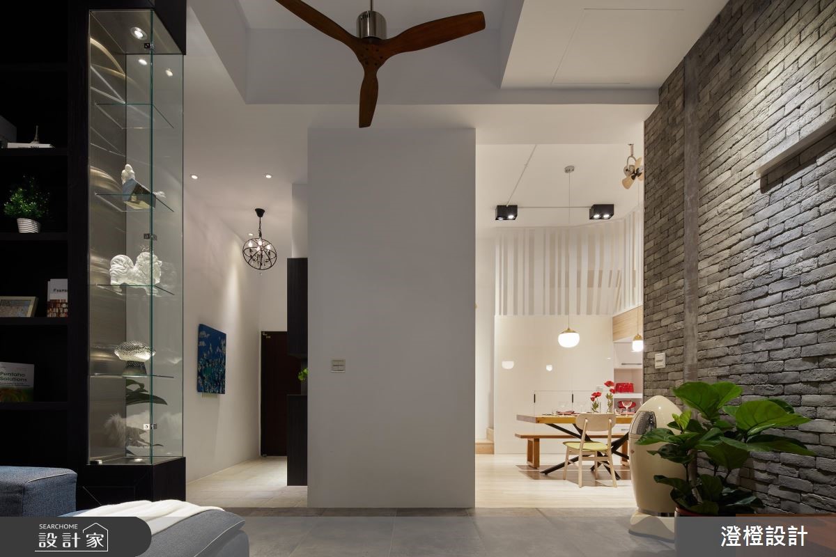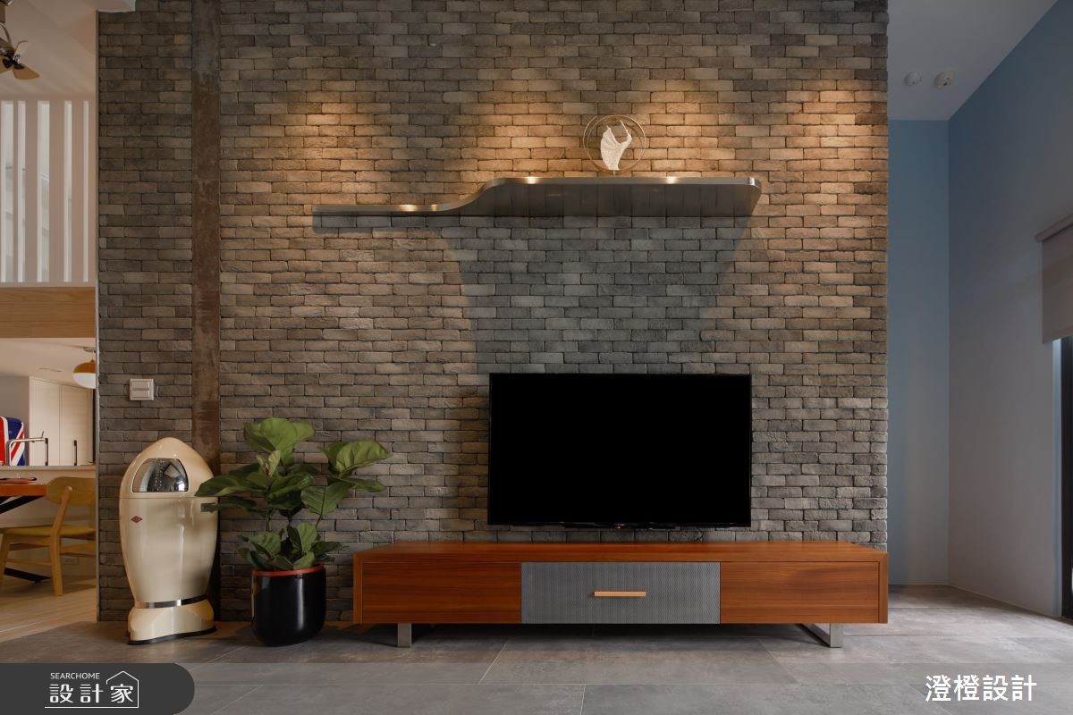 屋主是一对夫妻与一双可爱的女儿,设计师发挥巧思,网罗全家人的心愿,不仅挹注屋主指定的工业感,也规划出女主人想要的北欧厨房,除此之外,景观庭院、儿童游戏室等也一次包办。【男主人指定的恰到好处工业风】从玄关到客厅,设计师以灰阶为底,融入雅致的蓝,铺陈出略带冷调的都会质感,并以垂坠式的水晶灯妆点氛围,搭配木作轨道灯的框塑,增添整体的挑高感受,电视墙采以灰色文化石拼贴,带出犹如古堡般的意象,诠释男主人魅力十足的个性形象。【女主人要的不只是实用还有风格】餐厨领域,则是一个可让女主人尽情发挥所长的空间,结合清新不造作的北欧格调与实用机能,并于空间上方连结女儿的游戏室,运用线条格栅营造立体通透感,串起场域上下层的交流互动。【涂抹减压色调创造舒适风情】主卧则漆上橄榄绿,与户外绿意相互映衬,凝聚舒适的休寝氛围,同时妥善运用畸零空间,打造出机能充足的专属更衣室。而庭园则加入木栈板、绿色植栽并搭配户外家具,呈现浓厚的南洋风情。