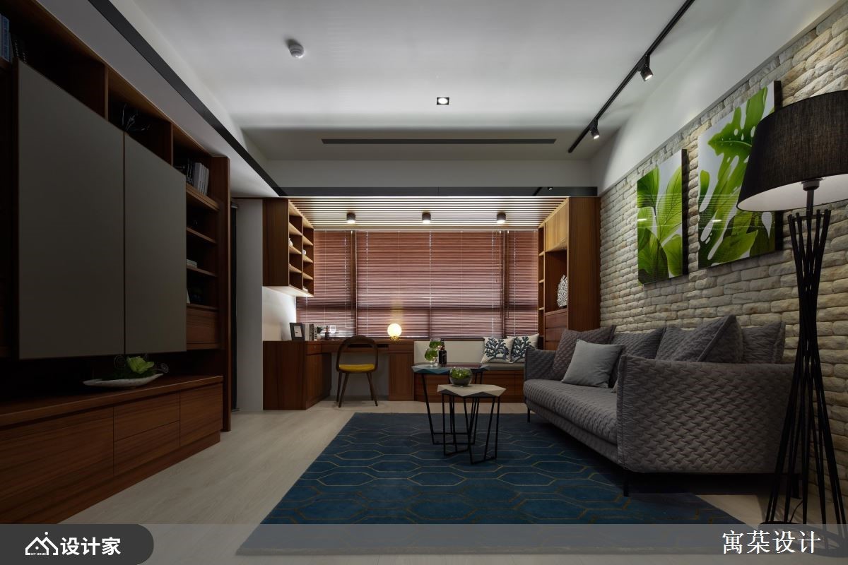 年轻夫妻与孩子在66平米空间展开新生活,期待能在忙碌的生活中拥有放松、纾压的居家,经由设计师评估屋案条件与屋主需求后,为一家三口打造休闲好宅。【克服狭小空间,打造收纳式餐桌】设计师善用采光与通风良好的居宅优势,以及建商提供的厨卫设备,为屋主达到减省预算的目的,并进一步克服餐厅狭小问题,结合可自由收放的柜体餐桌,不仅不影响使用动线,也达到视觉宽敞的开放设计。【利用材质特性,打造休闲气息】针对风格营造,利用实木皮、文化石以及灰阶色调,搭配海洋蓝地毯,打造悠闲自在的氛围。而私领域则延续公共空间调性,以灰阶墙面及绷布打造,更注入丰富的收纳机能,满足居住者的收纳需求。