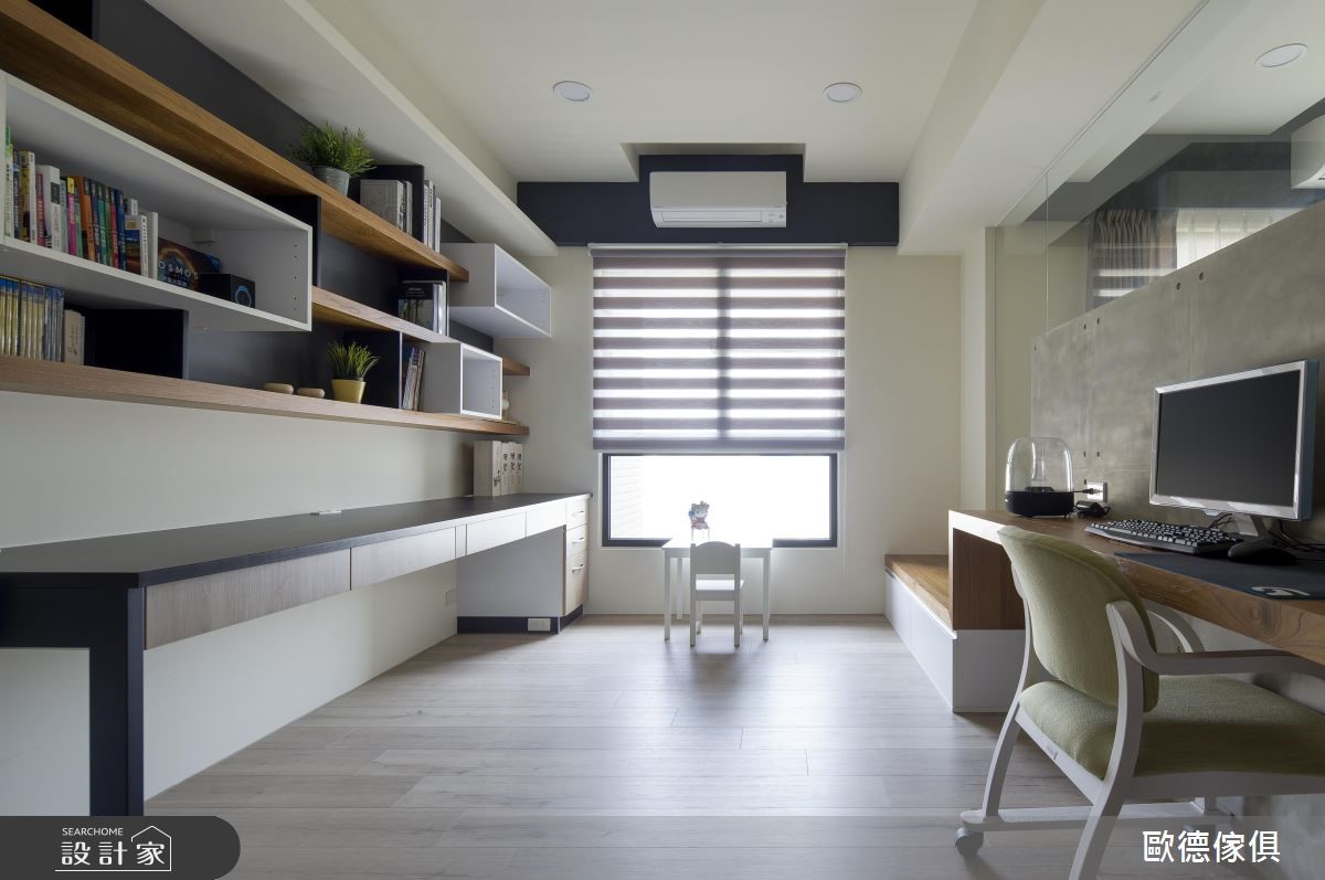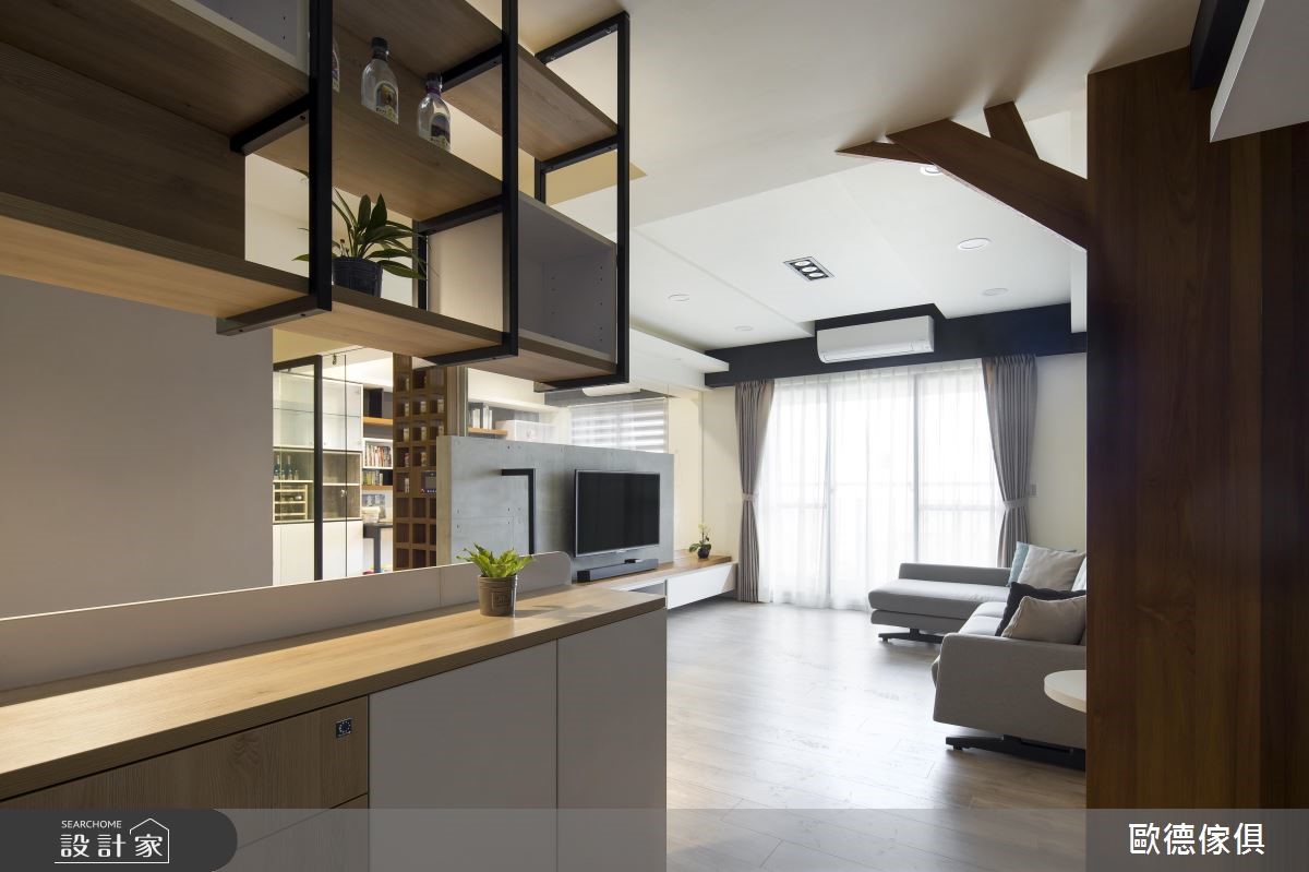屋主夫妻平时工作繁忙,将孩子交由住在外县市的祖父母照顾,但长期两地奔波,既不能好好陪伴孩子,又担心爸妈劳累,因此买下了邻近父母家的132平方米住宅,假日回家时就不必匆忙来去,能够好好陪伴孩子快乐成长!【运用系统柜,展示收纳一次满足】以Loft风定义的单层住宅,运用乐土营造出清水模般的简朴质感,搭配大量的木质元素,打造出属于小家庭的温馨感。格局配置上,以开放式设计搭配玻璃材质,创造空间的开阔度与通透感,宽敞的公共空间,方便夫妻两人照顾孩子,也是一家3口共享天伦之乐的舒适场域。电视墙后方的宽敞书房,不仅兼具工作、阅读以及飘窗休憩的功能性,也富含充足的收纳机能,同时设计师更善用零碎的空间角落,比如书房侧墙、房间飘窗、儿童房架高的木地板下方等,赋予大量的收纳设计,让坪效的使用得以提升,打造实用且舒适的小家庭空间。