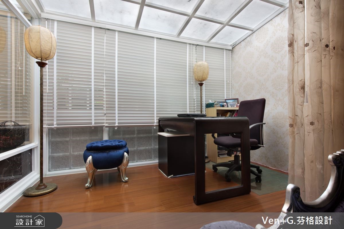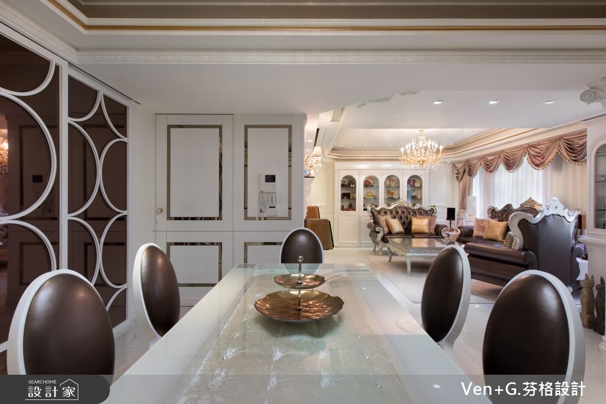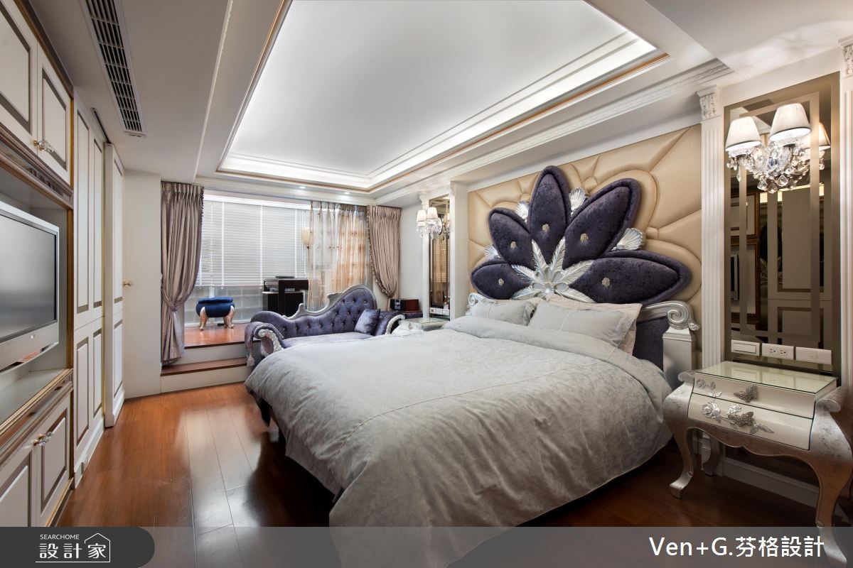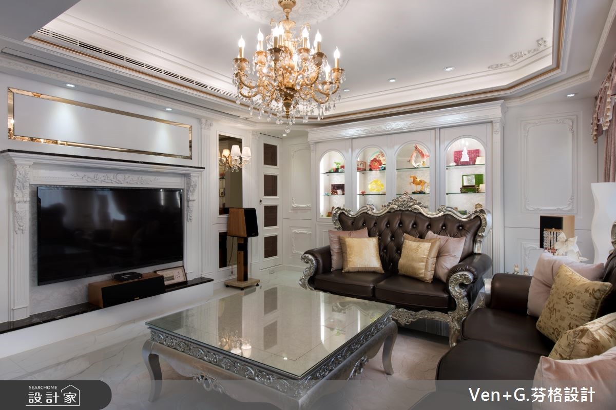 女屋主钟情于巴洛克新古典风情,而男屋主则坐拥大量的模型公仔,强调展示收纳机能,于是设计师将华丽元素结合童趣收藏,透过柜体、家具、装饰等恰到好处的分配,将二者需求融合,重塑老屋的新风貌。【独特收藏品,妆点居家特色】玄关区运用黑白色系,搭配镜柜与展示物,凝聚入门后的奢华印象,一旁则可见到犹如橱窗般的净透收纳柜,让收藏物成为空间焦点,引述着生活的趣味;公共领域藉由线板、家具、灯饰等框造如画的场景,同时让窗面结合风雅窗帘,在优美布艺中展现新古典的雍容大器。卧房内,融入浪漫紫色以及银色系家具,搭配雕花流线与鲜明独特的床头表情等,以大胆但不突兀的设计,诠释新古典特有的空间魅力;并于靠窗处做出架高地板,规划飘窗兼书房,充裕的窗光照拂,打造出专属个人的纾压阅读天地。