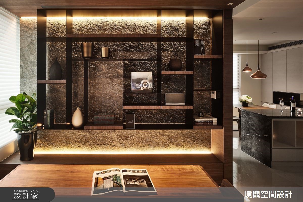 设计师在与本案屋主合作时,看见屋主性格中的内敛锋芒,以东汉文学家崔瑗座右铭"在涅贵不缁,暧暧内含光"为主题,打造充满人文气息的93平方米居宅。 【善用材质,营造空间的色感温度】为了彰显居宅本身宛如古代富有学养的儒士,设计师采用大量原味建材,揉合了木质的温度、金属的冷感以及石材的沉稳,打造看似质朴、自然却不失气度与质感。进入玄关,以大片镜面与沉稳的木皮门片,搭配有着流云花纹的石材地坪,创造深邃的廊道感。由大理石铺排而成的电视主墙,与散发蓝银光泽的云母石背墙相互呼应,绽放天然的纹理,搭配黄光更显刚柔并济。接续在客厅后方的开放式书房,拓增公领域的应用性。后方的开放式餐厨以纯白柜体与温润木皮搭配金属灯饰,创造了利落与温柔的冲突美感。主卧则巧妙安排动线,将更衣室隐于电视墙后方;同时利用绷布、木元素材质,为睡眠空间创造人文气息。