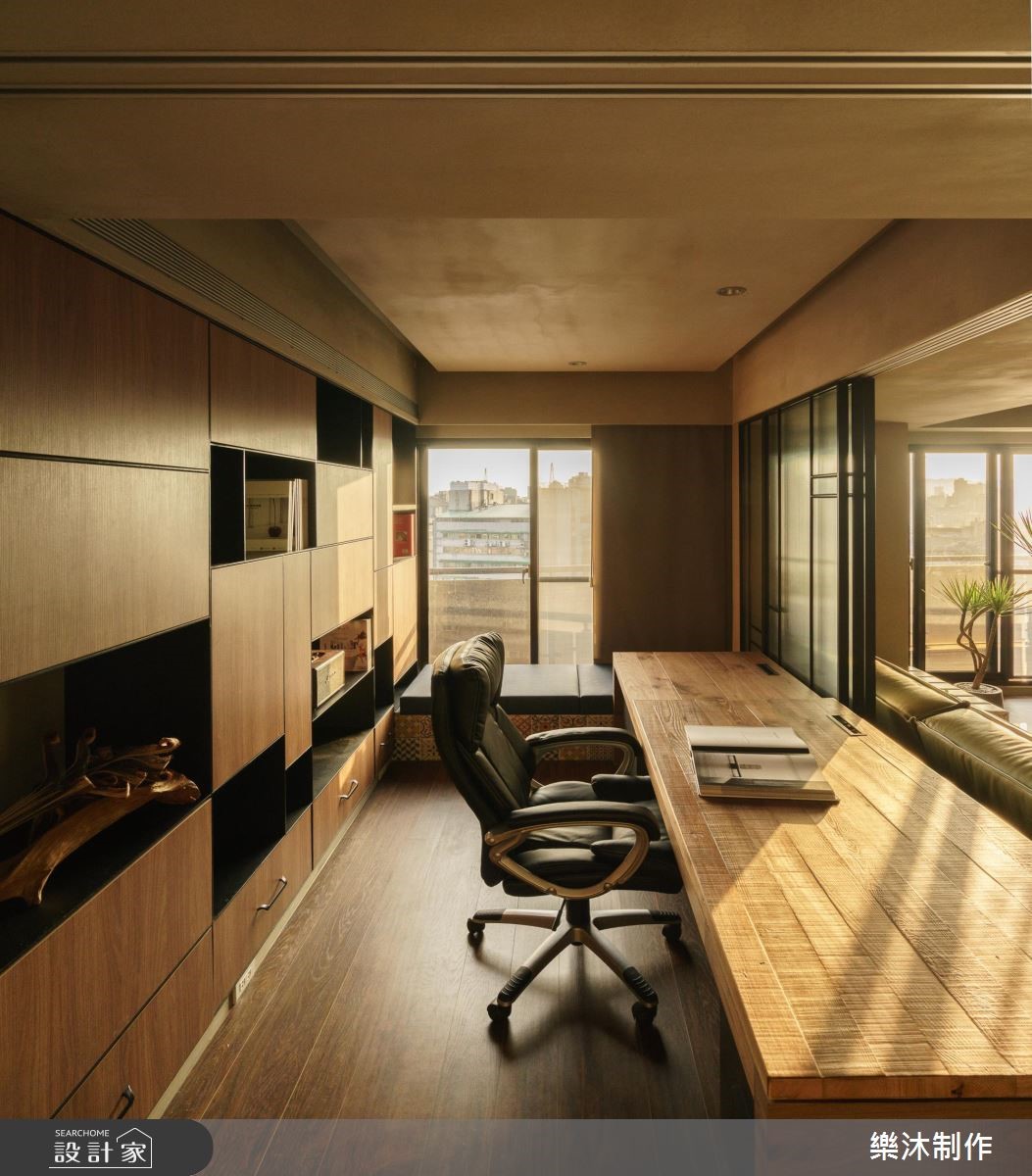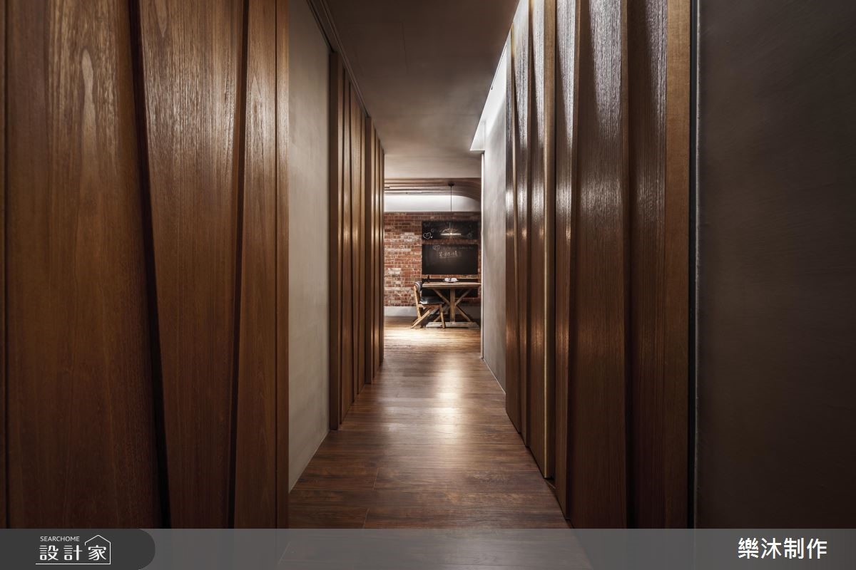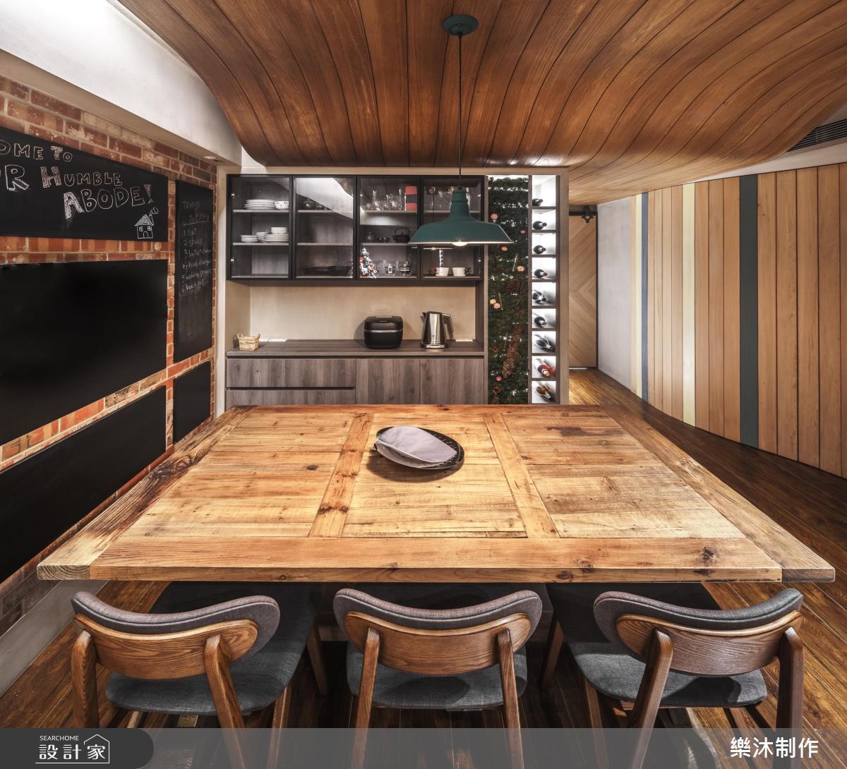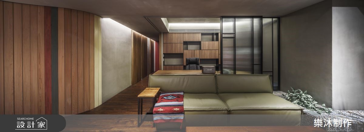 设计师于116平方米居宅内,透过光与木质的搭配,以及红砖等复古元素阐述岁月痕迹,加以北欧风的清新语汇,编织出充满温度的生活场景。【温润材质,营造有温度的空间】设计师运用木质板材拼接墙面风貌,并将房门穿插其中,打造流畅的动线脉络,天花板、地板则呼应墙面以木质作出延伸,且让木作天花从玄关蔓延至餐厅后,以质朴灰调天花衔接,搭配复古红砖的电视墙,藉由斑驳肌理、怀旧色调,隐喻美好的岁月痕迹。客厅与书房运用移动式的隔断拉门,让使用情境更弹性,敞开时,可创造整体的通透敞亮,紧闭时,即围塑出充满隐私的静谧领域;主卧区,床头采用开放式隔断,且让出部分柜体作为专属的公仔展示区,透过简易的柜面线条,让收藏化为视觉主角,趣味又具设计感。