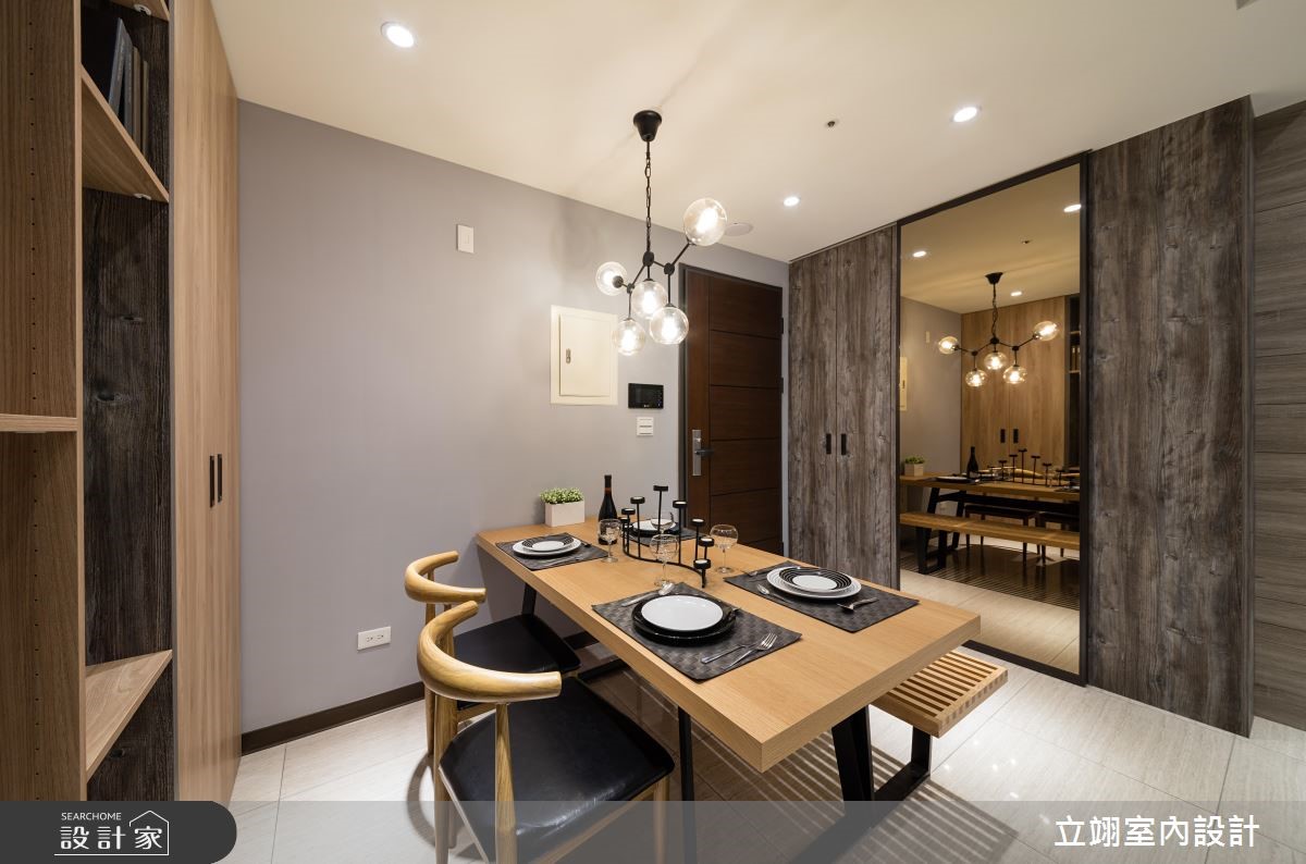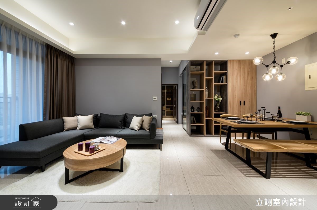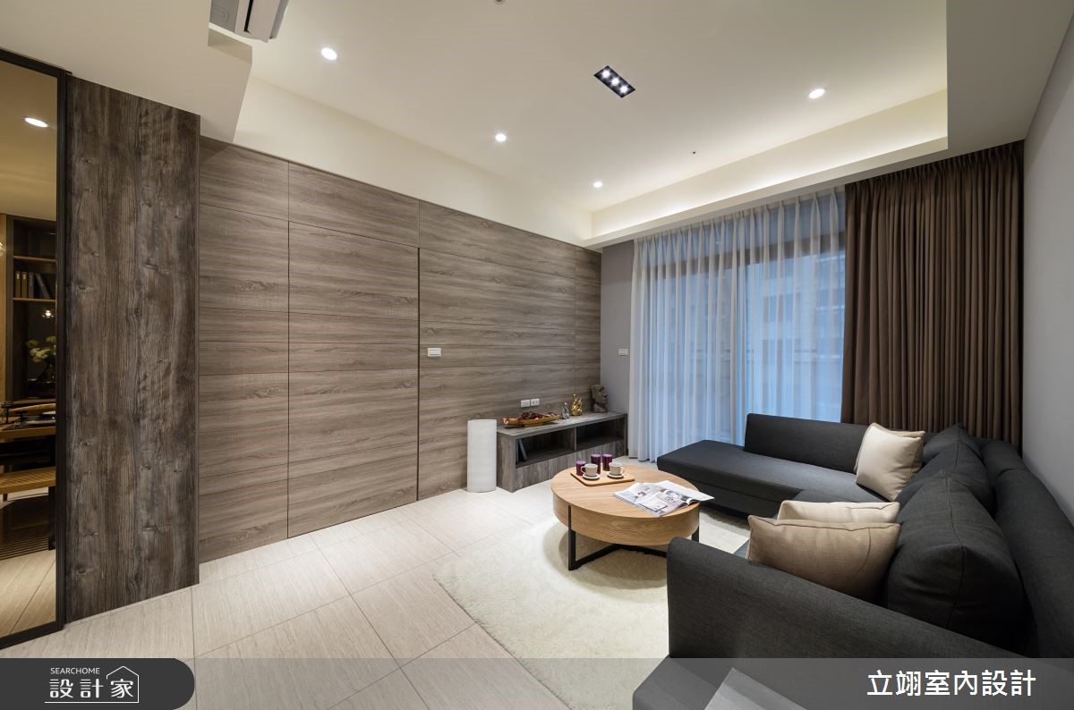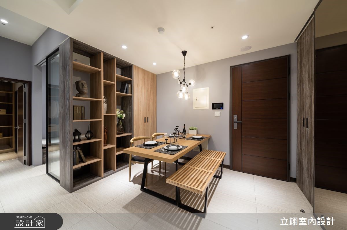 设计师为新建案量身打造实品屋,规划相当适合小家庭的116平方米3室2厅格局,在有限的预算中,成功彰显该案的采光、格局以及公、私领域应用。【温润木质,统一视觉更整洁】玄关以及顶收纳柜搭配镜面打造入门机能,与餐厅空间平行,一旁结合玻璃的木皮展示柜,不只拥有充足的收纳空间,更取代多功能书房的隔断墙,打造通透的视觉感受,降低空间浪费;公共领域墙面则以灰阶色搭配深浅不一的木皮色彩,散发简约沉稳却不显老气的风格。半开放的多功能书房内建飘窗,除了平日休闲更可充当客房,拓增小家庭空间机能;而在客厅、书房与卧房皆善用系统柜,除了让收纳机能更趋完整、视觉更加整洁,同时也能达到有效减省预算的目的。