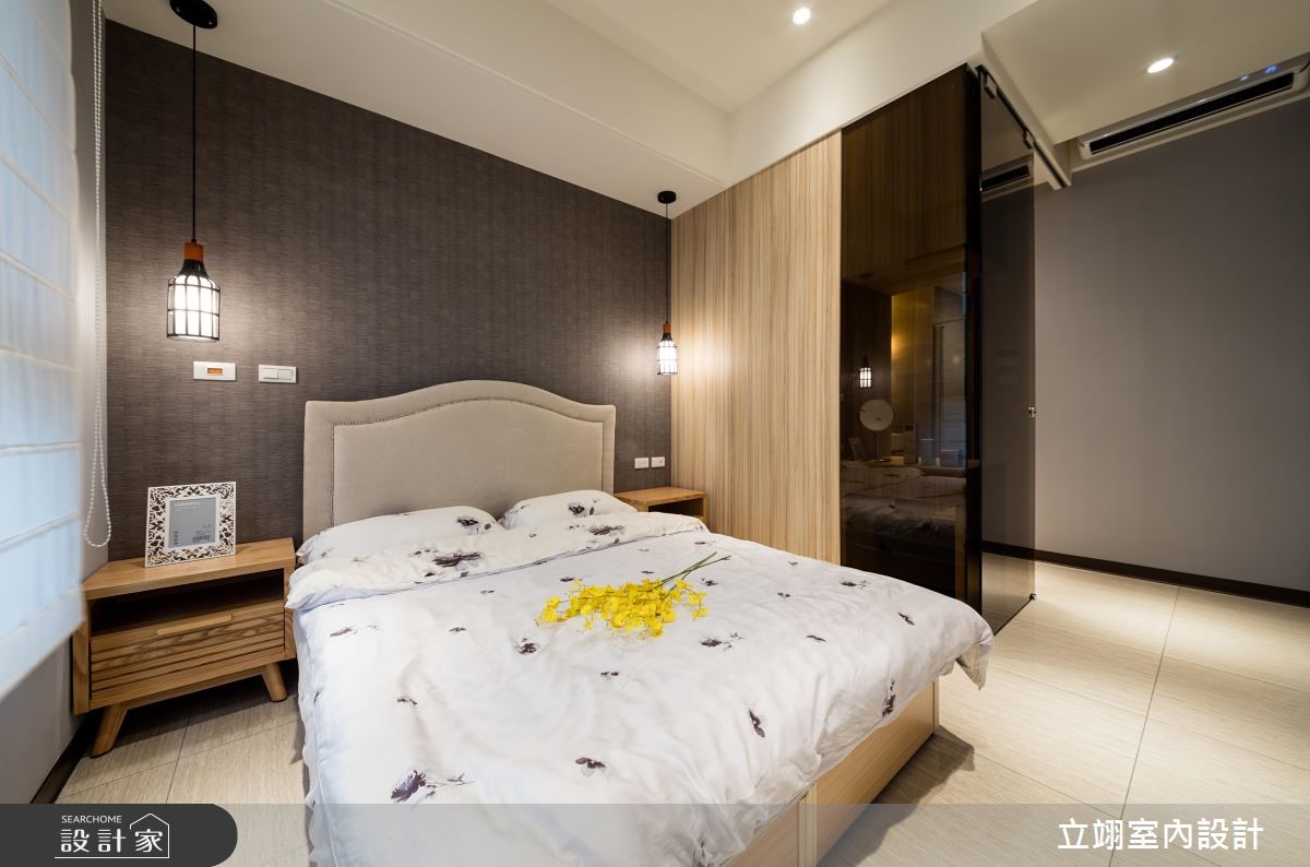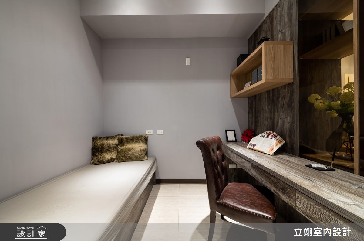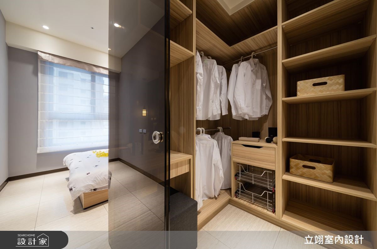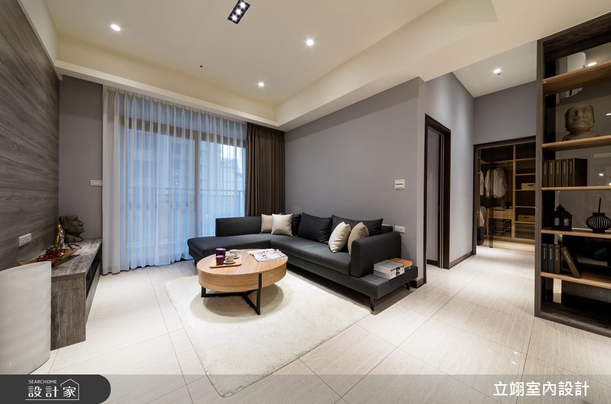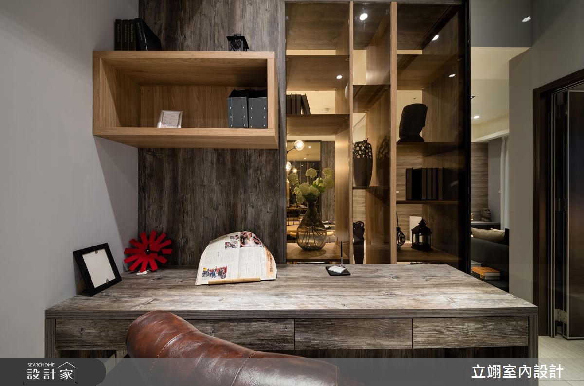 设计师为新建案量身打造实品屋,规划相当适合小家庭的116平方米3室2厅格局,在有限的预算中,成功彰显该案的采光、格局以及公、私领域应用。【温润木质,统一视觉更整洁】玄关以及顶收纳柜搭配镜面打造入门机能,与餐厅空间平行,一旁结合玻璃的木皮展示柜,不只拥有充足的收纳空间,更取代多功能书房的隔断墙,打造通透的视觉感受,降低空间浪费;公共领域墙面则以灰阶色搭配深浅不一的木皮色彩,散发简约沉稳却不显老气的风格。半开放的多功能书房内建飘窗,除了平日休闲更可充当客房,拓增小家庭空间机能;而在客厅、书房与卧房皆善用系统柜,除了让收纳机能更趋完整、视觉更加整洁,同时也能达到有效减省预算的目的。