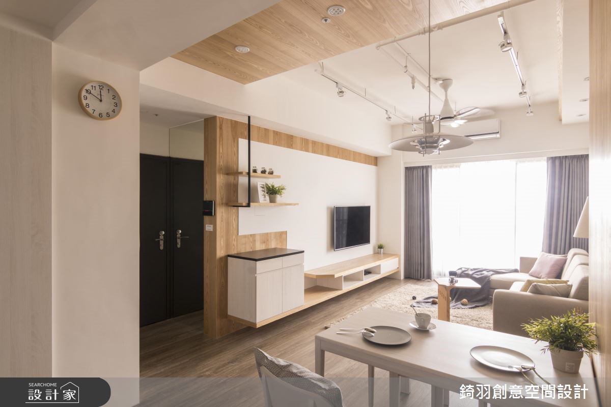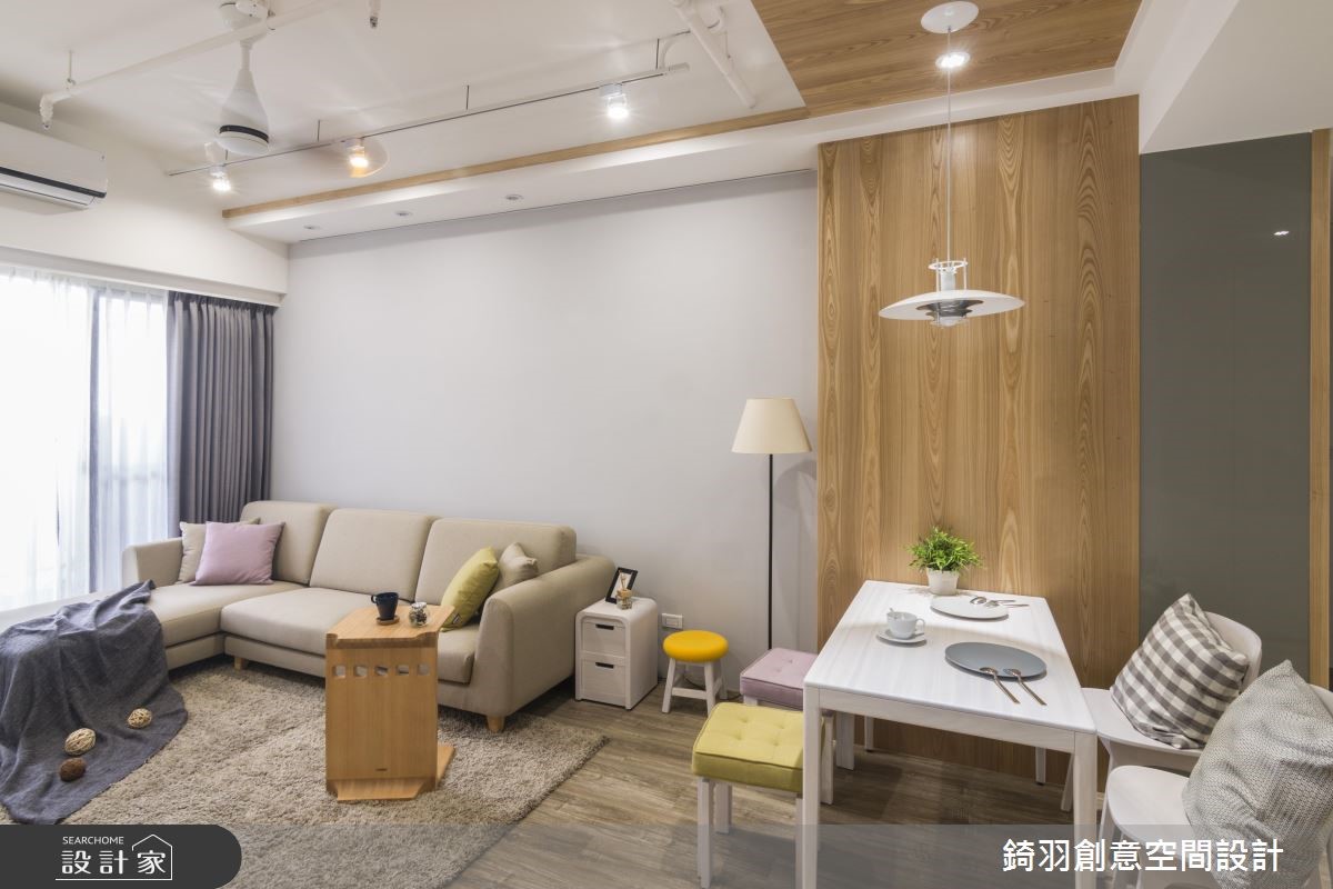 两个人的生活,不妨选择清新又带有温馨暖度的北欧风格吧!这间拥有83平方米的居所,设计师以大量的纯白和木质元素,为夫妻两人打造出舒适的居家空间,加上缤纷的家饰挑选,点缀出甜美和趣味感。【悬浮电视柜,结合收纳与展示】为了让空间更显放大,公共空间采用开放式设计,将客厅和餐厅安排在同一轴在线,大量的木质和纯白色调,则带来清新自然的生活氛围。电视墙延续一整面墙,拉开了整体空间的比例,藉由悬浮的设计,不但更好清洁,也能创造轻盈的视觉效果。餐厅区墙面与天花覆上温润木皮,成为区域之间的隐性界定,加上缤纷的坐垫和抱枕,增添了空间的活力感。卧室的设计以舒适为主,透过甜美柔和的色调铺陈,更有纾压疗愈的感受。