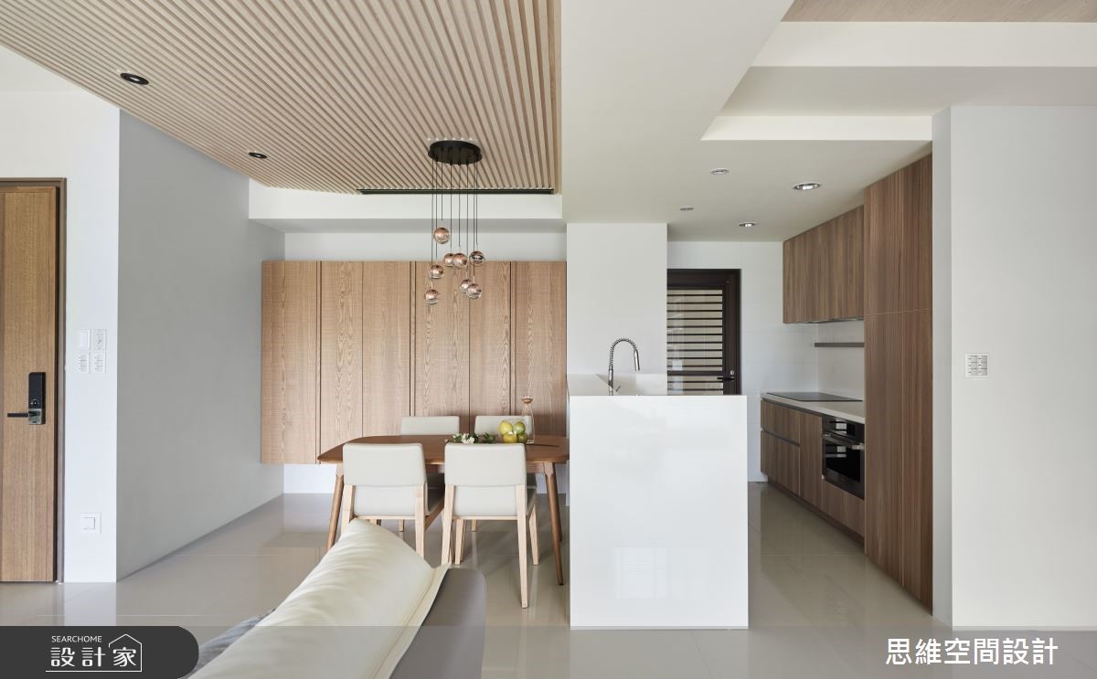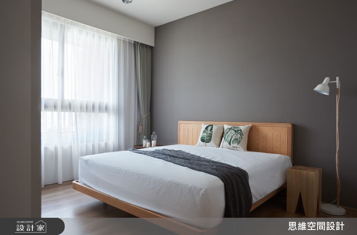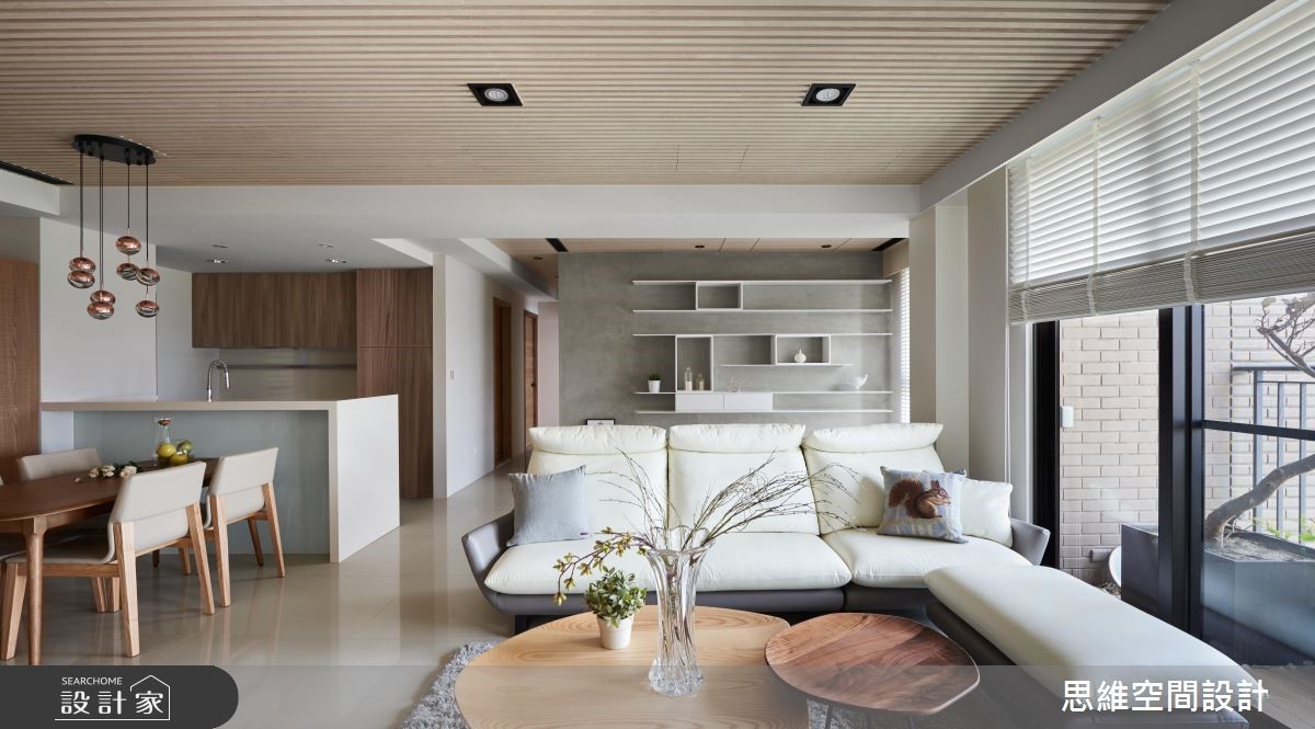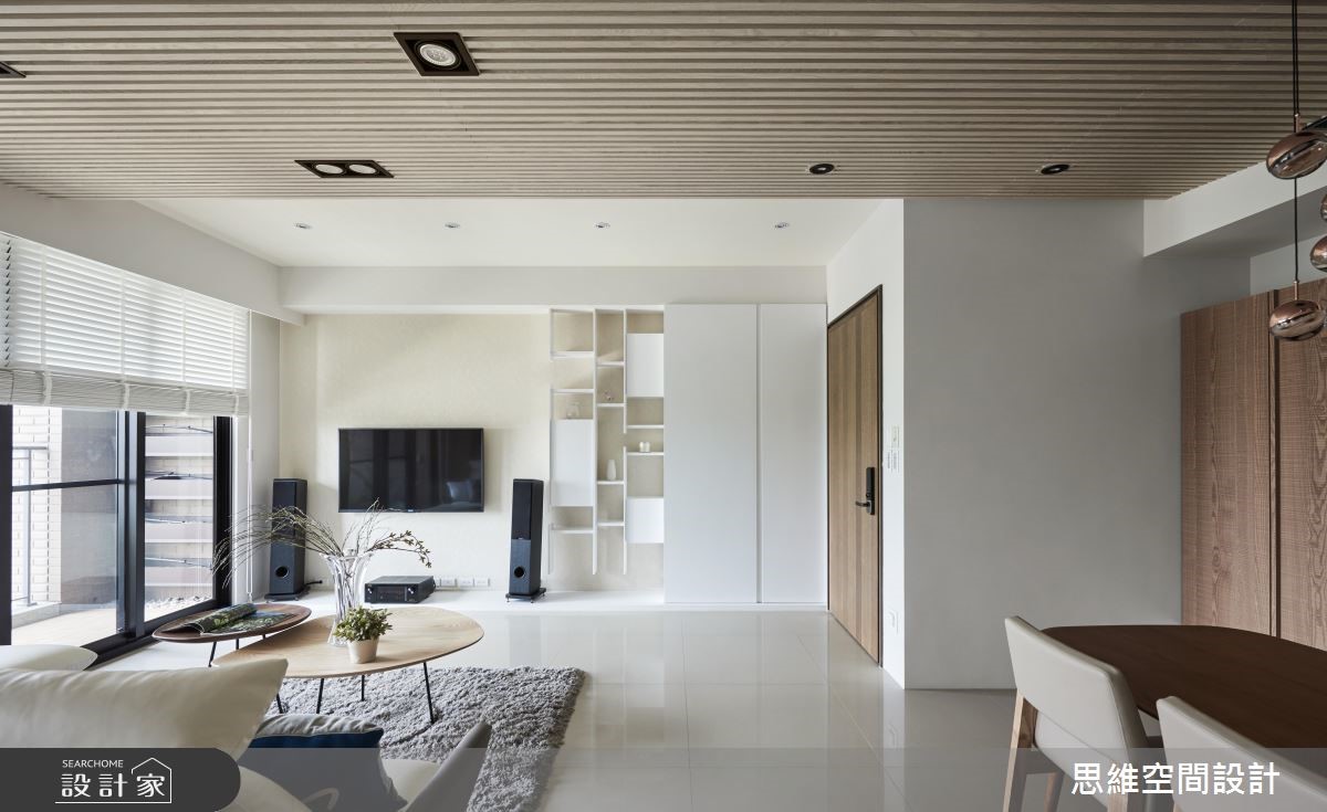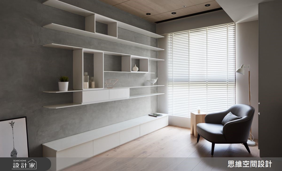 由于空间预设为一家人度假用的休闲宅邸,在整体设定上,设计师采以轻简的现代风结合日式元素,并简化一切收纳柜体陈设。同时将其中一间居室改为开放式书房,促使空间尽可能地开阔、敞亮,体现清爽的生活场景。 【疗愈木质,温暖灰白空间】公领域呈现延展开放的视野,于天花板妆点木作格栅,运用线条串起客厅、餐厅,达到视觉延伸效果,型塑扩大的空间感。客厅则以灰、白色为基调,辅以木质的点缀,让氛围更显温润。并藉由窗户延伸室内眼界,将窗外的翠绿导引入内,凝聚鲜明生动的意象。开放式的书房则没有过多设计,采用木地坪做为不同空间的气氛转换。并以乐土涂料铺陈质朴的墙面背景,再搭构白色的隔板组合,与电视墙的悬空展示柜产生无形呼应。在轻薄不压迫的流线之中,带出轻盈表情。