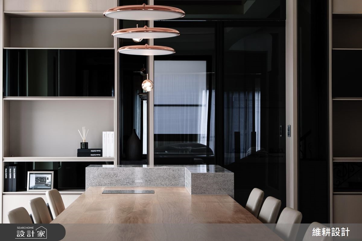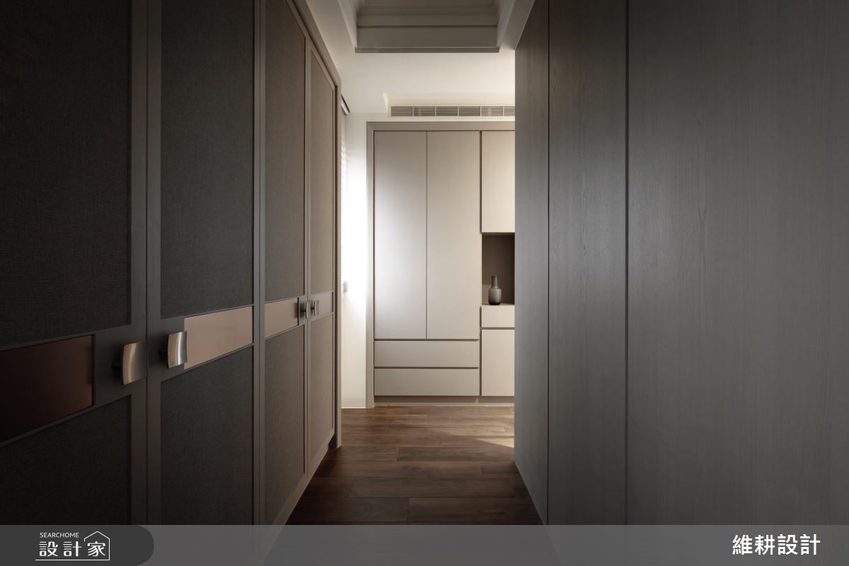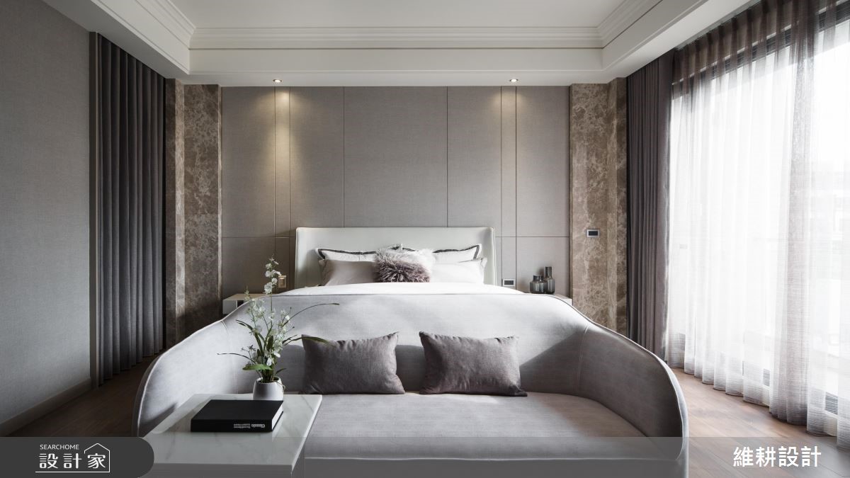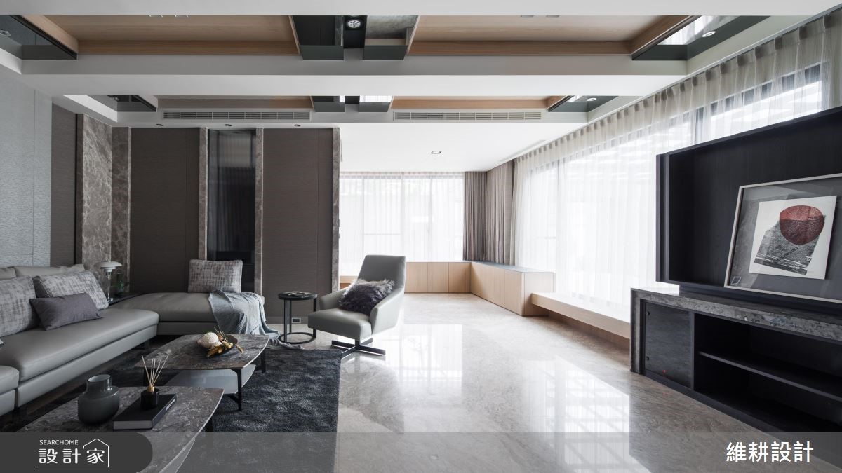595平方米的别墅,设计师以简约线条搭配中性色彩、天然建材,营造大器敞朗的氛围,并依循场域的主题营造多样化情境,打造出机能、质感均备的气派宅邸。【以日光与线条,串联空间视觉感】厅区运用造型天花显现不凡气韵,透过延伸的线条框出方正而工整的格局架构,周遭则给予丰富的壁材表现,采用木皮、石材等天然质材作拼凑衔接,搭佐细致线条凸显墙面的立体视感,并沿着窗面规划柜体与飘窗,不仅促成另一处休憩场域,更形成隐约的动线指引。书房藉著百叶窗注入光线,搭配整面简洁自然的深灰石材,与若隐若现的窗外绿意相互呼应,让室内充满自然气息,有如一幅雅致的山水泼墨画!卧房则依循使用者的个性,酝酿不同的空间风貌,除了舒适与机能性,更透过建材配置,打造如同酒店般的尊荣大器!