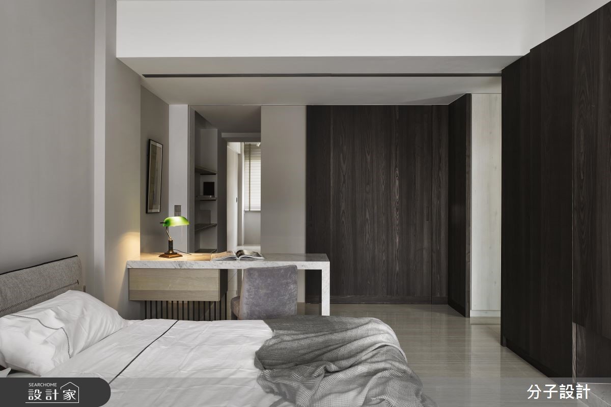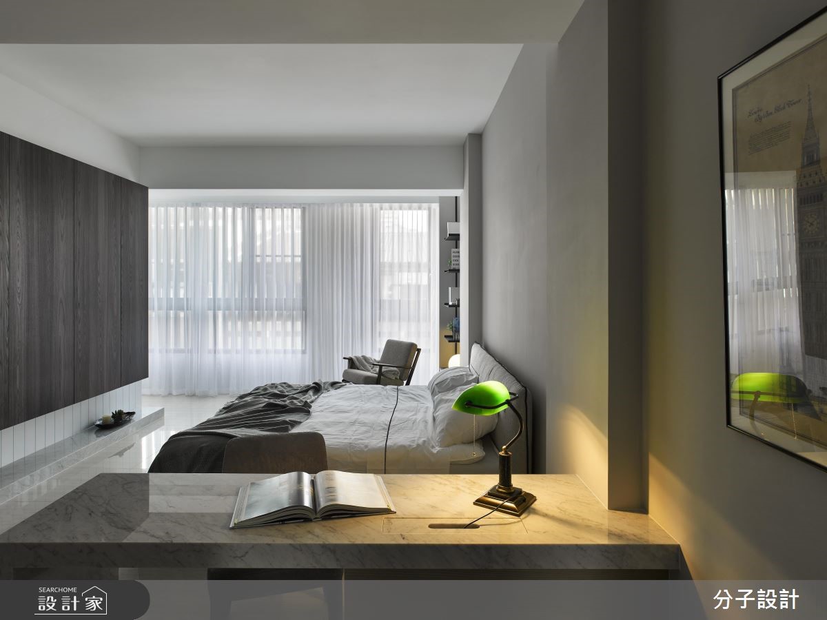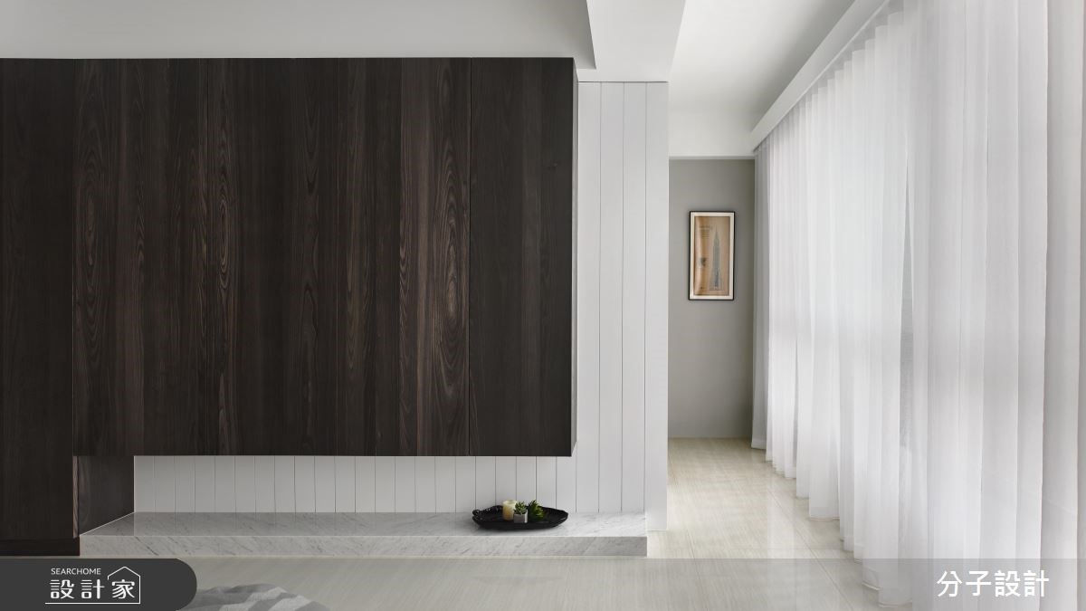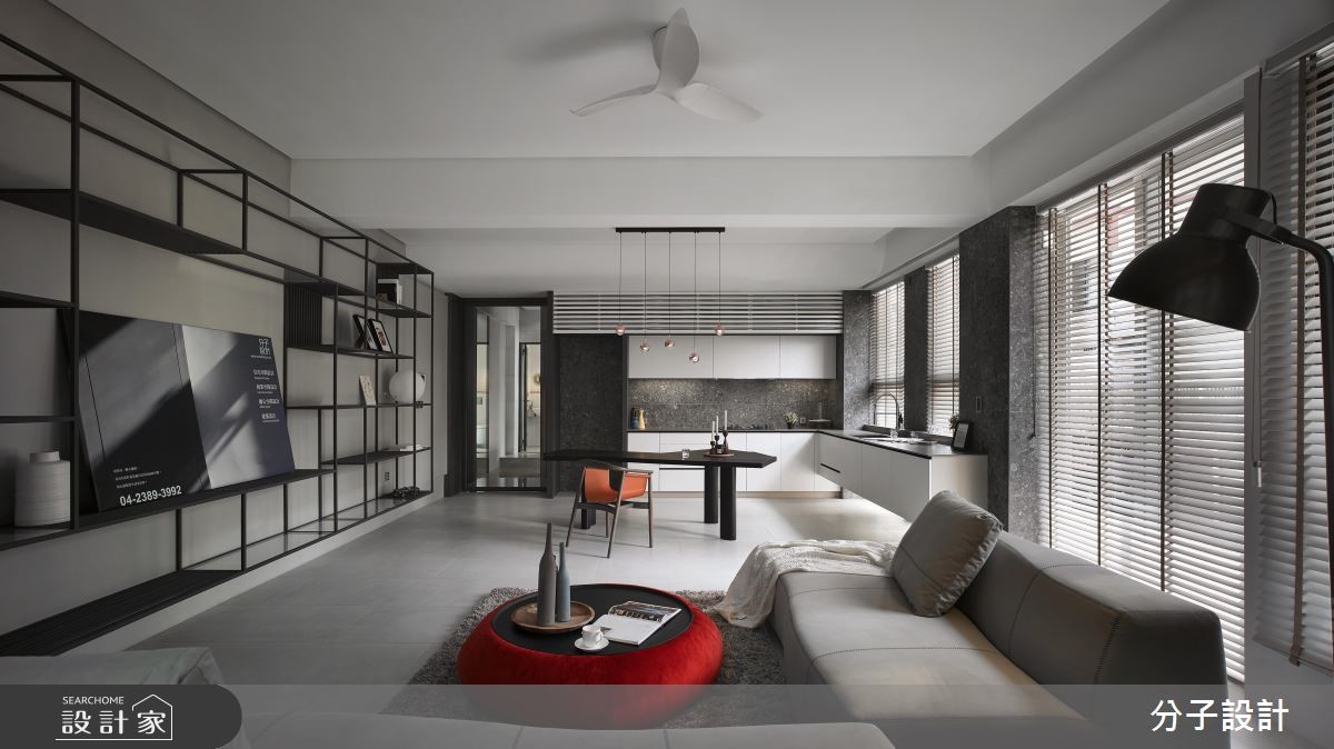 165平方米的独栋别墅,建物原始现况较为狭长,使屋型显得狭隘不透气,于是设计师安排厨房、餐桌、客厅三者的平行关系,凝聚前、中、后的空间呼应,并透过色调及软件的合宜分布,展现居宅的深度层次。【窗面与灰白色调,奠定清冷基调】设计师运用窗面导引明亮氛围,并挹注灰色、白色等底调铺叙,在天然质感和纹理之中,奠定空间的清冷基质,电视墙则呈现延伸尺度,采用方管铁件贯穿架构,营造视觉上的轻盈质量,并于客厅陈列红色软件,恰如其分地网罗焦点,形成整体之中的灵魂要角。【木纹柜体,实用与好看兼具】卧室采以浅色大理石建构桌台,简易通透地界定出个别区域,且藉由深色木纹带出质朴风韵,而大面积的柜体安排,除了满足收纳需求,也预留未来增加电视机的可能性;客厕选用浅色瓷砖,再配置可透光的铁件门片,既保有隐私功能,也适度引渡光线、维持清透感。