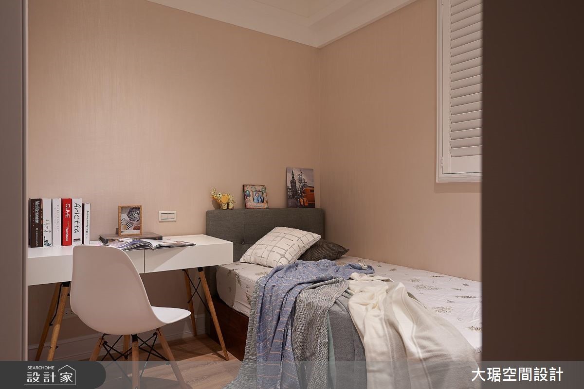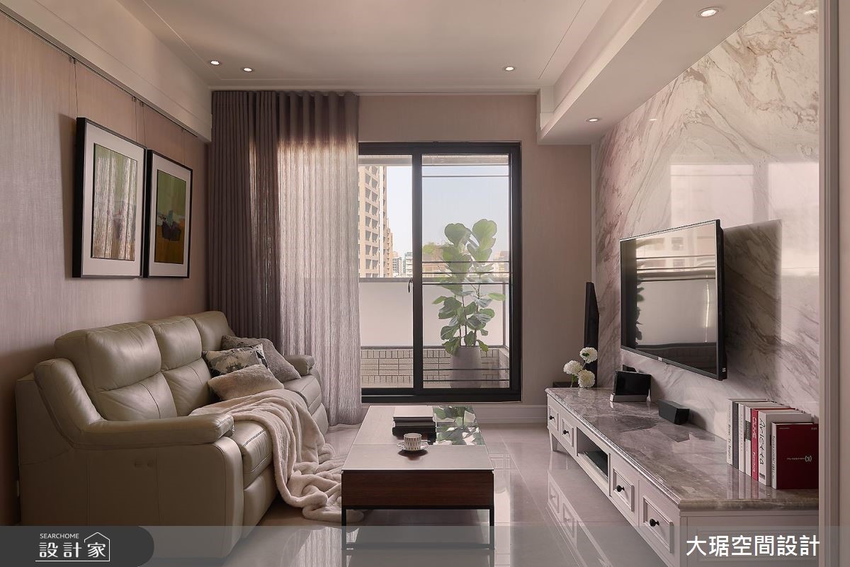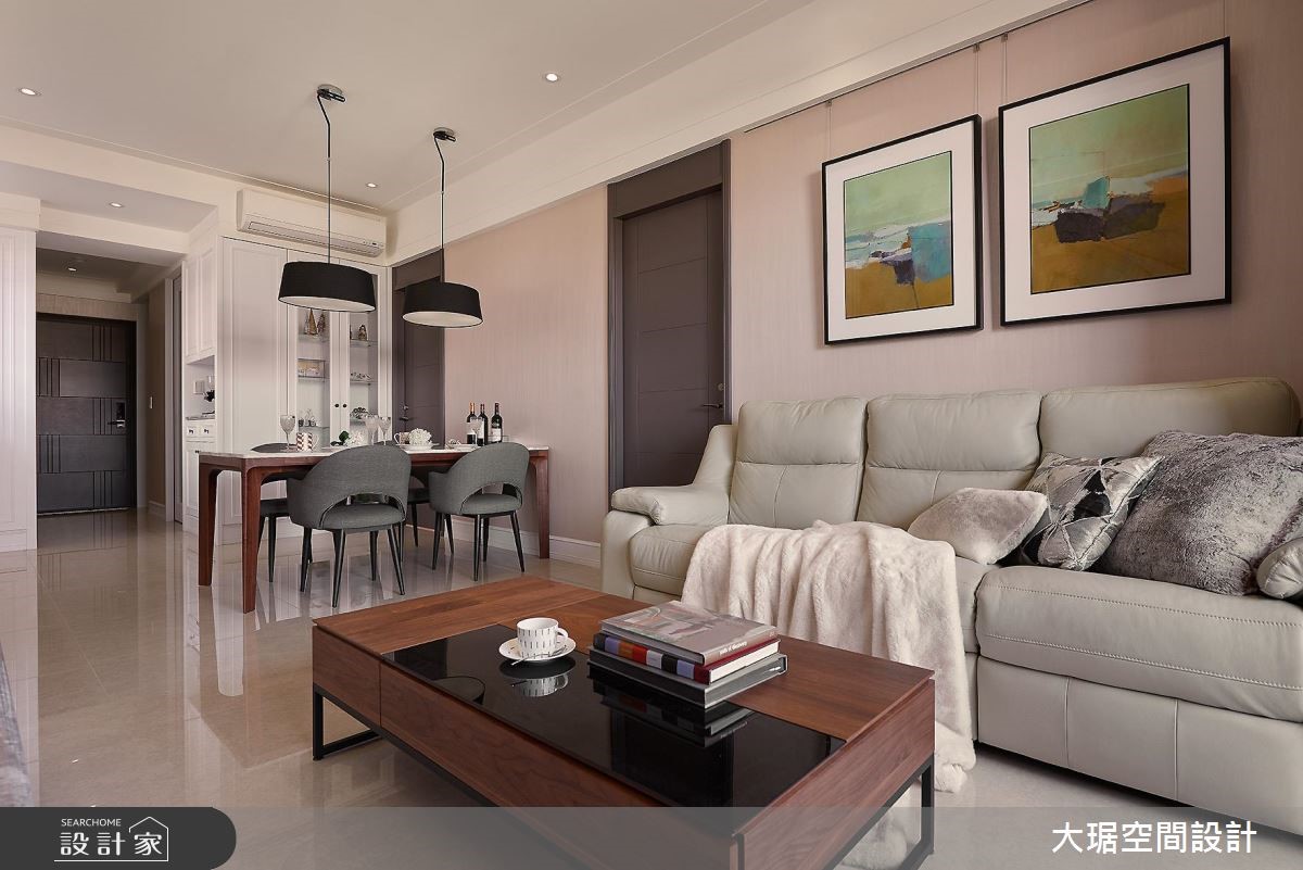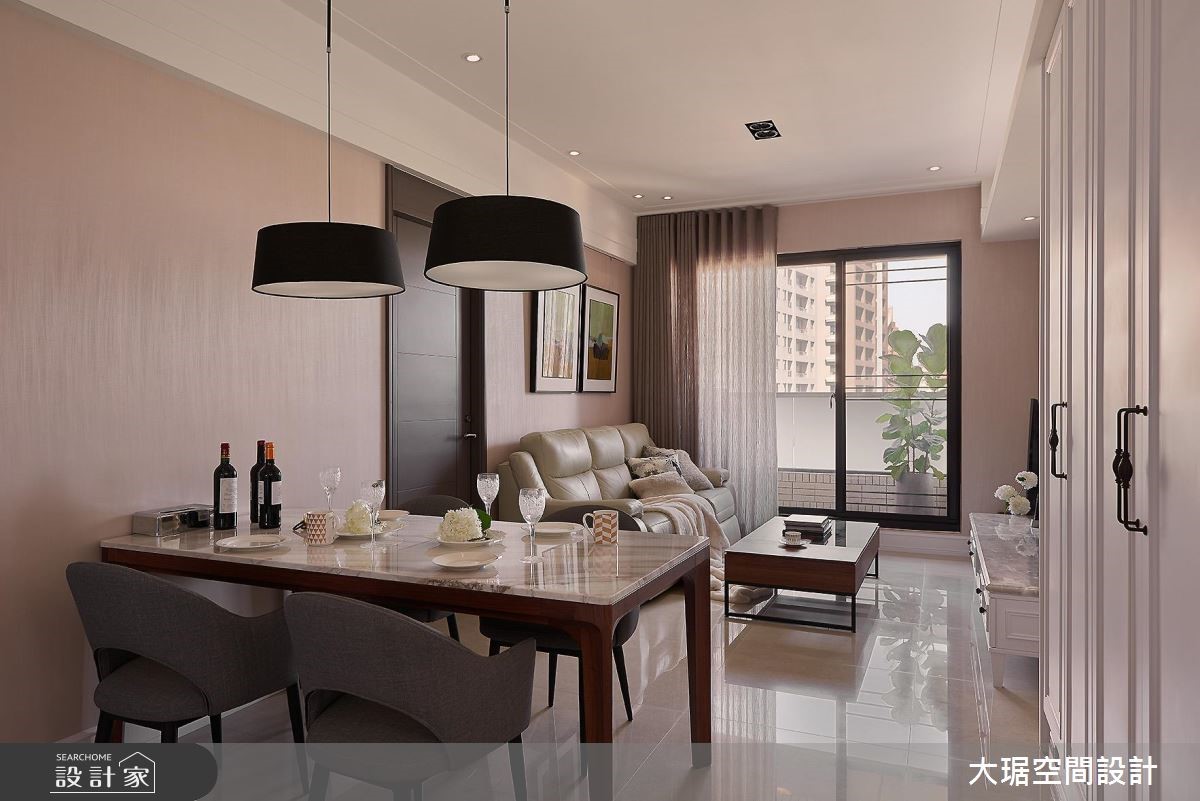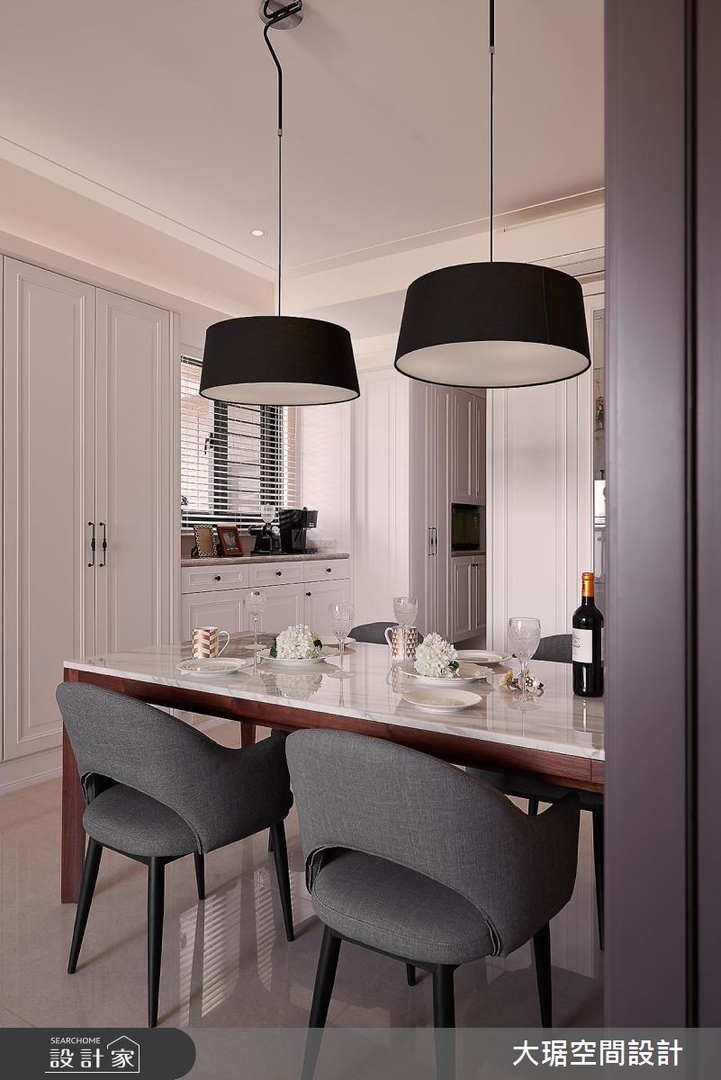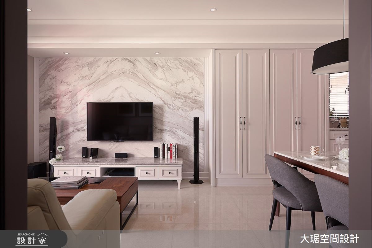 大量的白色做基底,以新古典风为创作灵感,藉由干净、简约的线条描绘,融入现代风情后,一扫过分华丽的繁复细节,伴随明亮日光的洗礼,让空间里的美学元素熠熠发亮。【融合简约,简洁明快的新古典风】推开大门来到玄关,两侧以白色线板的造型门片打造鞋柜,并衔接起室内的收纳机能,靠近玄关左右两侧的柜体结合展示平台,让屋主可陈列收藏或旅行时带回来的风格对象,酝酿人文美学的迎宾氛围。另外,呈现自然纹理的大理石材成为电视主墙,呼应新古典的非凡气势,而从阳台隐约透露的绿意生气延伸至公领域,融入自然生命力,软化讲究对称、比例的装修工法。淡褐色的背景墙面,从客厅沙发延伸到餐厅领域,中间经过咖啡色系的卧室门扇,以渐层的大地色系铺陈,再搭佐风格画作,添入温润的空间氛围,餐厅区再搭配黑色吊灯,替纯白的室内基底,创造丰富的生活风貌。