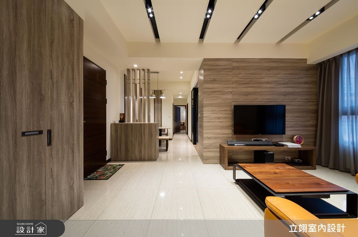 129平方米的住宅,设计师保留偌大的公共领域,塑造充满交流的互动空间,并统一木皮色纹,透过温润无负担的木质调连贯全场,在兼具收纳机能之余,也创造舒适的居住体验。【跳色家具,点缀出空间特色】入门处,设计师规划木作镂空格栅,既能与餐区做出区隔,也塑造出通透的视觉感受,公共领域则在长型格局下,以廊道划出延伸动线,且保留大面积留白,塑造敞朗开放的布局,使空间视野轻盈不局限,更运用相同的淡雅木皮,串起居家各个领域。设计师以俐落的系统柜,解决生活中的各项收纳需求,而鲜艳的黄色皮沙发,则在文化石背景的烘托下,营造生动活泼的场景;居室内,于床头加入特殊质纹,形成有如泼墨山水画的墙面表情,搭配不加修饰的木作家具,乘载着实用机能,充分表达清新不造作的居住主张。