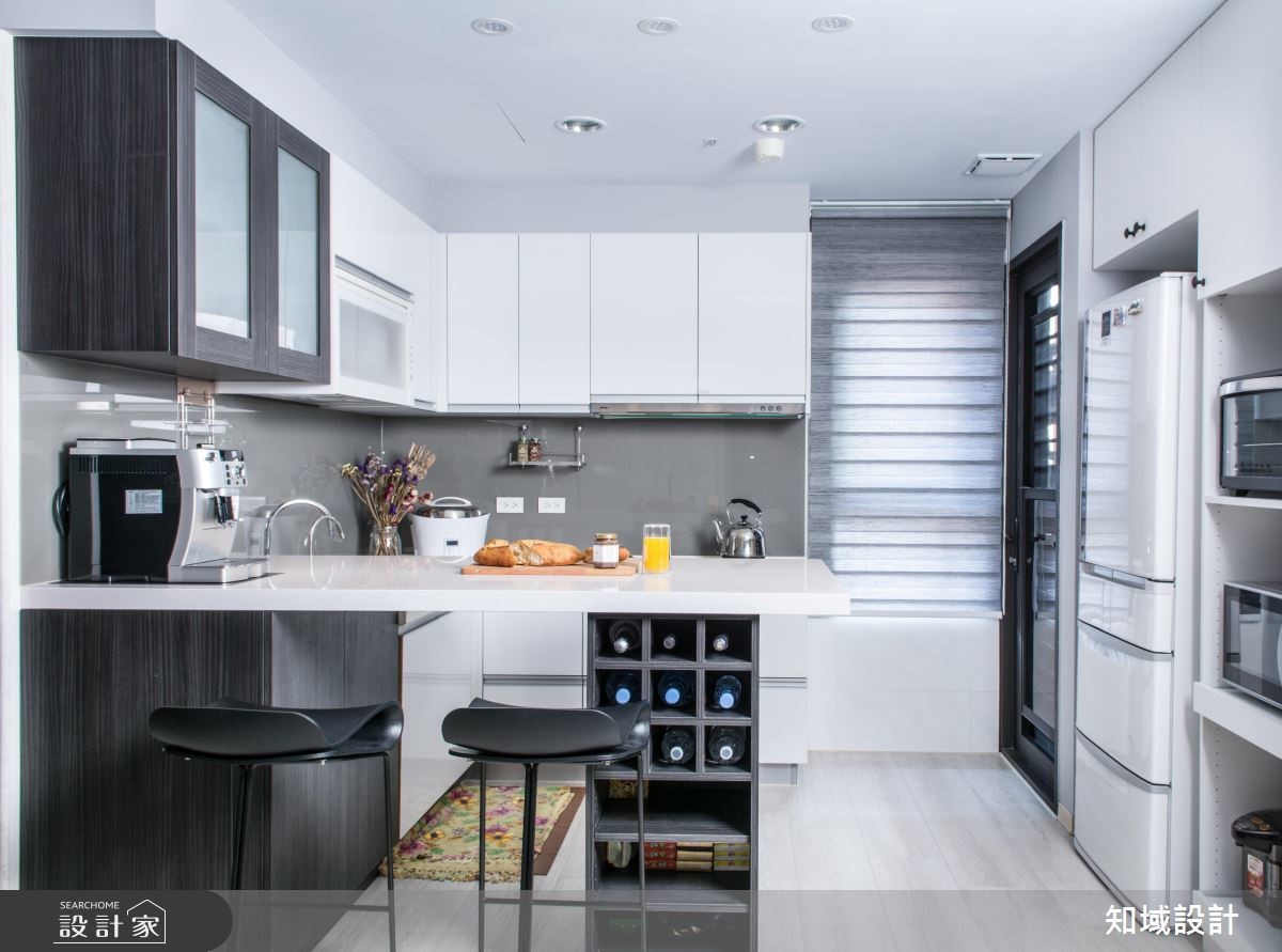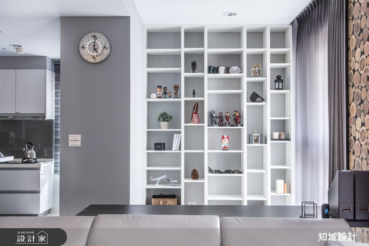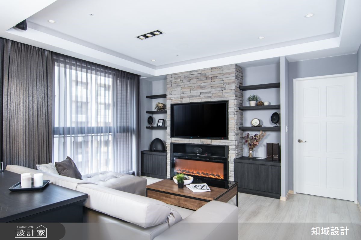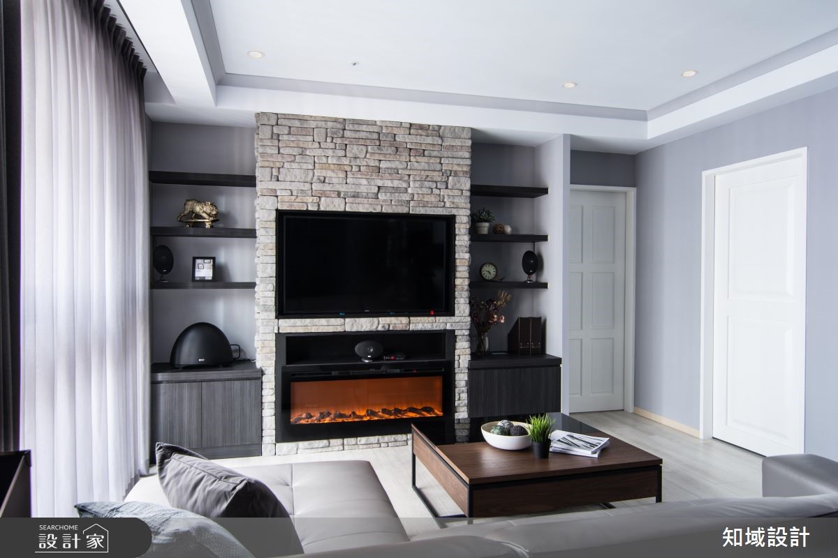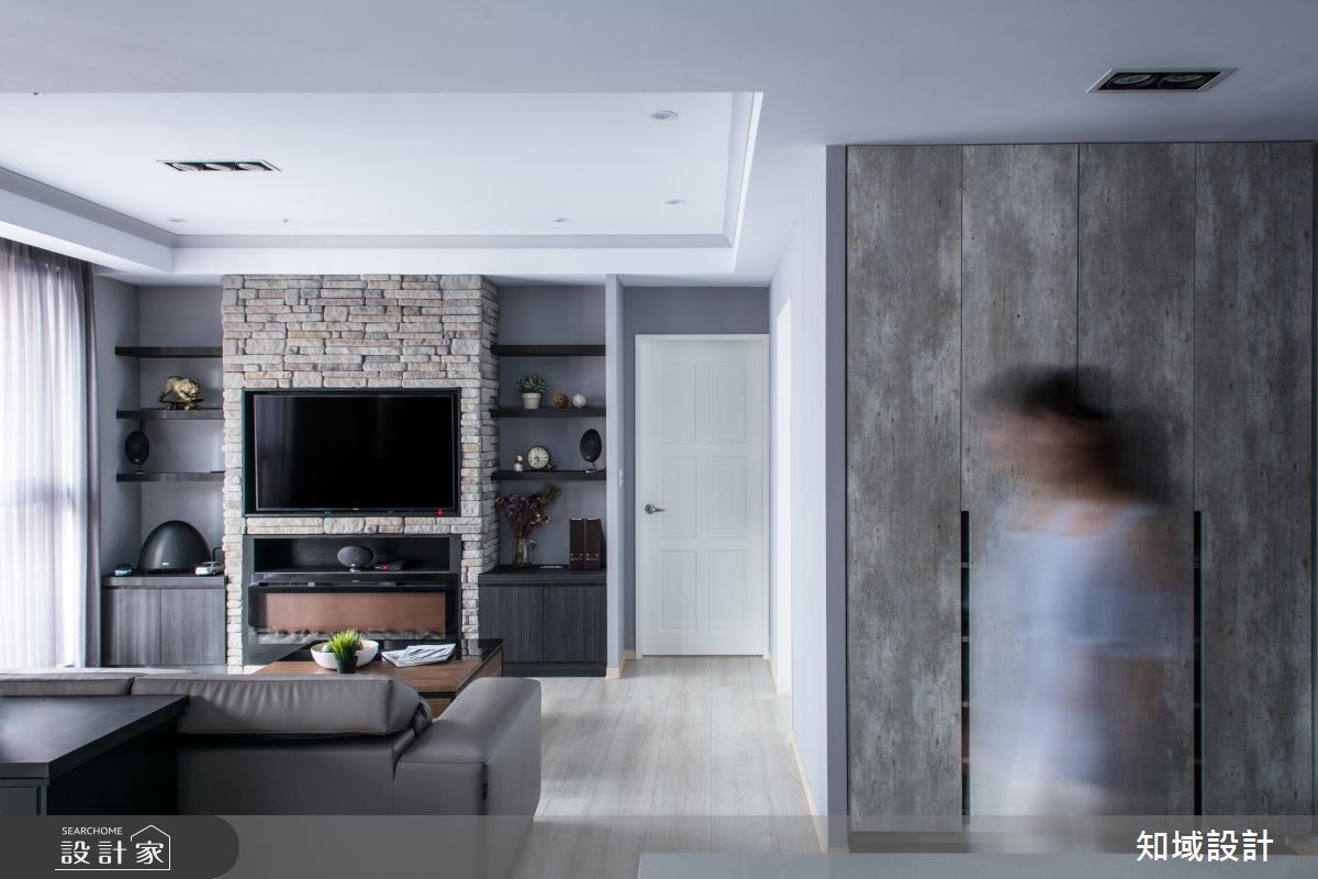 新婚夫妻搬进89平方米的新家展开新生活,除了书房需求,也希望能拥有附中岛的完整厨房机能,因此设计师依照屋主期望,规划完整的动线与收纳机能,打造简约、舒适的居家空间。【跳色壁面,营造个性化空间】公共领域墙面以淡雅的蓝灰色涂刷,将带有复古气息的粗犷文化石电视墙衬托得更加突出,并结合壁炉与展示收纳机能;后方则设置开放式书房,搭配大面积纯白格状展示架,成为知性唯美的装饰风景。餐厨区以L型开放式厨房与中岛吧台结合取代餐桌,并利用右方电器柜满足家电的收纳需求,让烹饪动线更加紧密流畅;而主卧色调则以沉稳的大地色系为主轴,并打造收纳量充足的更衣间。