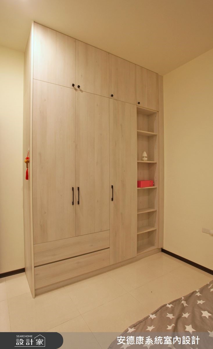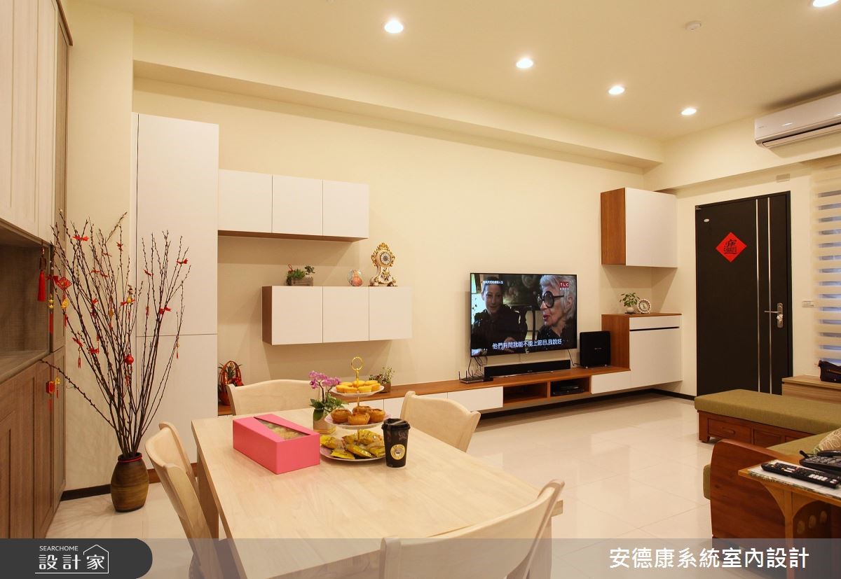 屋主一家人展现亲切、热情的活力,也感染了设计师的心,创造出充满温馨感的氛围。开放格局的室内空间利用简约、干净的风格引领,展现居家宽敞无压的气度;再加上自然质感的木纹肌理,以及深浅色系的配搭手法,在平淡无华之中,增添渐层美感。 【深浅木纹搭配,注入自然氛围】考虑到屋主假日闲暇之余,经常有家庭聚会或好友拜访,把方便整理、容易维持整齐当做室内设计的重点,特别利用系统柜加强收纳机能,营造舒适自在的互动空间,并透过错落有致的柜体高度,替电视墙增添活泼度。为了创造出自然的生活气息,透过大量木纹板材的铺陈,搭以弹性的活动家具,调和出惬意的居家氛围。客厅的窗边设置一座飘窗,可欣赏户外庭院的景致,也能扩充客厅的座位数量。利用大梁下的畸零空间设置整排餐边柜,满足餐厅区的收纳需求。