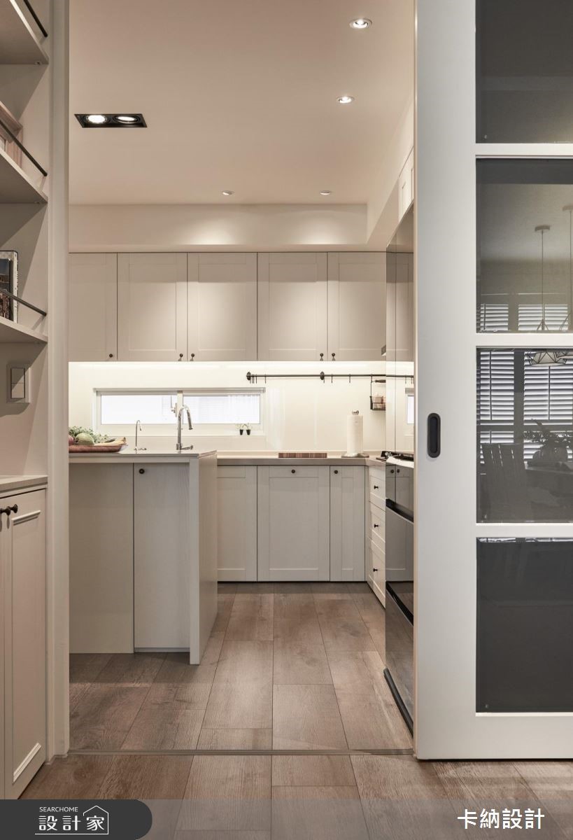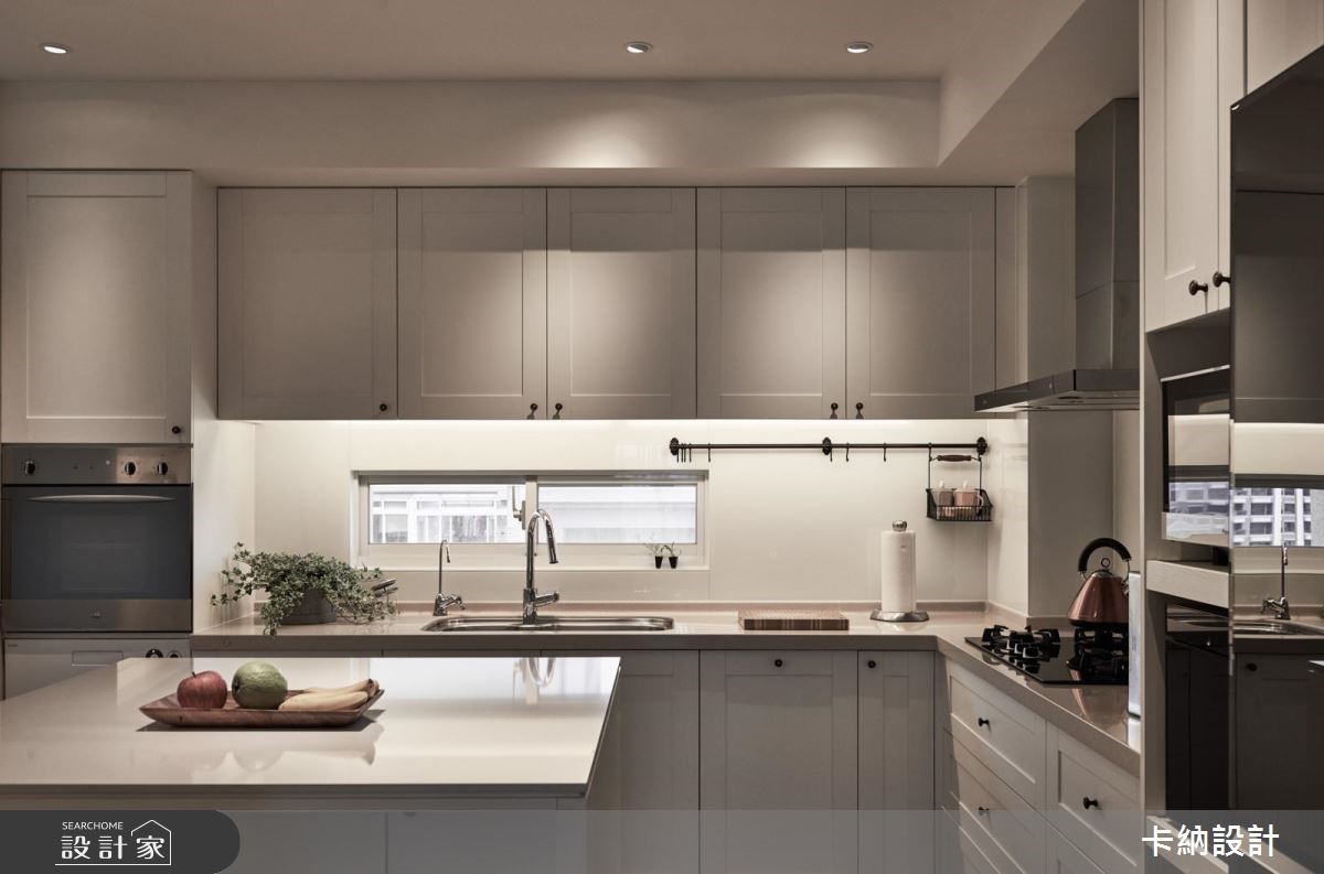 10多年的二手房,设计师除了改善动线,缔造更为开阔的空间视野,更以正统的美式风格为基底,简约不繁复的设计线条,融合现代感的纯净特质,创造出干净舒适的空间风范,快跟着小编一起来看看吧! 【简化美式线条,勾勒清爽视觉】设计师规划玄关廊道,不仅配置整面鞋柜满足机能使用,更透过弯转的动线做出视线保留,创造入室后的开阔视野。在进入公领域后,则可见客厅、书房之间的开放格局,书房陈列可弹性加长的伸缩桌,搭配一整道美式收纳柜,满足多重的机能运用。而整体空间以美式常用的米白色调铺陈,同时纳入细致铁件线条,更显黑白对比的清爽。原本单调的U字厨房,则加入中岛设计,采用简约质朴的色调,让厨房兼具现代与美式风的随兴特质,围塑出清爽的料理氛围。