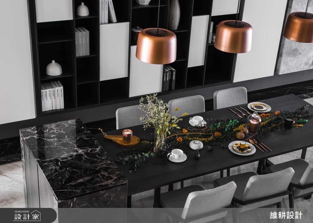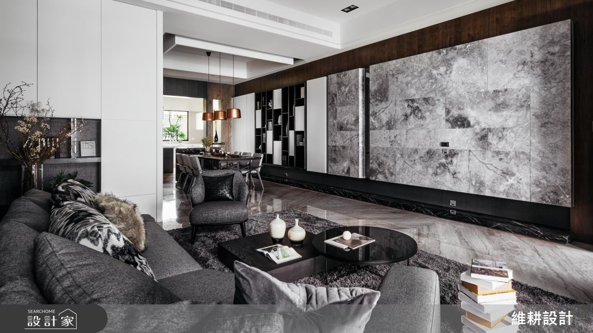 空间规划都因应人而存在。在479平方米的别墅内,设计师给予现代风格定调,运用大器建材铺陈轻奢气场,同时加入植栽、软件等塑造场域温度,让每项机能贴近屋主全家的生活轨迹,打造出奢华、温馨兼具的住宅视野。【运用墙面材质,转换空间场域】客厅,可见到风格独具的软件搭配,藉由灰阶搭配深蓝,构筑优雅和谐的场景,一旁则运用落地窗带来采光及景观,与室内植栽摆饰呼应,造就生动的生活画面,并以大理石立面串联,从客厅一路延伸至餐厅,打造大器的墙面表情。餐厅以中岛为中心,搭配极具质感的吊灯布置,塑造品味十足的用餐氛围;卧房内,除了赋予偌大的空间感,更配置书桌、起居、更衣间等饭店式机能,再加入层次分明的场域布局,使视觉可与户外阳台连贯,划出充满延伸性的寝居轴线。