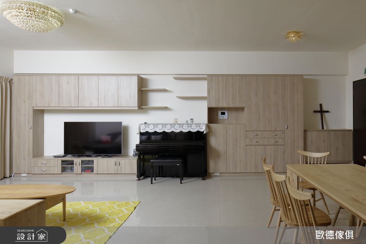 来自演艺圈模范夫妻的屈中恒及Vicky,在欢喜迎接4女儿的诞生后,面临了家庭成员的新增,决定迁徙到更合适的居宅,而考虑到家中孩童的生活安全性,还有家具能拆卸带走的便利特性,决定以系统家具替新家实现美学与机能兼备的优质宅邸。【修饰锐角,提供孩子安全居家】开放式的公领域以安全为设计重点,采用大量的木质家具,创造出清新简约的气息。而从玄关一路延伸至客厅电视墙的收纳柜,一体成形的设计,不仅满足收纳需求,也拥有更宽敞的生活空间,让孩子得以尽情游戏其中。餐厅区则以梣木家具打造,呈现简单素雅的风貌,比如经典的四边斜脚造型餐桌,桌面边线以45度斜角切割,展现立体美感的同时,更可防止行走中不小心碰触受伤,实现安心无虞的居家生活。