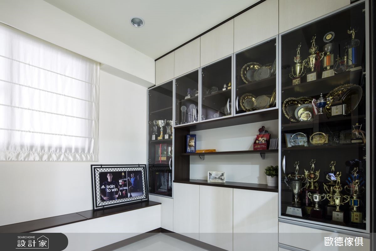 网球好手卢彦勋的家是什么样子呢?经由设计师的规划,住家以环保、健康、无毒为要点,全室使用健康绿建材的系统家具,搭配着专属美感与色系选择,打造出符合环保潮流的绿色居宅。【量身定制,满足专属收纳需求】设计师将收纳、展示视为规划重点,以系统柜打造电视柜、书柜等,用来展示历年来的奖杯、奖牌,呈现生命中的重要纪念;而客厅中造型简约的沙发,不仅舒适好坐,坐垫还可滑动变为斜躺式,再搭配电视墙的水蓝跳色,营造活泼的空间氛围。由于运动员的身份,有球具收纳的特殊需求,因此透过现场丈量,在书房量身定制窗边柜,用作球拍收纳,让空间显得干净清爽;而卧室部分,则依照居住者不同,以板材与墙面颜色区分,营造舒适放松的睡眠场域。