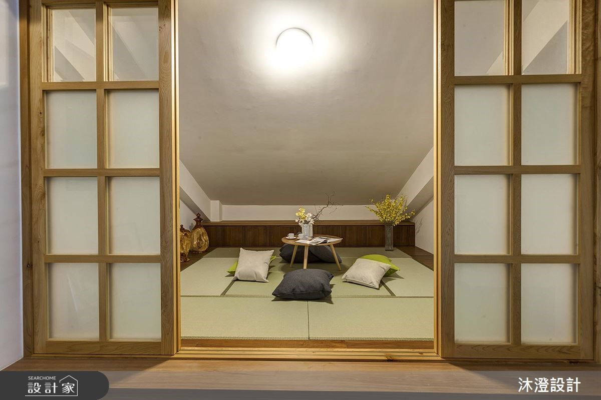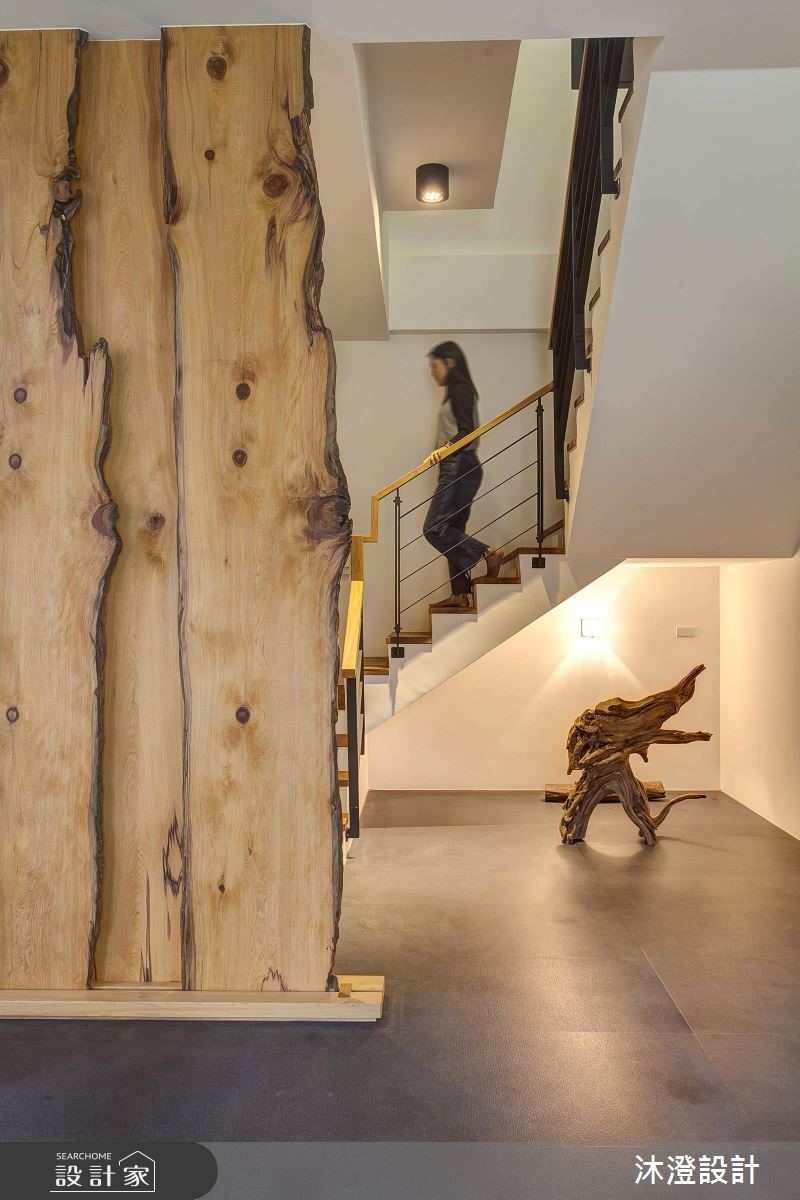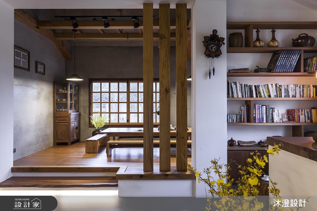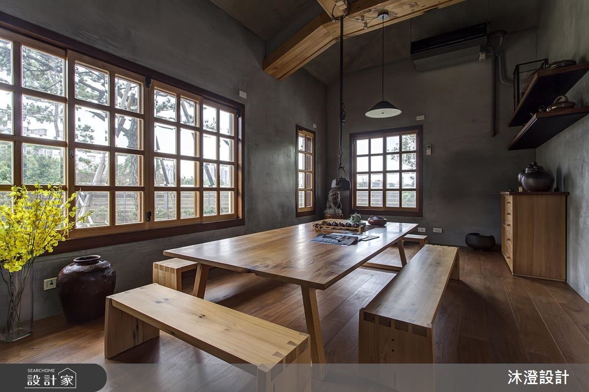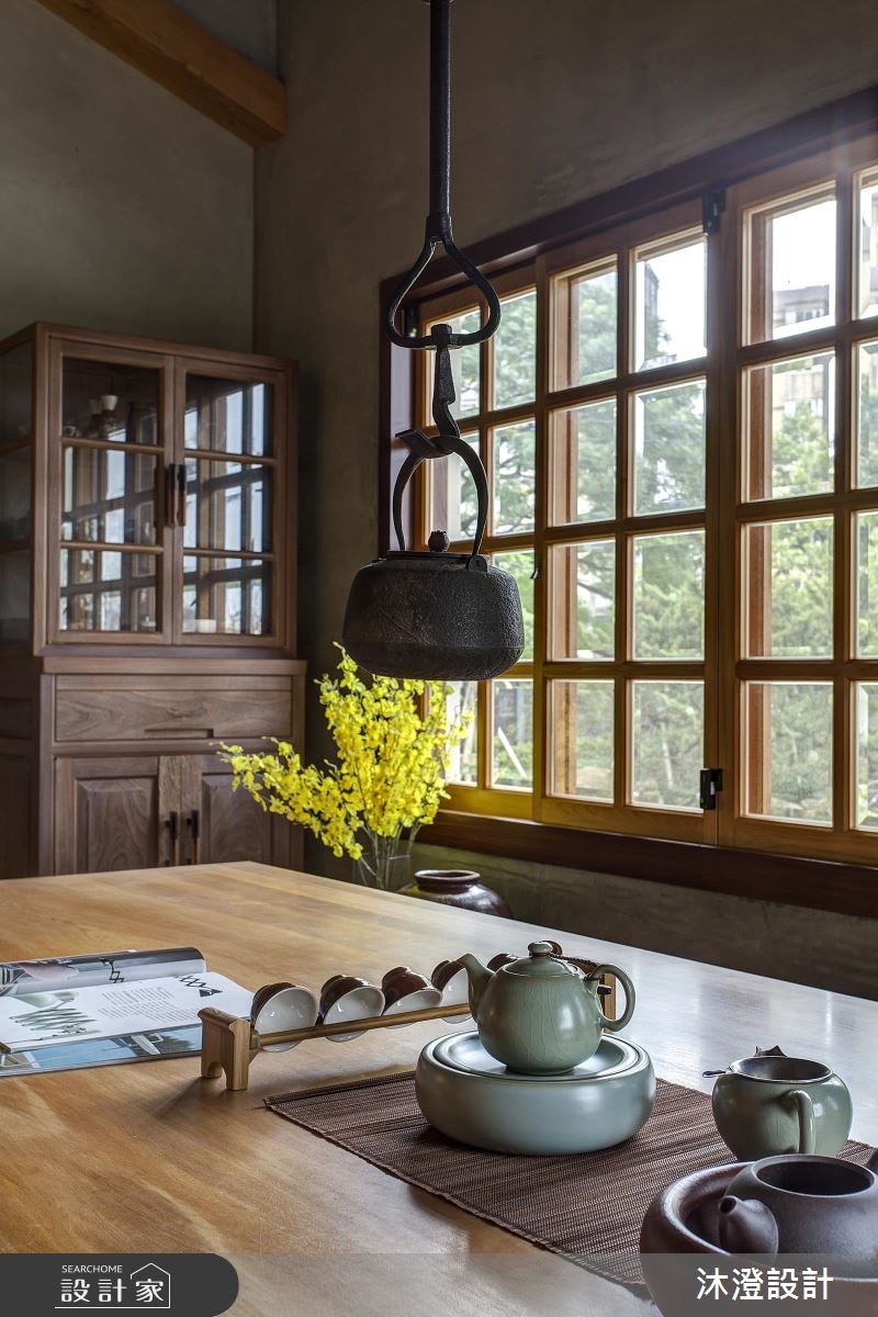 买下一块地,盖自己的房子,是许多人一辈子的梦想。努力工作一辈子的屋主夫妻两人,也决定自地自建梦想中的完美新家,他们并将3层的独栋楼交由设计师进行规划,运用天然桧木、清水模质感的砖体,打造舒适的空间,完成梦想中的日式风居宅。 【木头与水泥,演绎质朴氛围】726平方米的日式禅风大宅,一楼为全家人团聚的公共空间,具有开阔明亮的空间感,采用大量的天然桧木材质,搭配铁件增加承重耐用度,成为空间中的温润一景。茶室藉由架高的地板,创造空间独立性,墙面保留了水泥的温朴质感,搭配日式木格窗,营造出沉静、自然的和风空间。厨房则以简约的黑、白色系为主,宽阔的中岛设计,让下厨动线变得流畅自在。二楼为卧室区,运用进口的系统橱柜,满足收纳需求,并搭配不同的色彩,为每位居住者描绘独特的生活个性。三楼则善用斜屋顶的畸零空间,打造出和室榻榻米区,无论是平常家人休闲,或是招待客人,展现自在的生活质感。