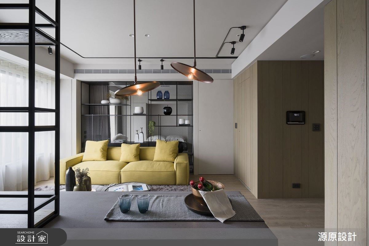 仅仅46平方米的小户型,设计师运用线条构成虚拟边界,在保有空间感的同时,也创造视觉趣味与实用机能,且透过木质的暖度、铁件的率性、玻璃的轻盈,以异材质交织出美好的空间质感,快跟着小编一起来看看吧!【沙发墙虚拟框景,景深多面向】客厅区,设计师使沙发墙结合展示墙功能,让线条不仅成为轮廓构成,亦争取到不受阻碍的视线动向,塑造空间之间的交流延伸。并于全室铺陈木质地板,强调温煦的氛围,搭配着利落率性的铁件架构,调和成冷暖相宜的空间温度。亮眼的黄色沙发成功聚焦视觉,成为空间中讨喜的摆设。格局上,则让餐厅吧台、客厅、寝居等各自坐拥区域,维持着彼此之间的开放互动。并于卧室旁安置隐藏门片,可通往更衣间,使小户型也能尽显实用性与设计的穿透力。