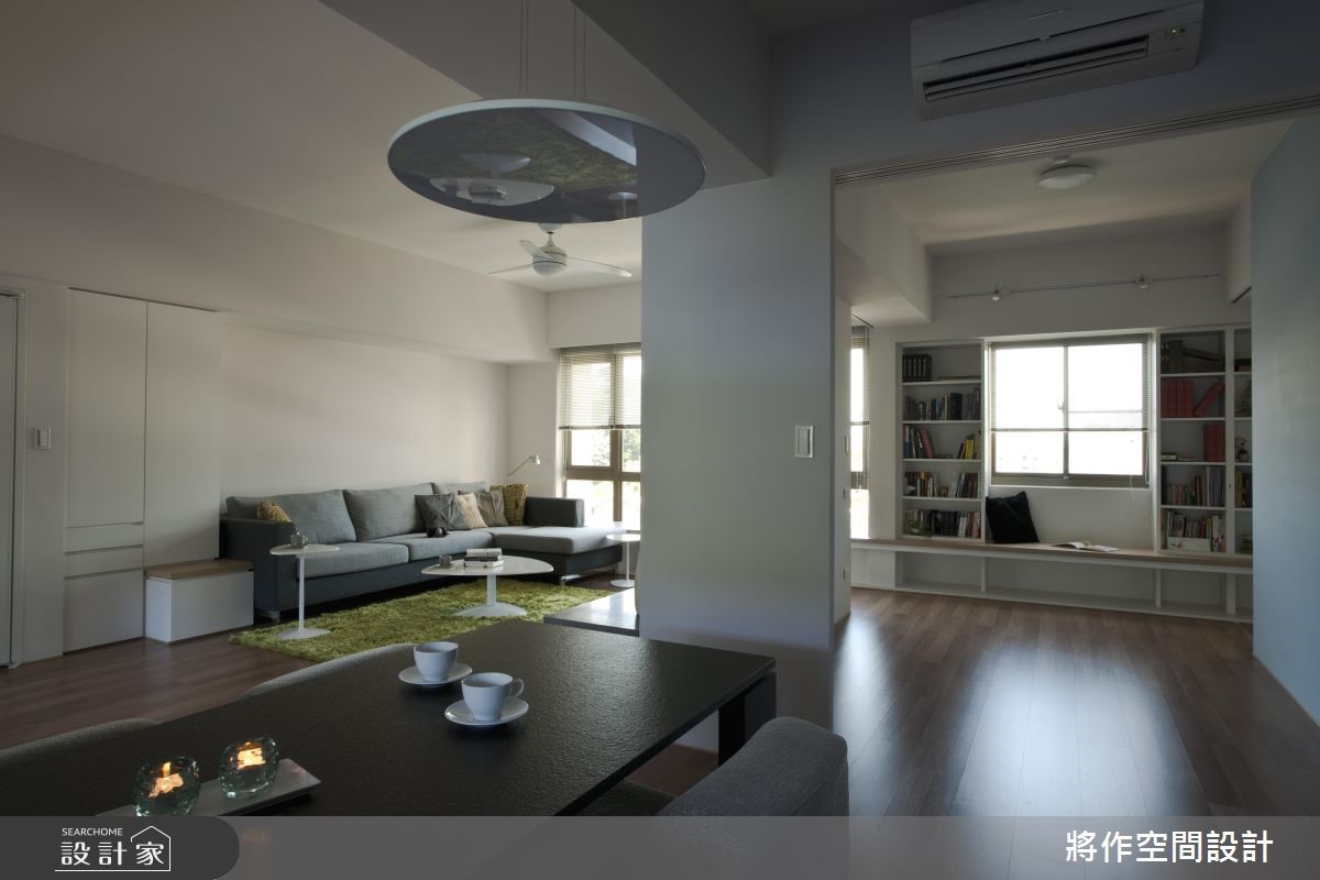 109平方米二手屋,设计师运用简约的北欧风语汇,并改善居家动线,重塑自然简约的生活场景,同时改建封闭性厨房,将后阳台的户外风景与采光援引入室,打造出充满疗愈感的清新视野,快跟着小编一起来看看吧!【长廊串起动线,引入采光与互动】居宅整体摒弃过多色彩,回归简单的色彩基调,并运用靠窗的长廊串起动线,巧妙衔接公共空间及寝卧地带,不只促进采光与场域互动,更集结窗景、书墙、飘窗、收纳等各项主题,形成机能性十足的过道。【阳台大改造,化身疗愈休闲基地】餐厨、客厅、起居间呈现开放式规划,保有阳光与空气的通畅流动;厨房外的阳台更给予重新配置,透过木地板的铺设,搭配室内植栽与辽阔绿景,以及书桌椅的陈列,让此区成为屋主的休憩阅读天地!